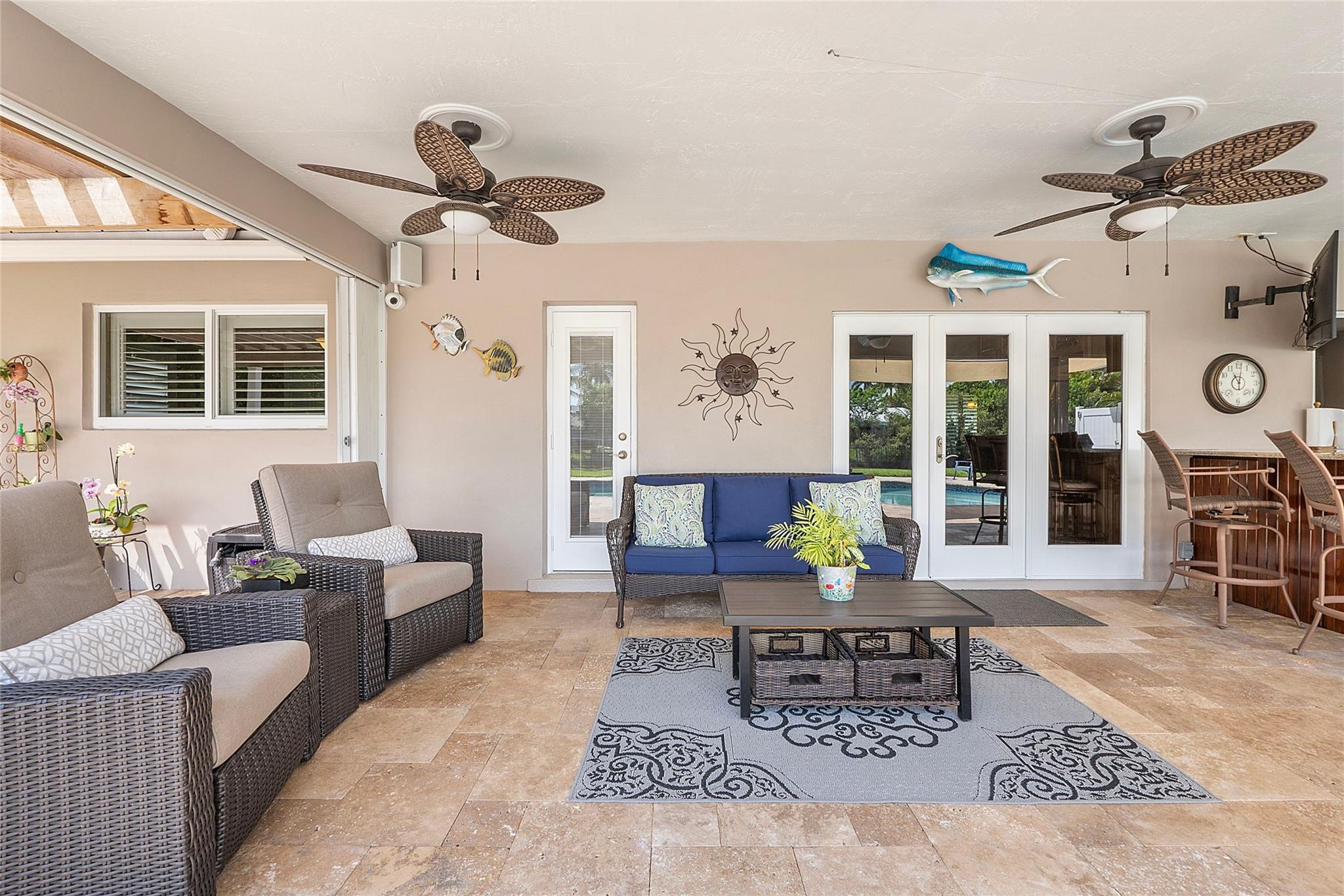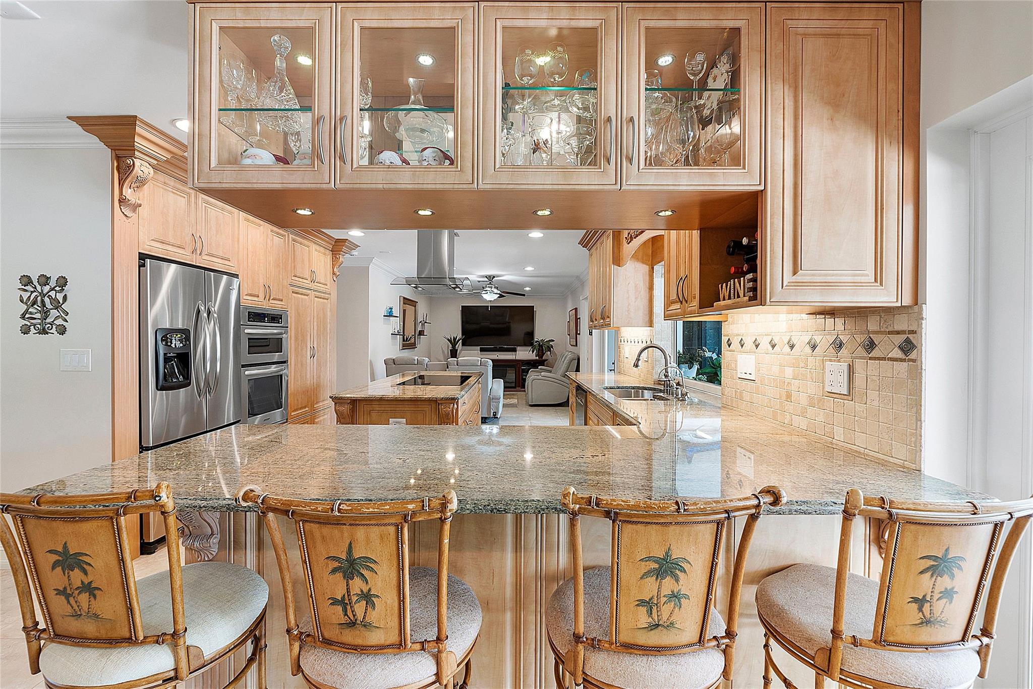 Sought-after Royal Palm estate waterfront property with a private duel level dock. This entertainer’s dream home features an outdoor bar, firepit, and a saltwater pool surrounded by elegant travertine decking. The professionally landscaped grounds include exterior dusk-to-dawn lighting. Inside, find plantation shutters, crown molding, and 19' porcelain tile in the main living areas. The open kitchen is perfect for gatherings, and the split floor plan ensures privacy. Two cabana baths provide easy access to the pool area. This home combines luxury, style, and convenience—schedule your tour today and experience waterfront living at its finest!