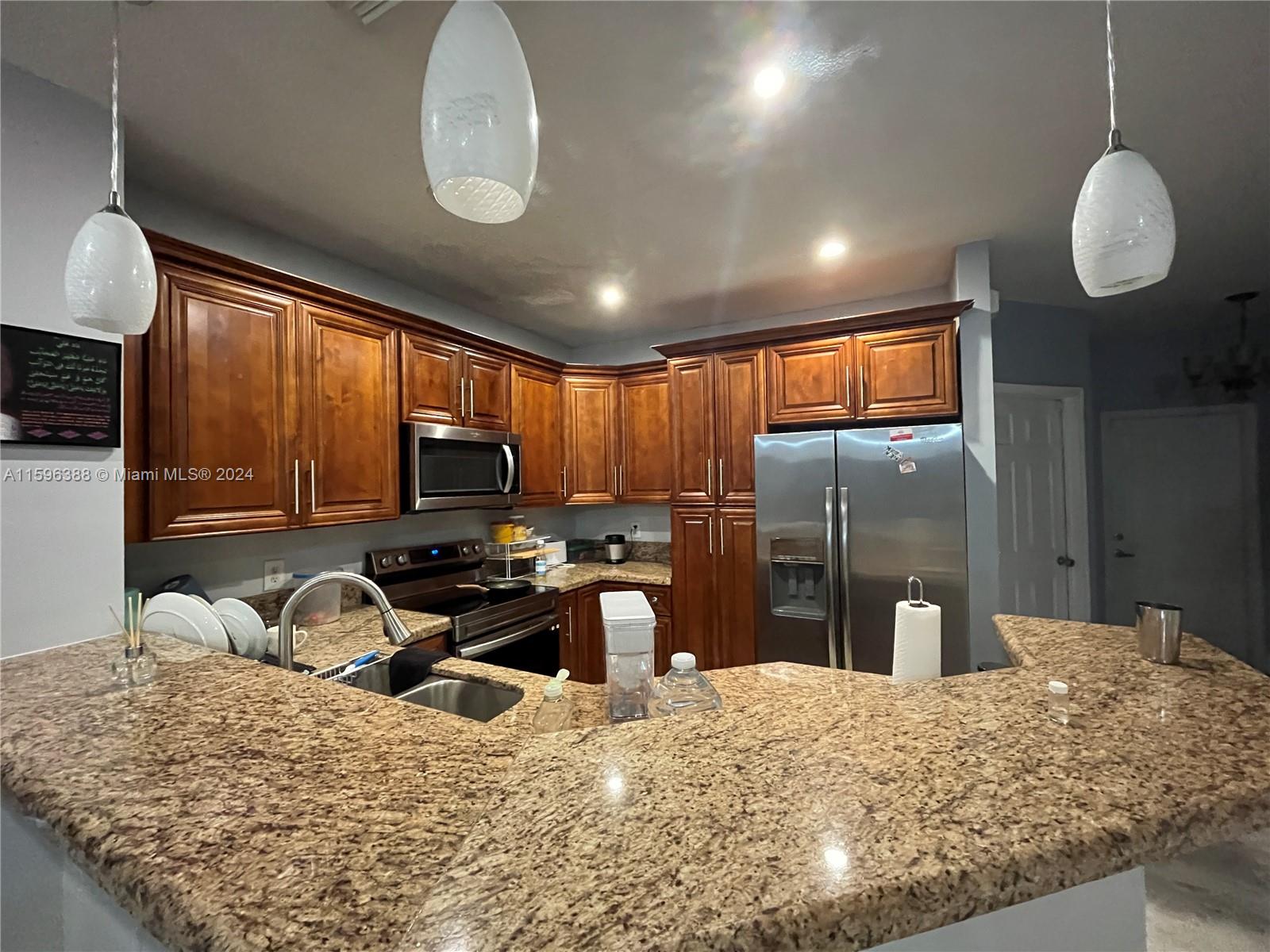 Superb Townhome corner unit in Pelican Pointe in the center of Pembroke Pines. Securely gated community. Don't miss this beautiful Townhouse with 3 bedrooms, 2.5 baths. The living room opens to an outside screened porch for relaxation. Wide open kitchen. Washer/dryer in the garage. This property feature 2-car spaces, 1 in the driveway and an 1-car garage, plus multiple guest parking spots available. Enjoy the pool, Jacuzzi, clubhouse, playground, tennis court, & fitness room. HOA Includes basic Cable & Internet. Close and easy access to major highways and roadways, schools, shopping, grocery, restaurants, park. Management on site. Well-maintained community. Easy to show. See attachments in MLS