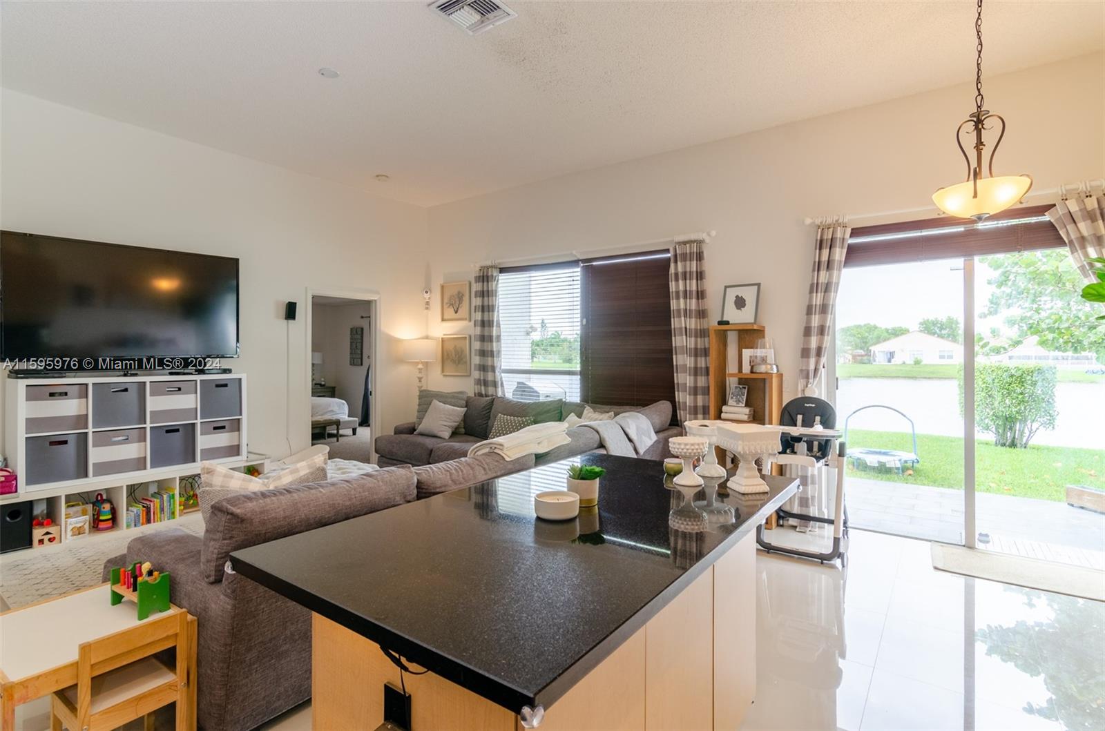 POPULAR CARMEL MODEL IN SOUGHT AFTER PEMBROKE FALLS * SPECTACULAR LAKE VIEWS ** OPEN AND SPACIOUS SINGLE STORY FLOOR PLAN FEATURING 3 BEDROOMS, 2-1/2 BATHROOMS, & 2-CAR GARAGE * COVERED PORCH OVERLOOKING LARGE BACKYARD, PERFECT FOR OUTDOOR ENTERTAINING * PORCELAIN FLOORING THROUGHOUT LIVING SPACES * UPGRADED KITCHEN WITH GRANITE COUNTER TOPS AND WOOD CABINETS ** EVERYTHING YOU NEED GATED COMMUNITY WITH STATE OF THE ART RECREATION CENTER ** RESORT STYLE AMENITIES: POOL, GYM, TENNIS COURTS, CLUBHOUSE & MORE * COMMUNITY OFFERS NATURAL GAS TO ITS RESIDENTS *HOA INCLUDES CABLE, FIBER OPTIC INTERNET, 24HR SECURITY & MORE!