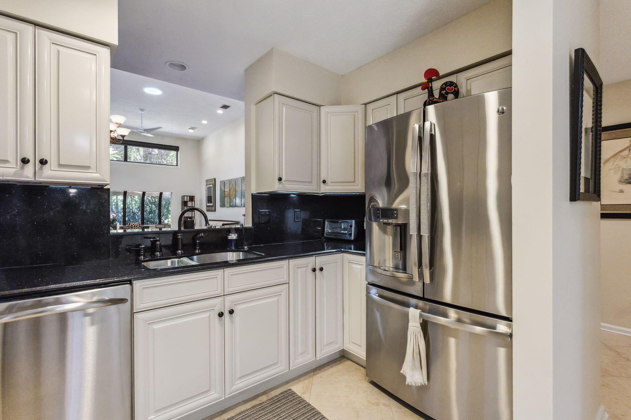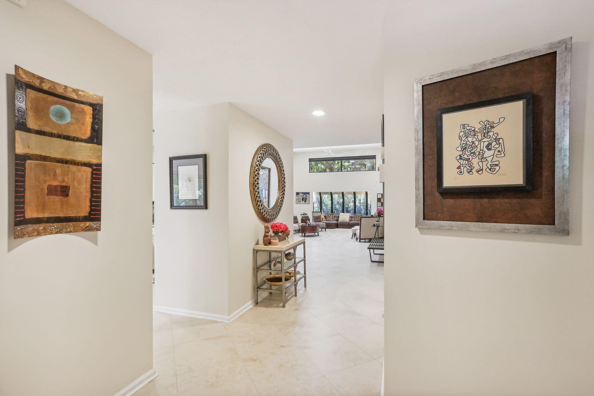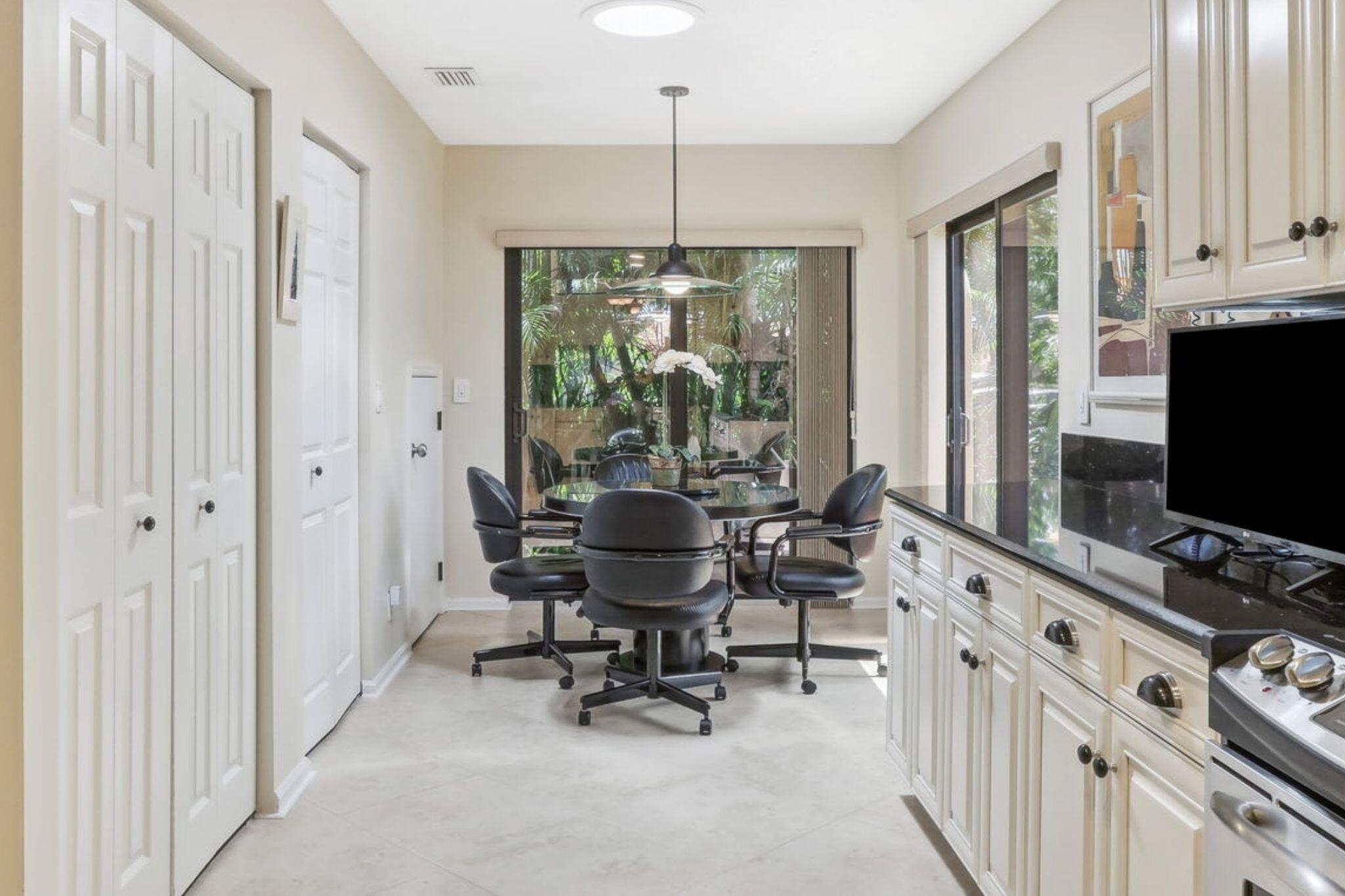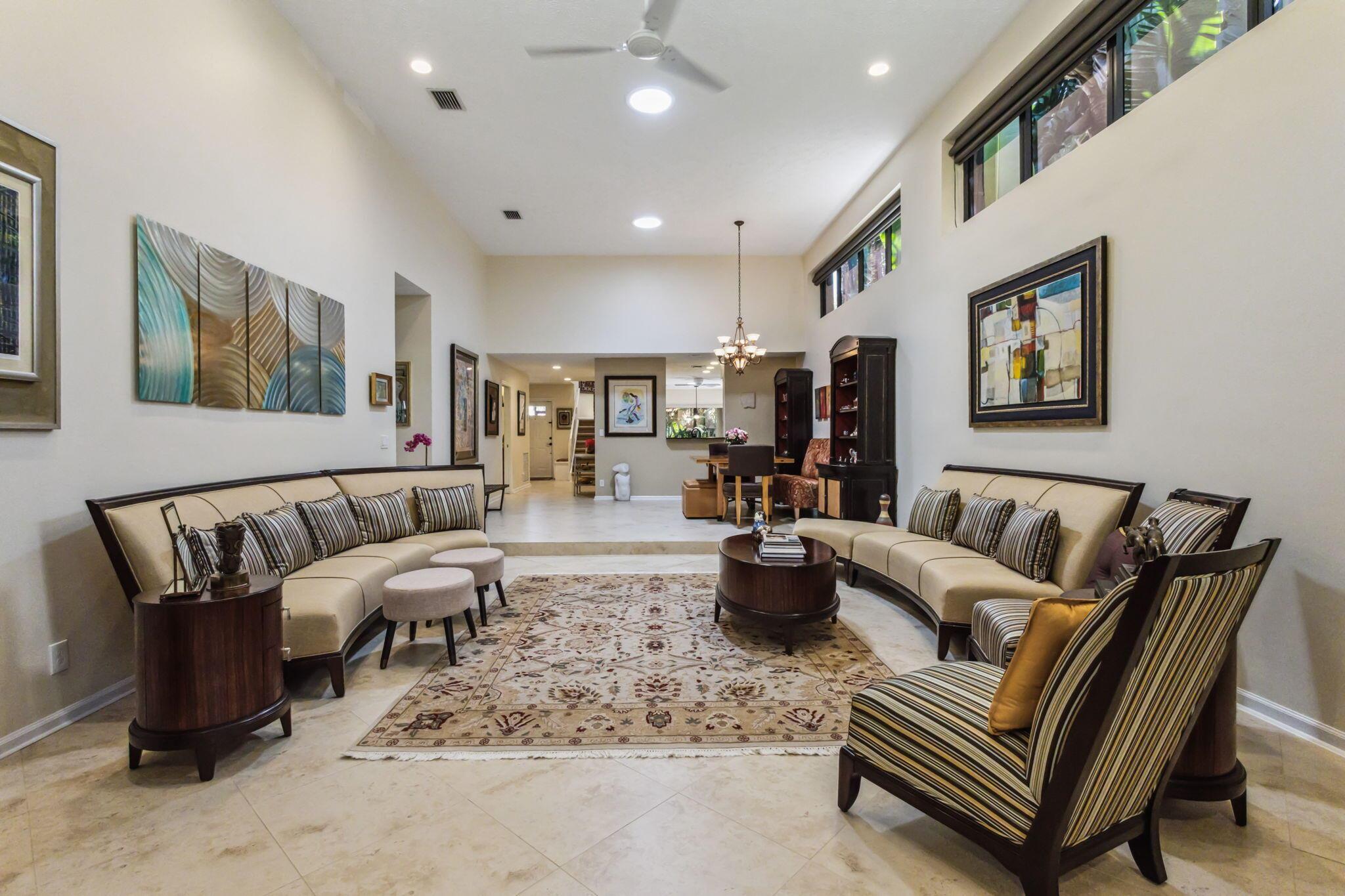 This is the One you have been waiting for... Nestled in the heart of the prestigious Boca Pointe Country Club, this meticulously maintained corner townhome stands as a testament of eco-conscious living and elegant details. This home, a rare Zanzibar Extended model, is designed to offer an exceptional living experience for discerning families. The residence unveils a masterclass in design with its open and airy layout, 13+ foot high ceilings, and seamless integration of indoor and outdoor spaces.The living area, expansive and inviting, transitions effortlessly into a renovated kitchen with stainless steel appliances, ample pantry and storage space, and a naturally lit eat-in kitchen.