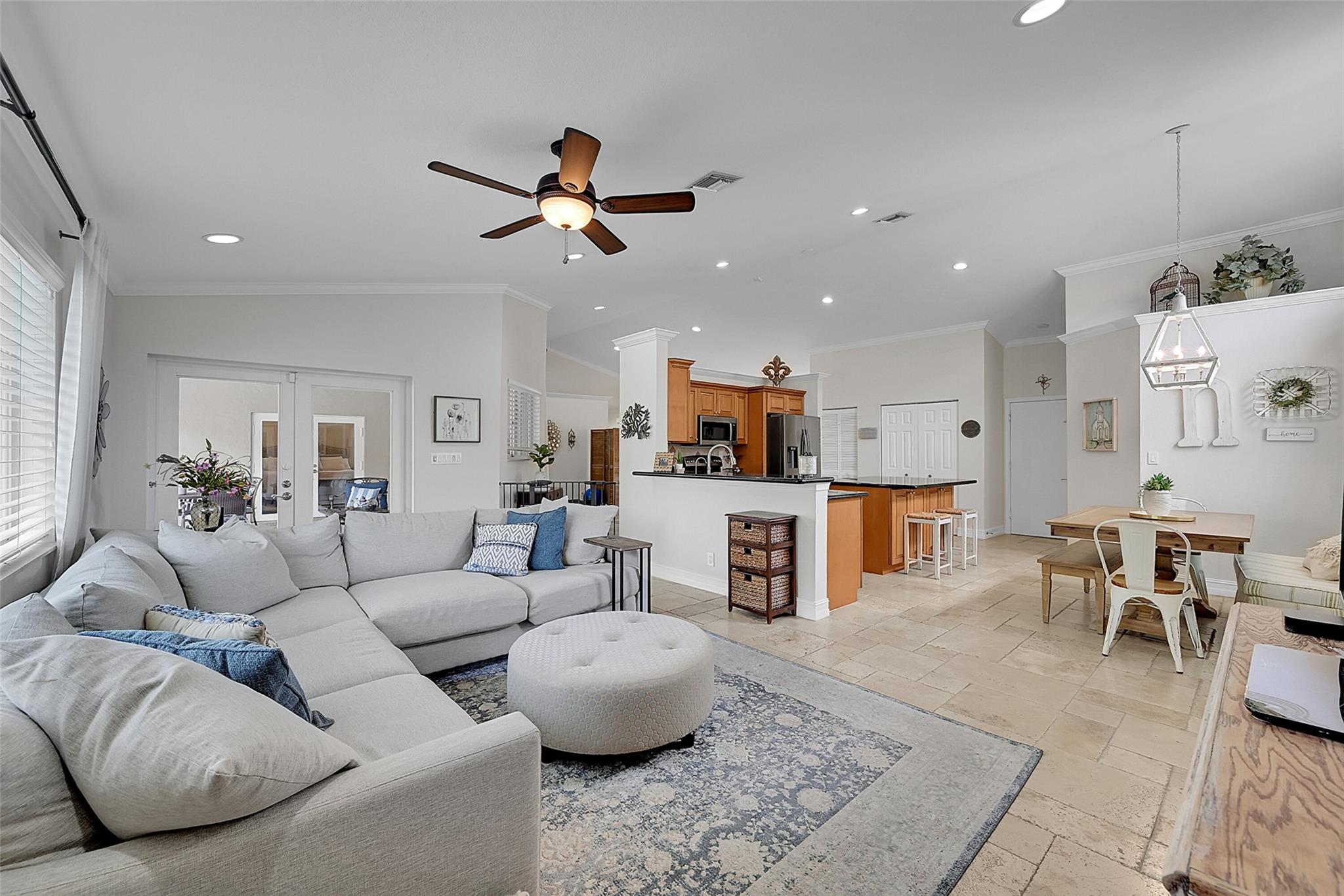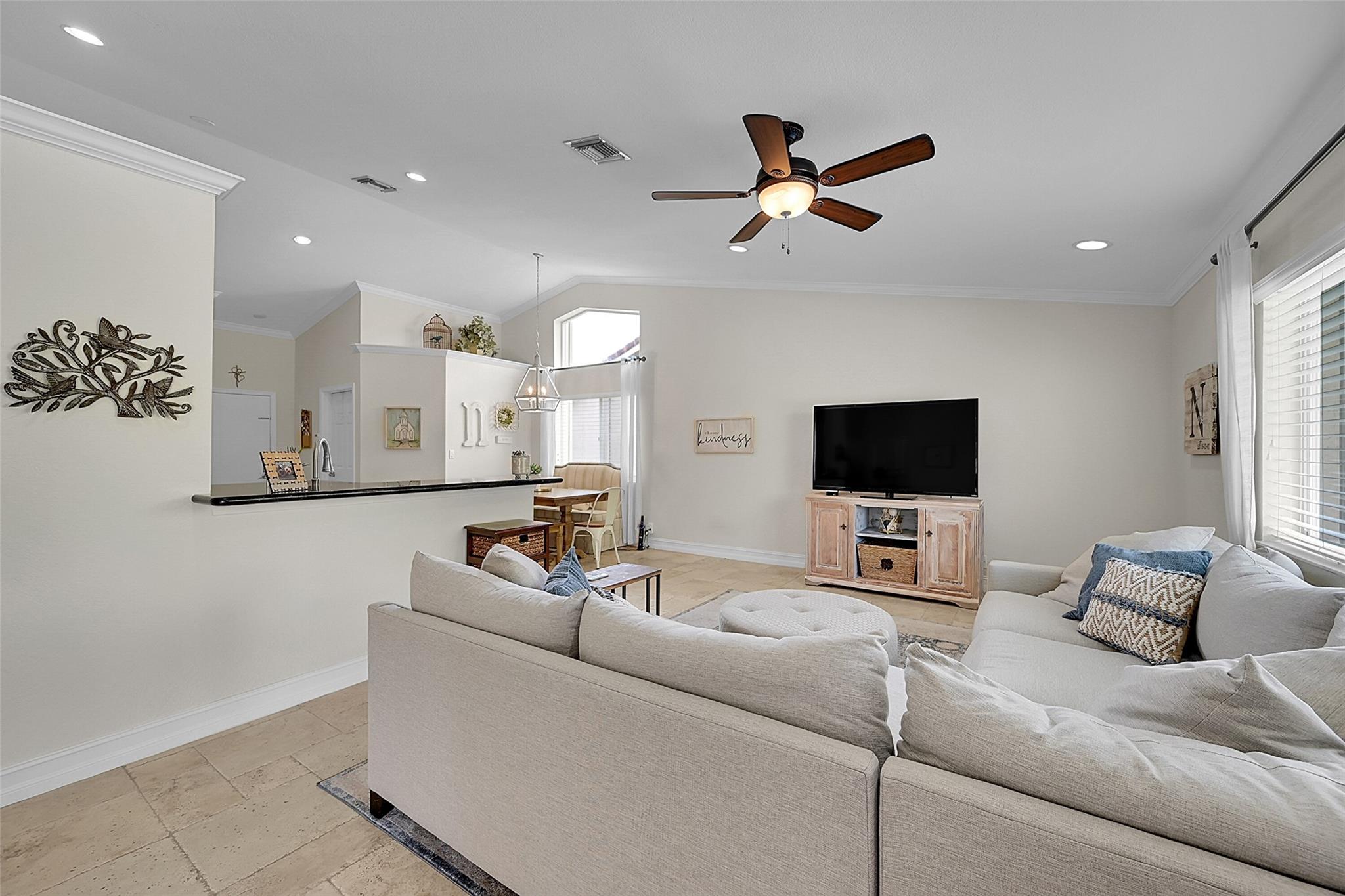 Beautiful 4 Bedroom 2 Bath home shows pride of ownership...Travertine Flooring Throughout the Living Area and Wood Floors in the Bedrooms, No HOA...Vaulted Ceilings in the Living Space as well as the Master Bedroom. Custom Cabinetry, Soaking Tubs in the Bathrooms, Newer A/C, Water Heater, and Appliances, Upgraded Crown Molding, and Baseboards Throughout the Home. Paver Driveway and Covered Patio. Roof 2008. Abundance of High Hat Lighting in Every Room. Close to Shopping and Major Highways. Located in Desirable School District.