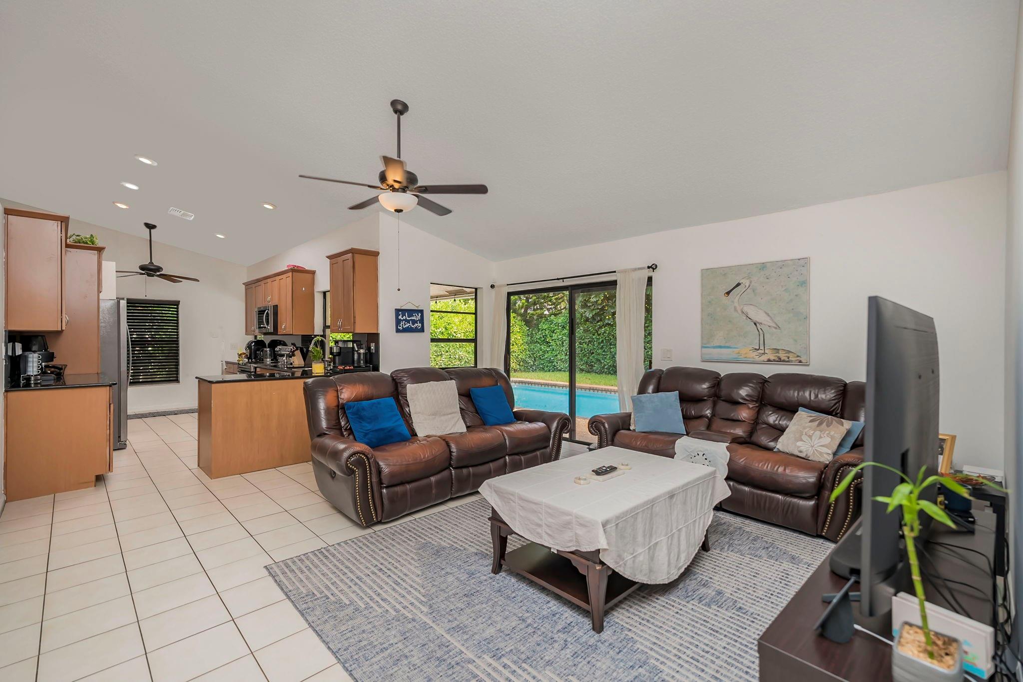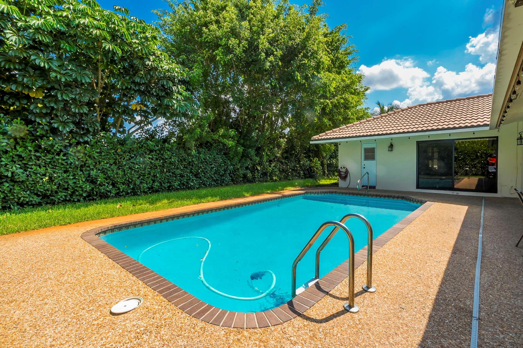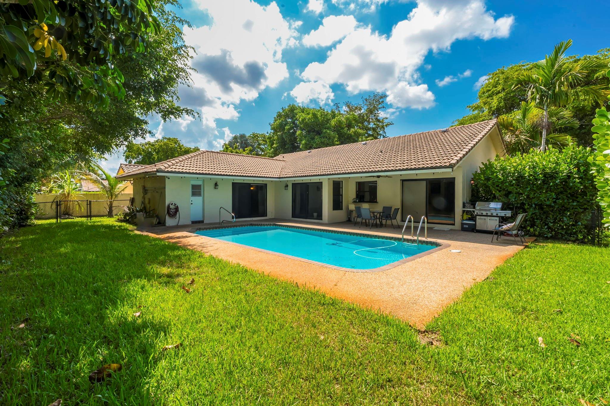 Single-story 4-bedroom home with a pool, situated on a spacious fenced interior lot in the highly desirable Cypress Glen neighborhood. NO HOA. Soaring high ceilings contribute to the airy and welcoming atmosphere of the open floor plan. Enjoy newer wood-like flooring throughout the living room, dining room, and bedrooms. The kitchen is a chef's dream, boasting expansive granite counters, wood cabinets, SS appliances, and ample storage space and separate laundry room. Outside, the private backyard oasis is ideal for entertaining, featuring an open pool, patio, and privacy hedge! Enjoy the convenience for its proximity to excellent shopping, parks & easy access to highways. ROOF 2005 in great condition. ACCORDION SHUTTERS.