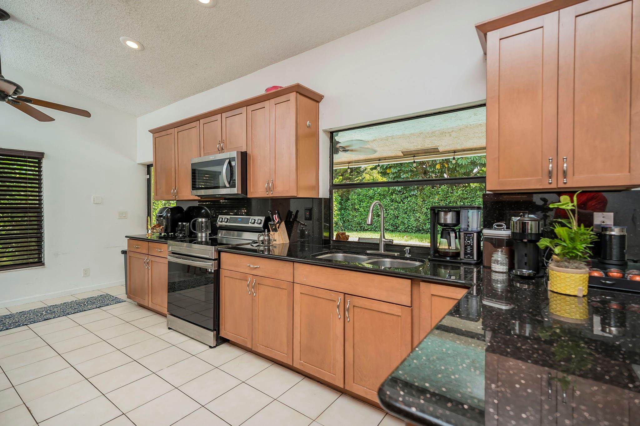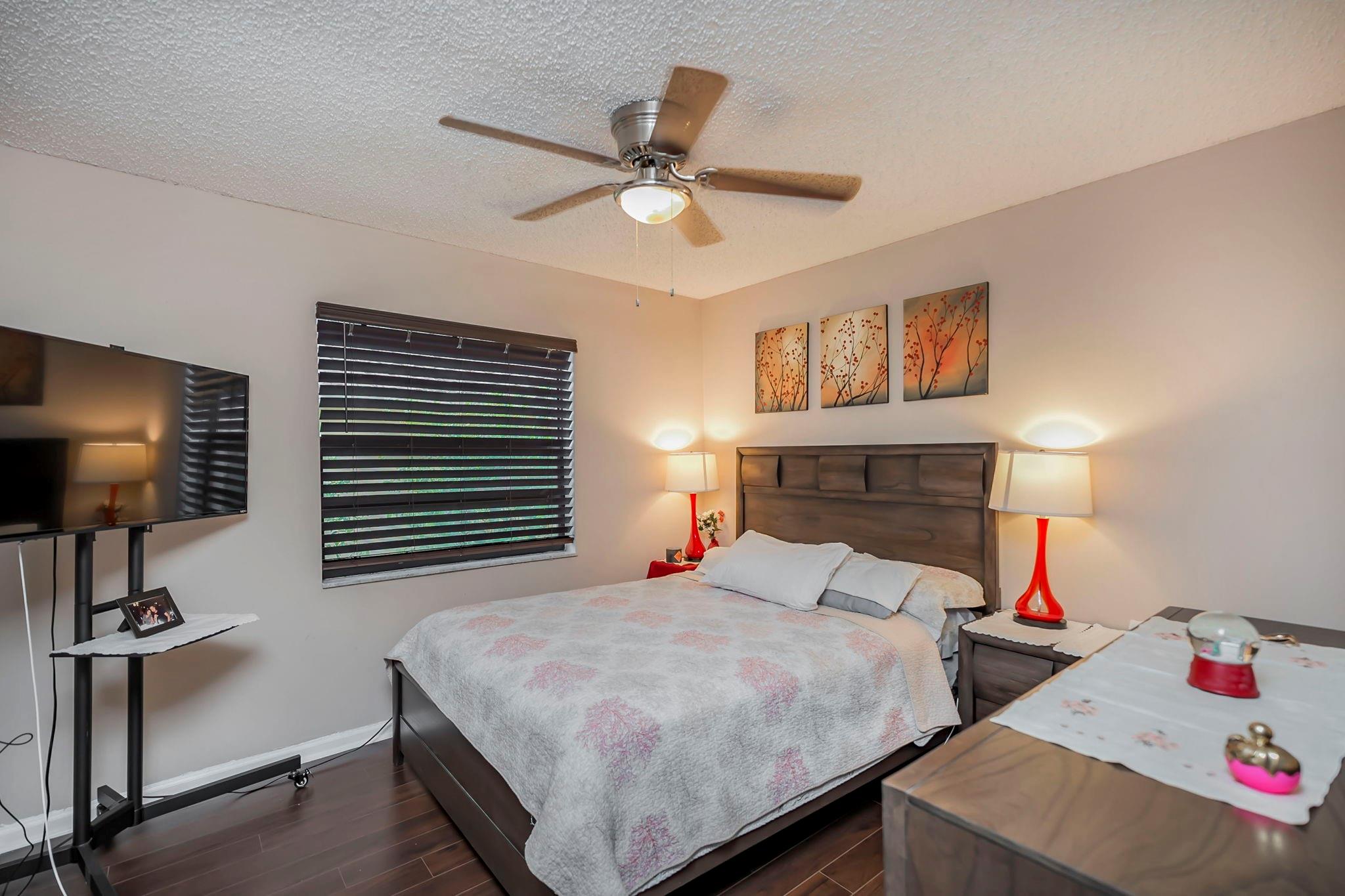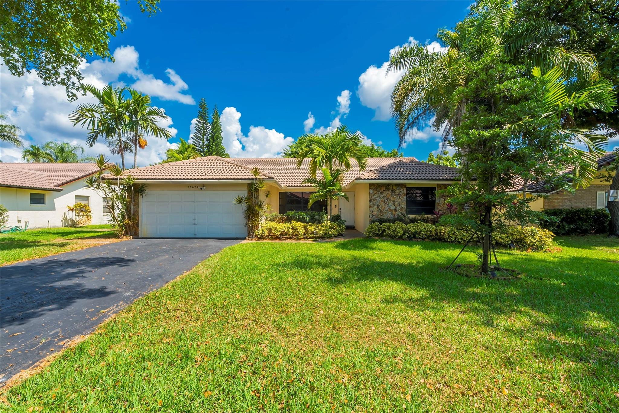 Single-story 4-bedroom home with a pool, situated on a spacious fenced interior lot in the highly desirable Cypress Glen neighborhood. NO HOA. Soaring high ceilings contribute to the airy and welcoming atmosphere of the open floor plan. Enjoy newer wood-like flooring throughout the living room, dining room, and bedrooms. The kitchen is a chef's dream, boasting expansive granite counters, wood cabinets, SS appliances, and ample storage space and separate laundry room. Outside, the private backyard oasis is ideal for entertaining, featuring an open pool, patio, and privacy hedge! Enjoy the convenience for its proximity to excellent shopping, parks & easy access to highways. ROOF 2005 in great condition. ACCORDION SHUTTERS.