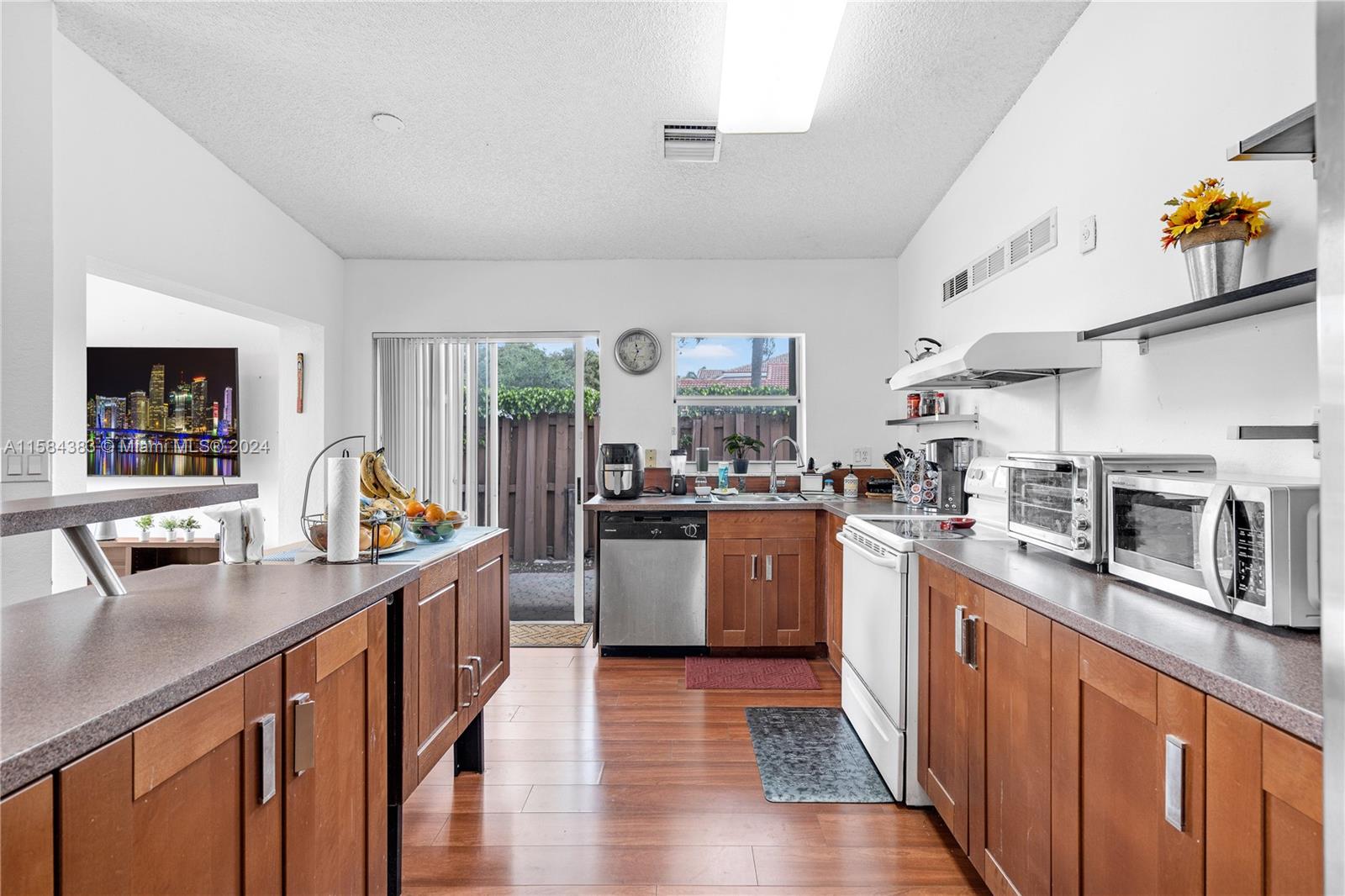 Welcome home! Experience the convenience of a paradise within the city in this charming home! As soon as you walk into the family and dining room that blends in with the custom made open space concept kitchen, you will be welcomed by the bright daylight from its generous French window and patio doors! All the basics are covered in this 3 bedroom 2 full bathroom, 1 car garage cozy gem. Put your personal touches and make memories for a lifetime in the privacy of your fenced all around paved patio. Entertaining and lifestyle included at Doral Isles community where you will enjoy a plethora of indoor and outdoor amenities, from walking trails, full basketball and tennis courts, baseball and soccer field, beach volleyball, private beach, olympic size pool to state of the art gym, spa and more.