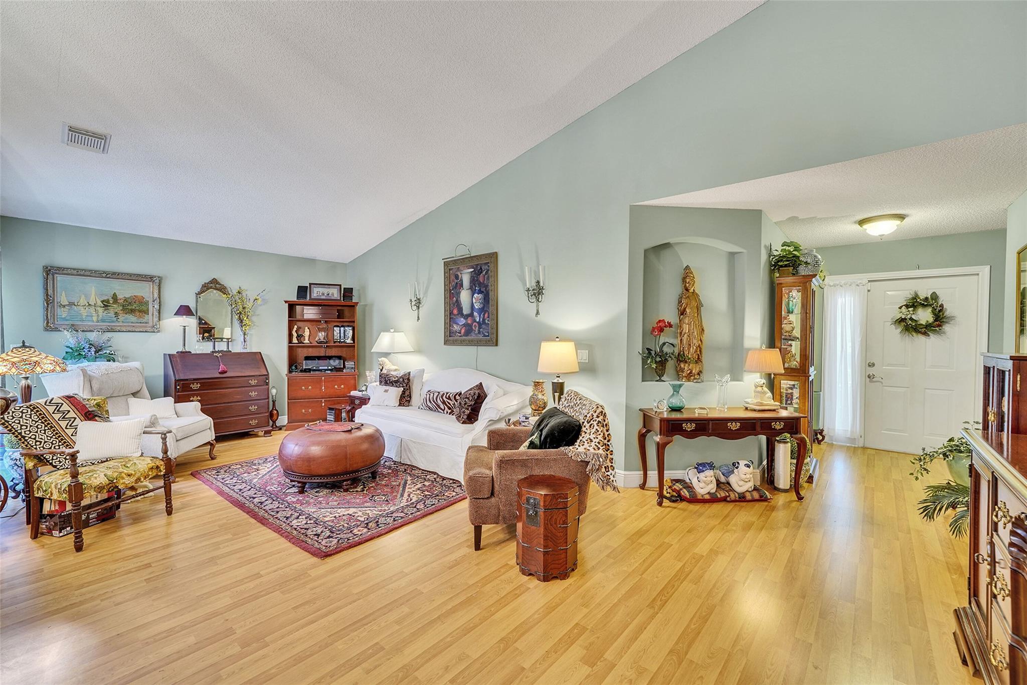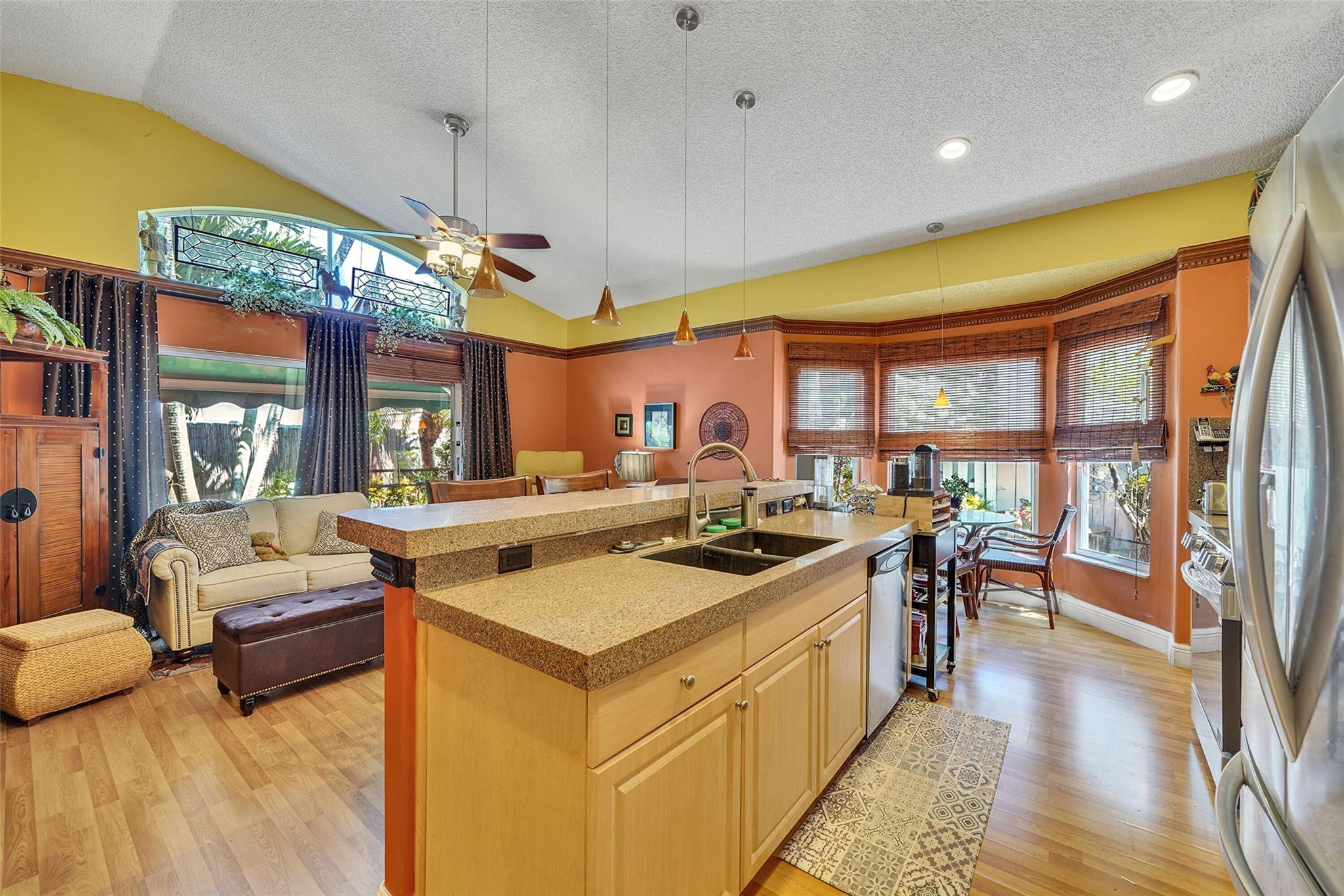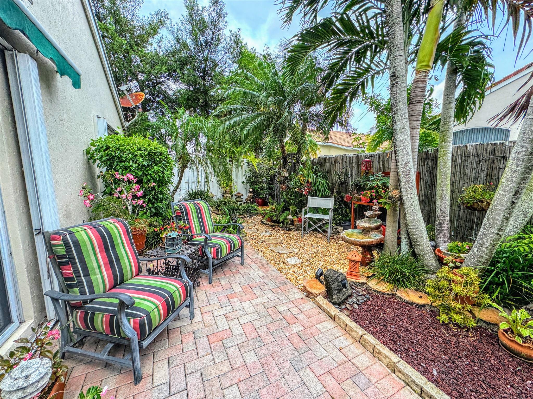 Beautiful 3 Bed, 2 Bath home conveniently located in coveted Oakridge GATED COMMUNITY! Rarely available bright home with tall vaulted ceilings, wood flooring & carpet floors. Open concept formal living room and dining area in the front. Tastefully updated open kitchen and family room with charming breakfast nook & counter bar for casual dining/entertaining. Oversized sliding doors lead off the family room to lush landscaping surrounding the home w/beautiful gardens & low-voltage lighting, retractable patio canopy oasis. Gardens provide multiple seating areas and a grilling spot. Spacious master bedroom retreat with en-suite bathroom & large picture windows overlooking the serene gardens as well. Upgrades include new roof 2023, A/C Feb 2024, water heater & washer/dryer 2010. BY APPT. ONLY!!