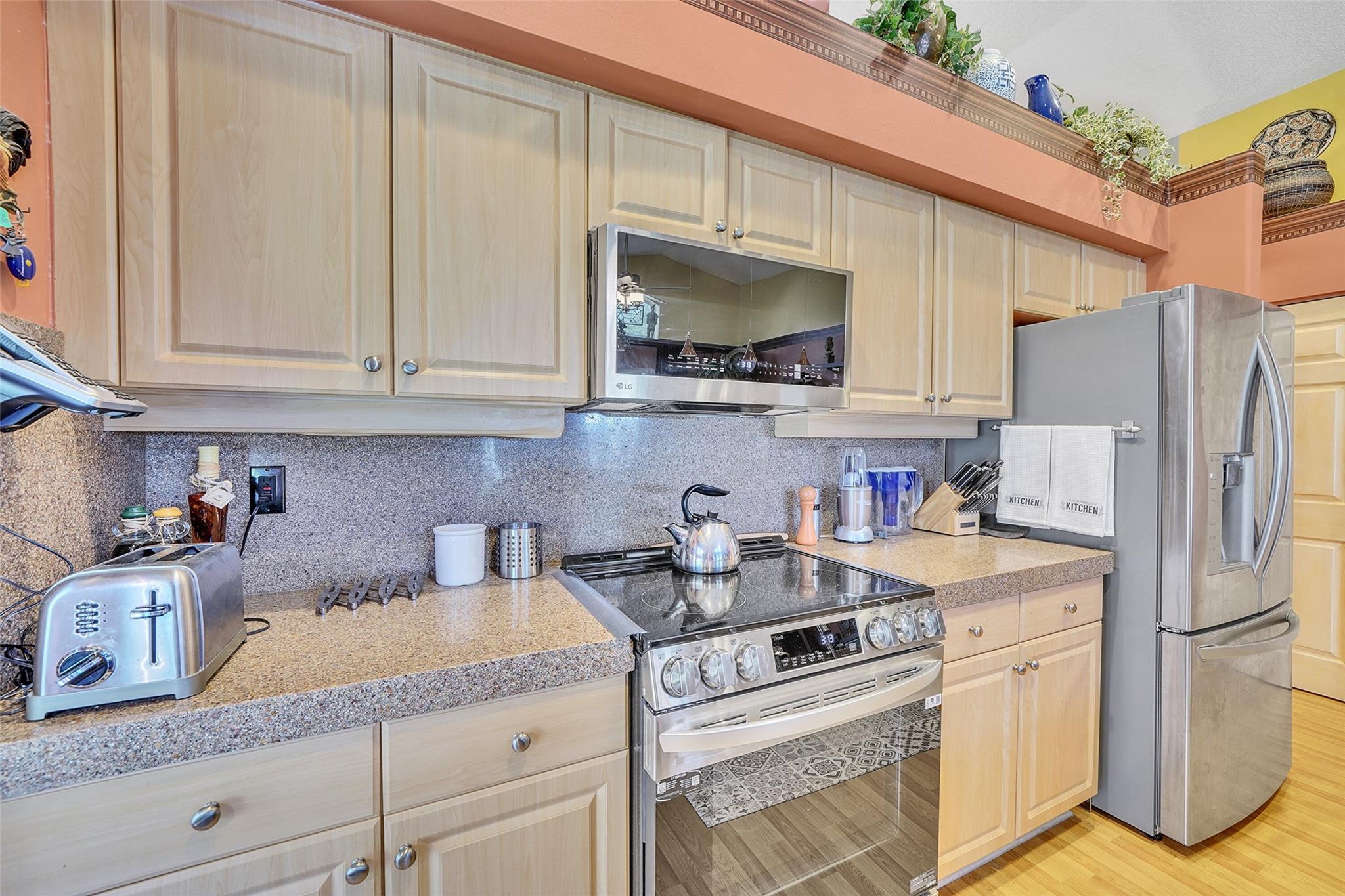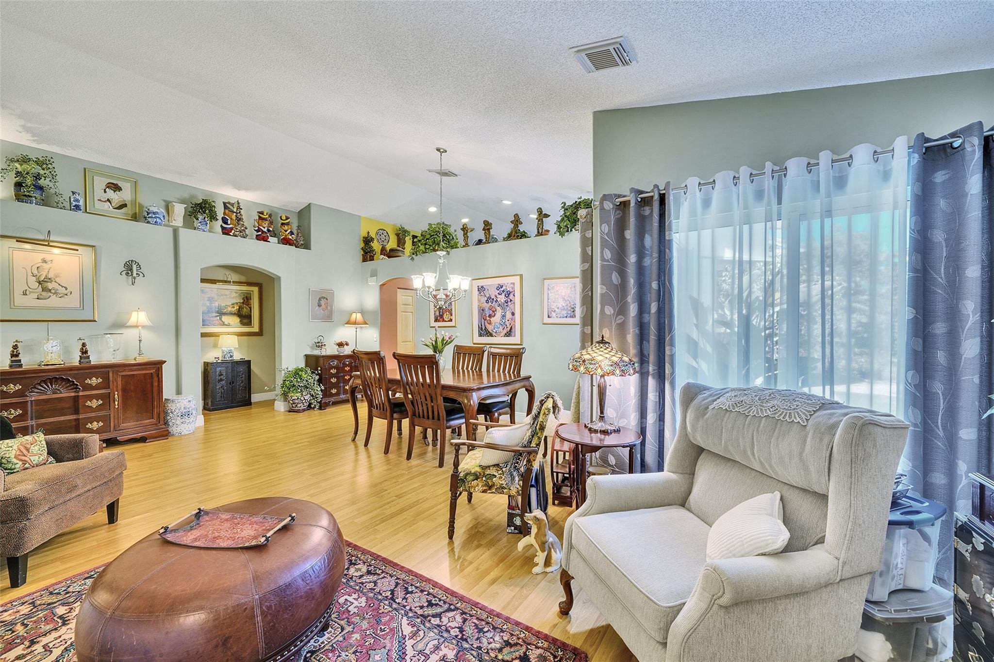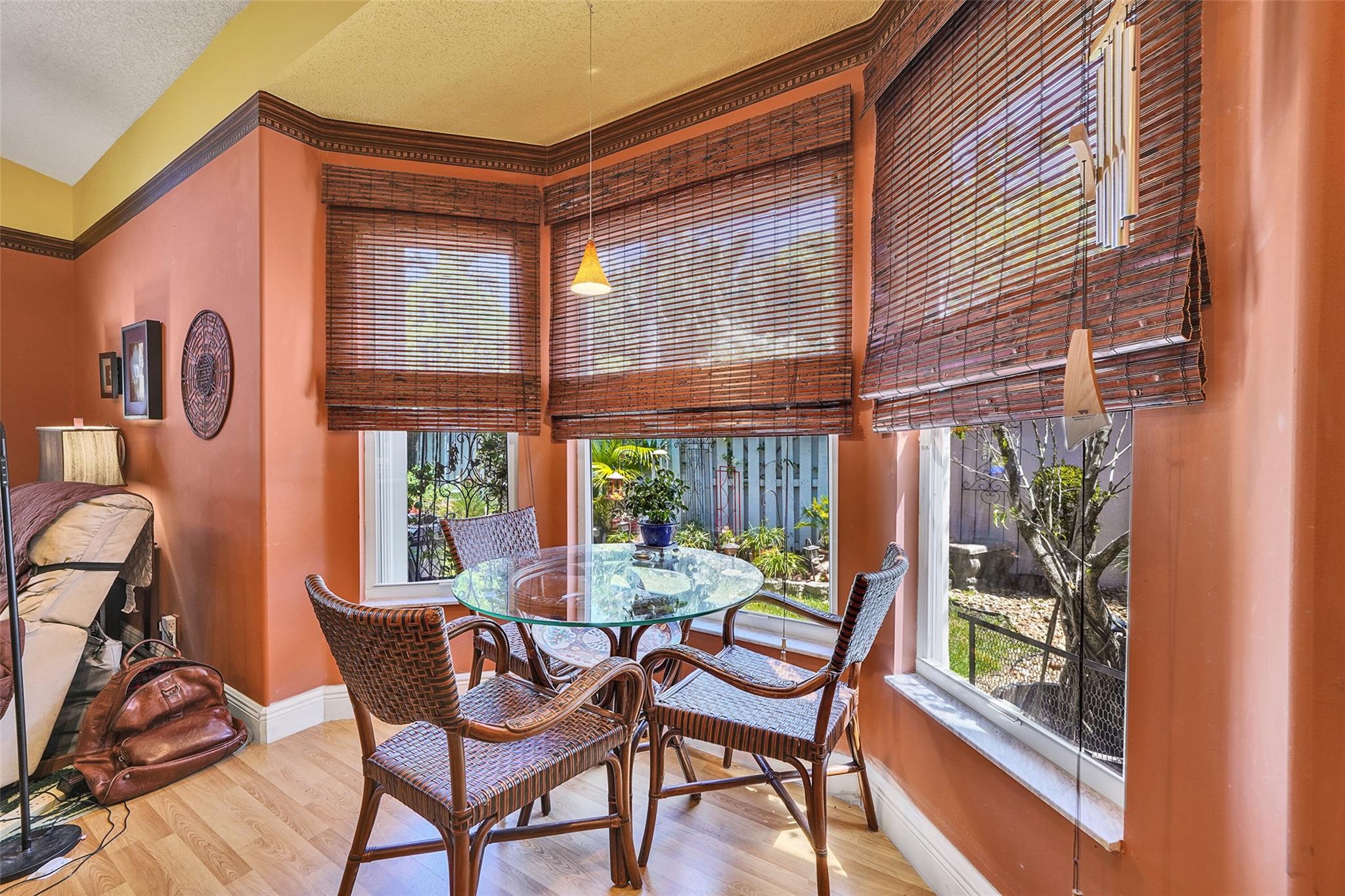Beautiful 3 Bed, 2 Bath home conveniently located in coveted Oakridge GATED COMMUNITY! Rarely available bright home with tall vaulted ceilings, wood flooring & carpet floors. Open concept formal living room and dining area in the front. Tastefully updated open kitchen and family room with charming breakfast nook & counter bar for casual dining/entertaining. Oversized sliding doors lead off the family room to lush landscaping surrounding the home w/beautiful gardens & low-voltage lighting, retractable patio canopy oasis. Gardens provide multiple seating areas and a grilling spot. Spacious master bedroom retreat with en-suite bathroom & large picture windows overlooking the serene gardens as well. Upgrades include new roof 2023, A/C Feb 2024, water heater & washer/dryer 2010. BY APPT. ONLY!!