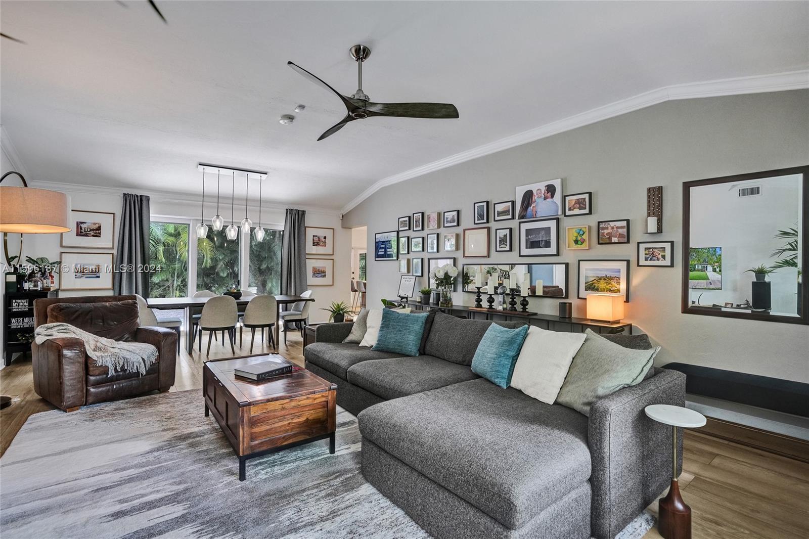 Indulge in the timeless allure of this sophisticated mid-century home. The covered front porch leads to an interior bathed in natural light, vaulted ceilings, impact windows and doors, and state-of-the-art appliances. Functional updates, such as in-ceiling speakers, Elfa closet organizers, and a fully functional garage, enhance the living experience. Step outside to find your sanctuary amidst the verdant landscaping and the captivating presence of a 100+ year old live oak. A full set of architectural drawings will be transferred to the new owner, for the addition of an Owner's Suite, a reading nook in the living room, and a screened-in porch. With approvals from the CG Board of Architects and Miami-Dade Septic Relocation secured, the stage is set for the realization of your dream home.