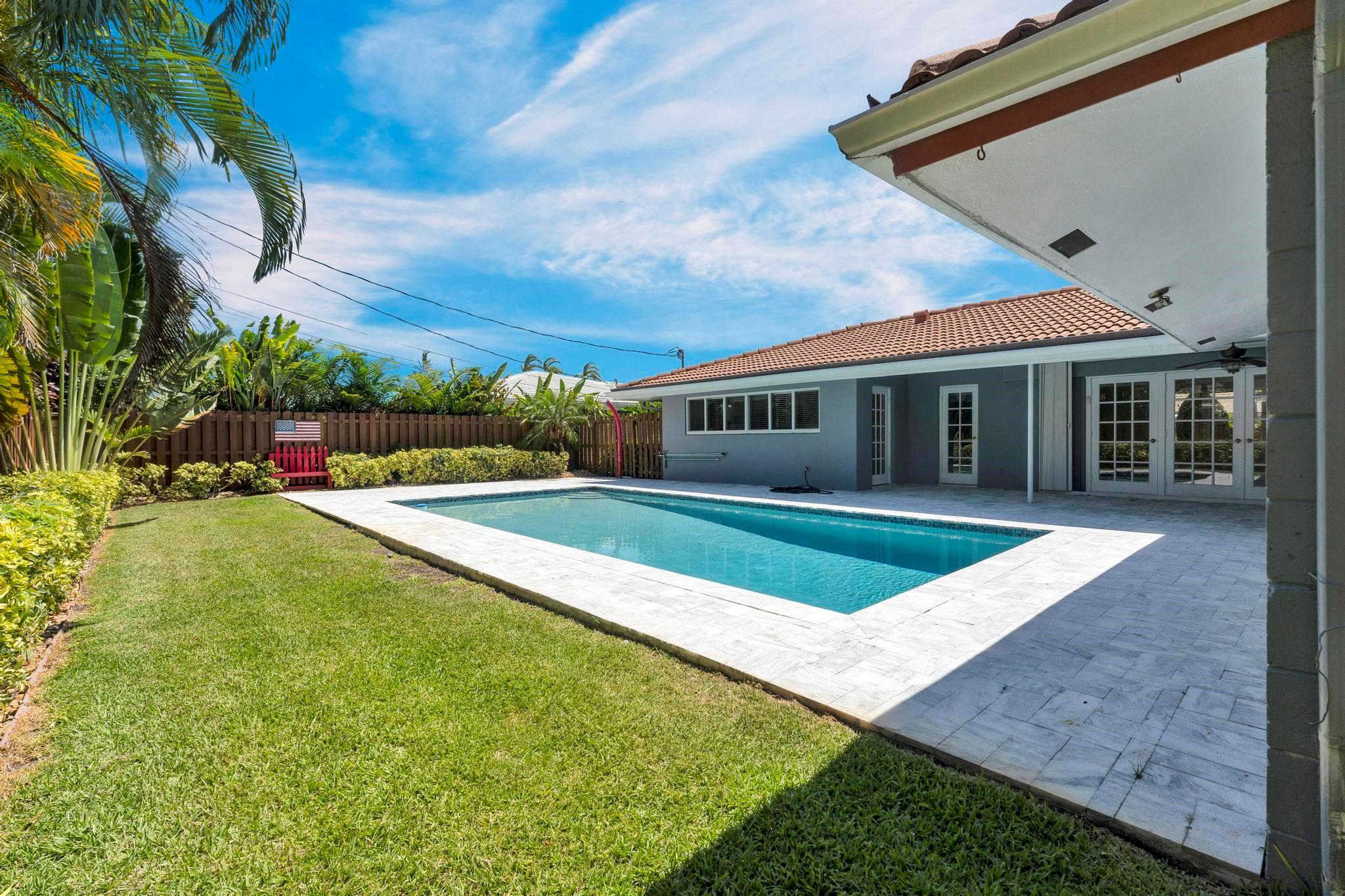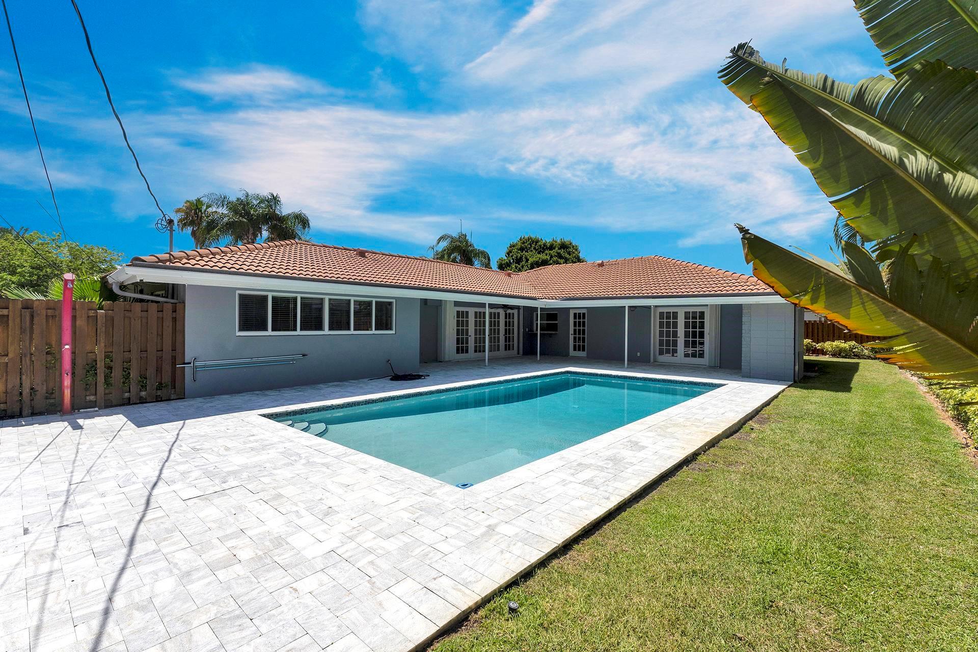 3 Bed 2 Bath Pool Home in beautiful Coral Ridge Country Club. Split Bedroom Floor Plan. 10,000 Sq Ft Lot. 15 x 30 in ground pool. Pool and pool deck resurfaced in 2022. Large 412 square foot covered patio in pool area. Tile Roof. Paver Circle Drive. Impact windows. Stand-By Whole House Generator (2021) with in-ground 500 gallon propane tank. Large 22 x 24 two Car Garage. Water heater new in 2024. Upgraded electrical. Fenced lot. Leased security cameras. Automatic sprinkler system on private well. Large master bedroom with private bath and French doors leading to pool. Other 2 bedrooms have their own mini-split AC system. Minutes to beach, restaurants and shopping. Priced below appraised value.