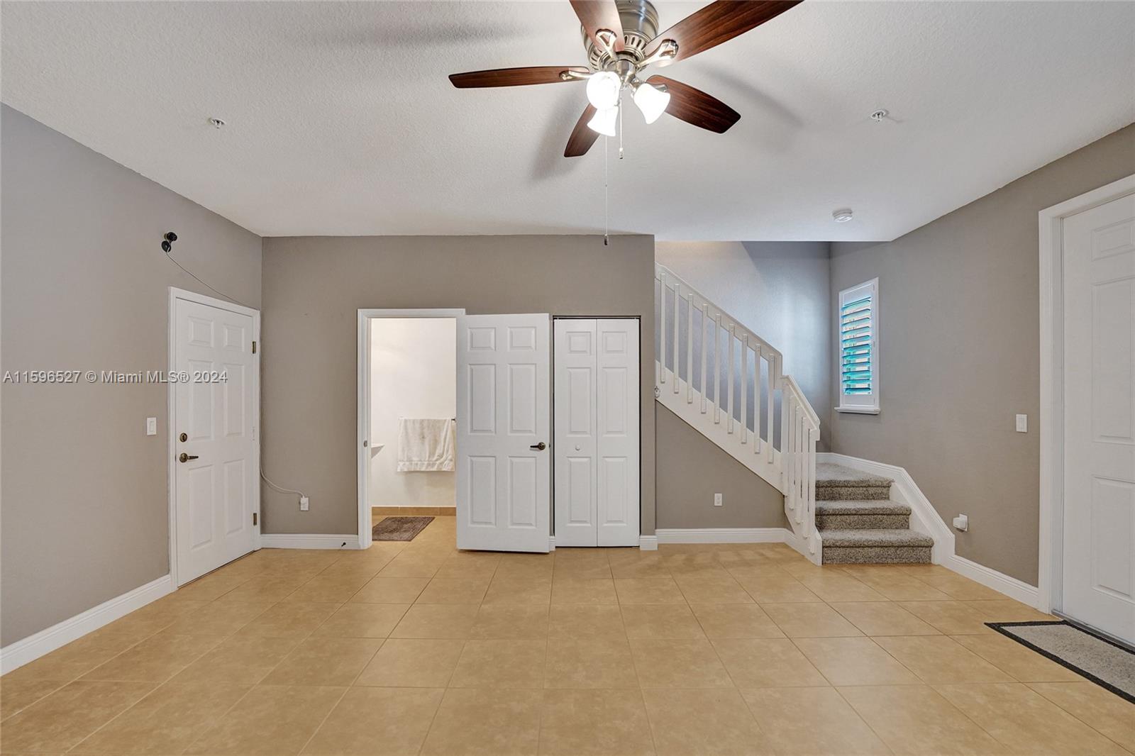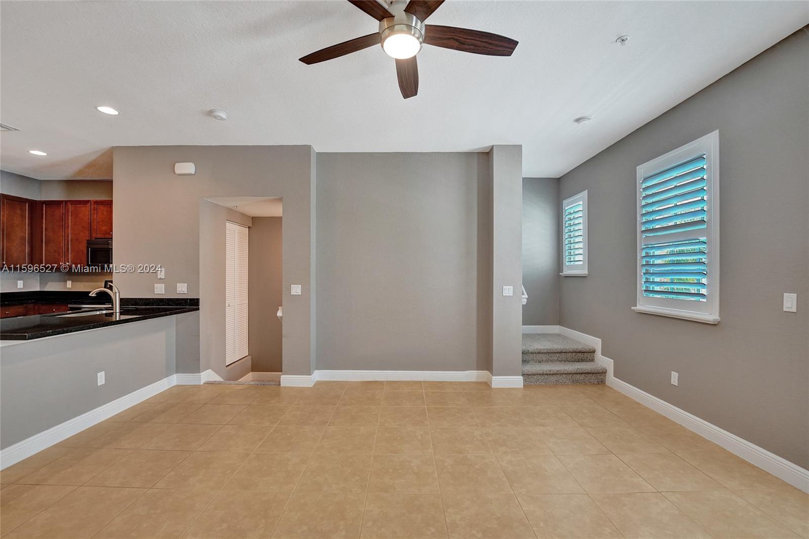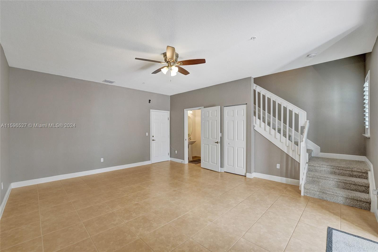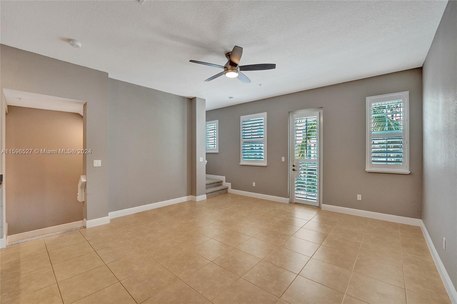 This well-maintained tri-level townhouse offers modern living with a spacious layout. The first floor includes a large living area, half bath, and a 2-car garage. The second level features a family room, dining area, open kitchen, bedroom, full bath, and private balcony. On the third floor, you'll find a spacious master bedroom and a third ensuite bedroom, providing privacy and comfort. Additional features include impact windows and doors, plantation shutters, custom closets, upgraded carpet, in-unit laundry, and direct garage access. Located near shopping, dining, parks, and major highways with a low HOA (Incl: Cable, Internet, Gated Community) this townhouse is the perfect urban retreat. Must see!