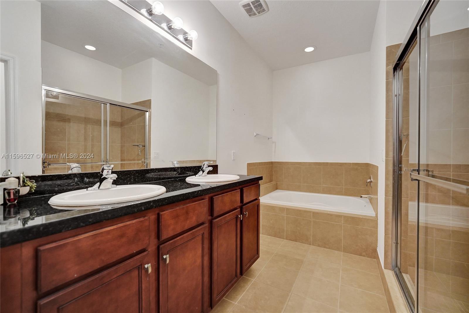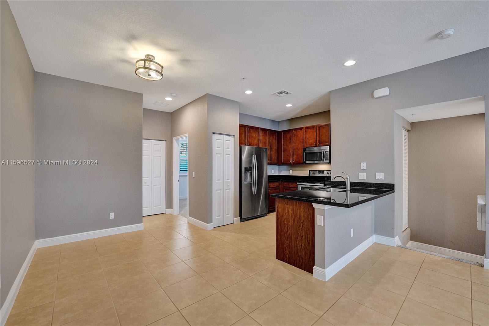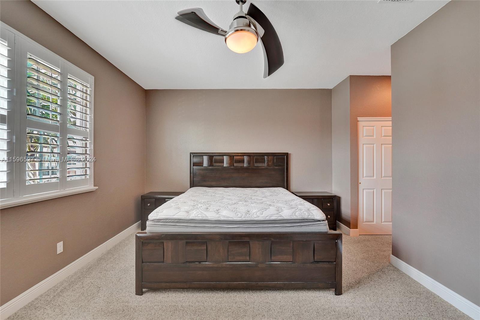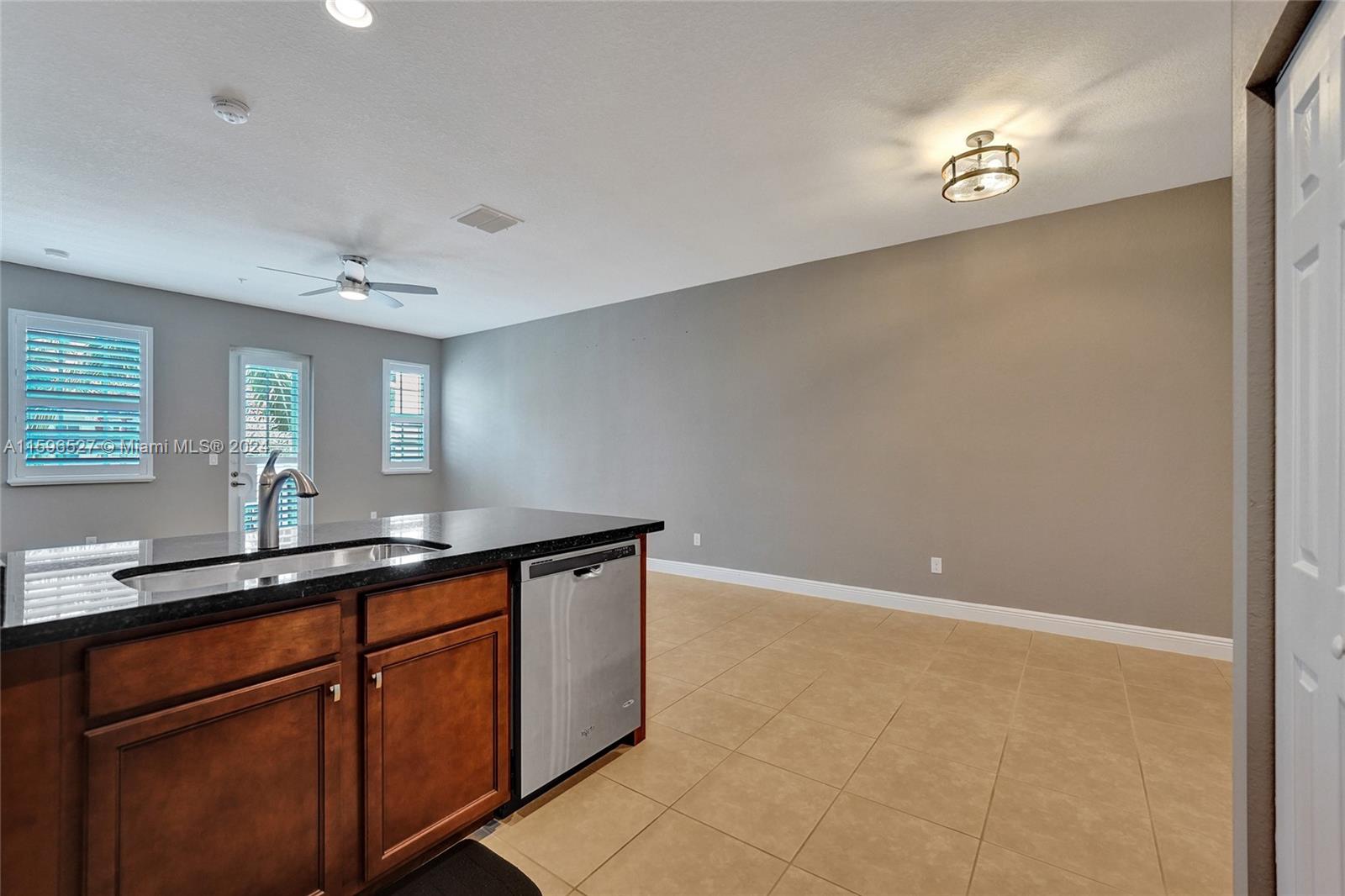 This well-maintained tri-level townhouse offers modern living with a spacious layout. The first floor includes a large living area, half bath, and a 2-car garage. The second level features a family room, dining area, open kitchen, bedroom, full bath, and private balcony. On the third floor, you'll find a spacious master bedroom and a third ensuite bedroom, providing privacy and comfort. Additional features include impact windows and doors, plantation shutters, custom closets, upgraded carpet, in-unit laundry, and direct garage access. Located near shopping, dining, parks, and major highways with a low HOA (Incl: Cable, Internet, Gated Community) this townhouse is the perfect urban retreat. Must see!