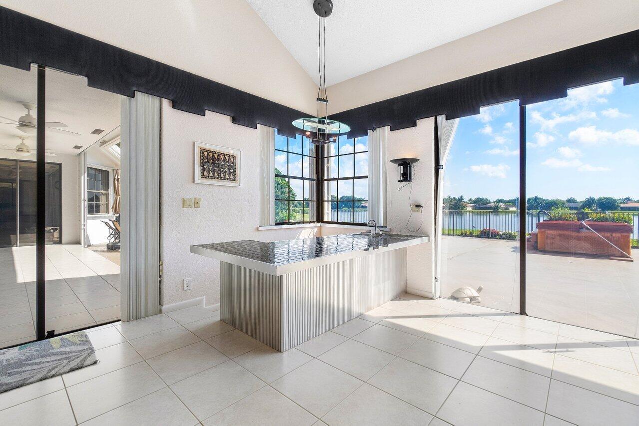 Unbelievable property & location! Quiet cul-de-sac, almost HALF ACRE on the glistening BIG LAKE in the desirable Bocaire Country Club. Relax on the oversized patio, or float in the huge pool while overlooking the expansive and peaceful water. Views everywhere -from the Primary bedroom, the living room, huge chefs kitchen and family room! Split bedroom plan with Primary bedroom & second bedroom down, and two bedrooms plus spacious loft upstairs. Bocaire Country Club is a boutique mandatory membership country club (which includes parents, children and grandchildren!) boasting newly renovated club house, renowned championship golf course, resort style aquatics, pilates & spin studio, 24 hour fitness center, first class dining, active golf, tennis, pickle ball programs and many social