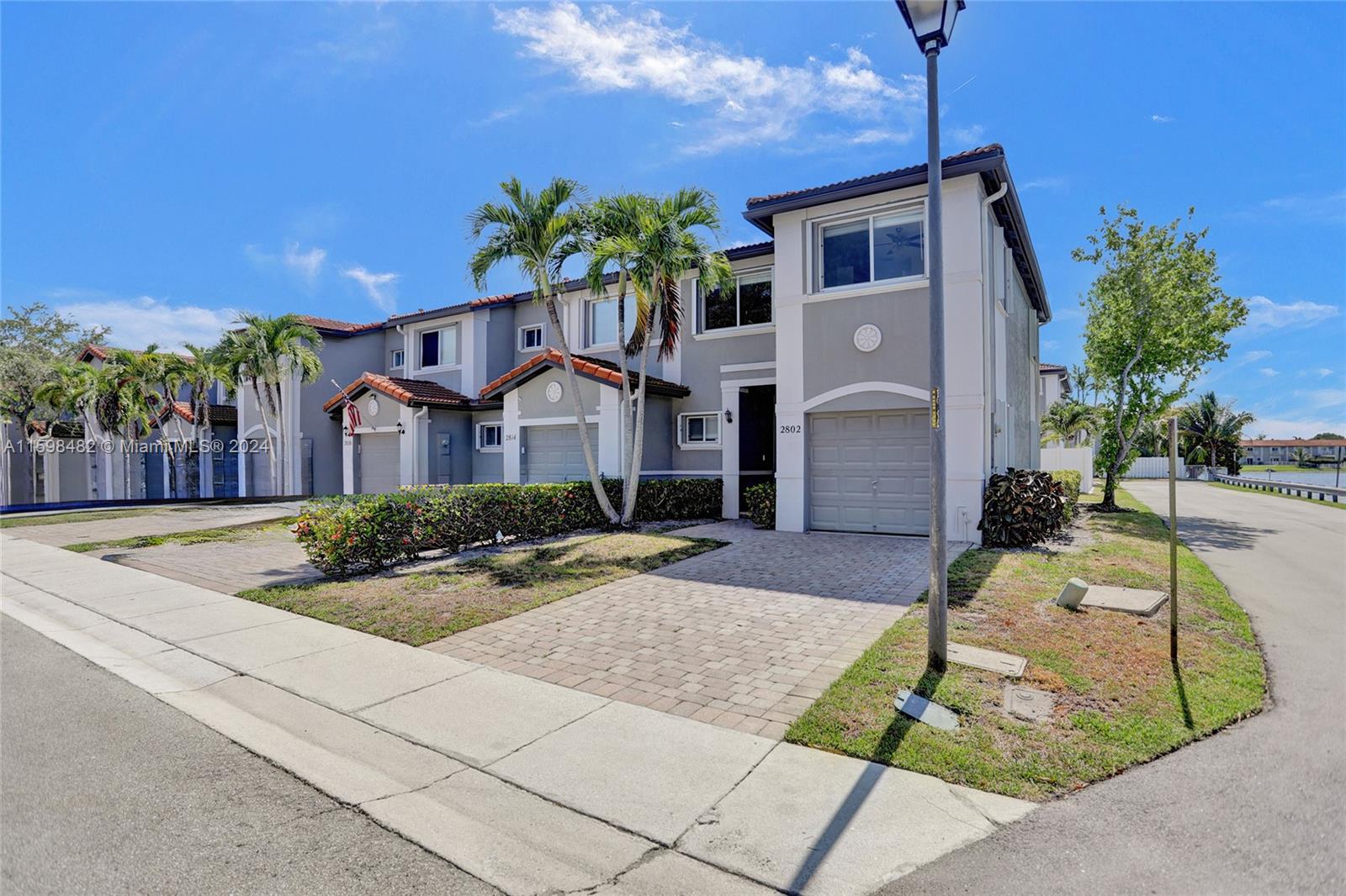 Welcome to your luxurious haven in the coveted Harbour Lakes gated community of Miramar! this stunning corner unit townhouse offers 3 bedrooms and 2.5 bathrooms, a spacious layout with a car garage, and a laundry room under the AC area. With accordion storm shutter protection not only does this feature ensure your safety during inclement weather, but it also translates to potential savings on insurance costs. As a corner unit, you'll enjoy an abundance of natural light and scenic views, creating openness and connection to the lush surroundings.