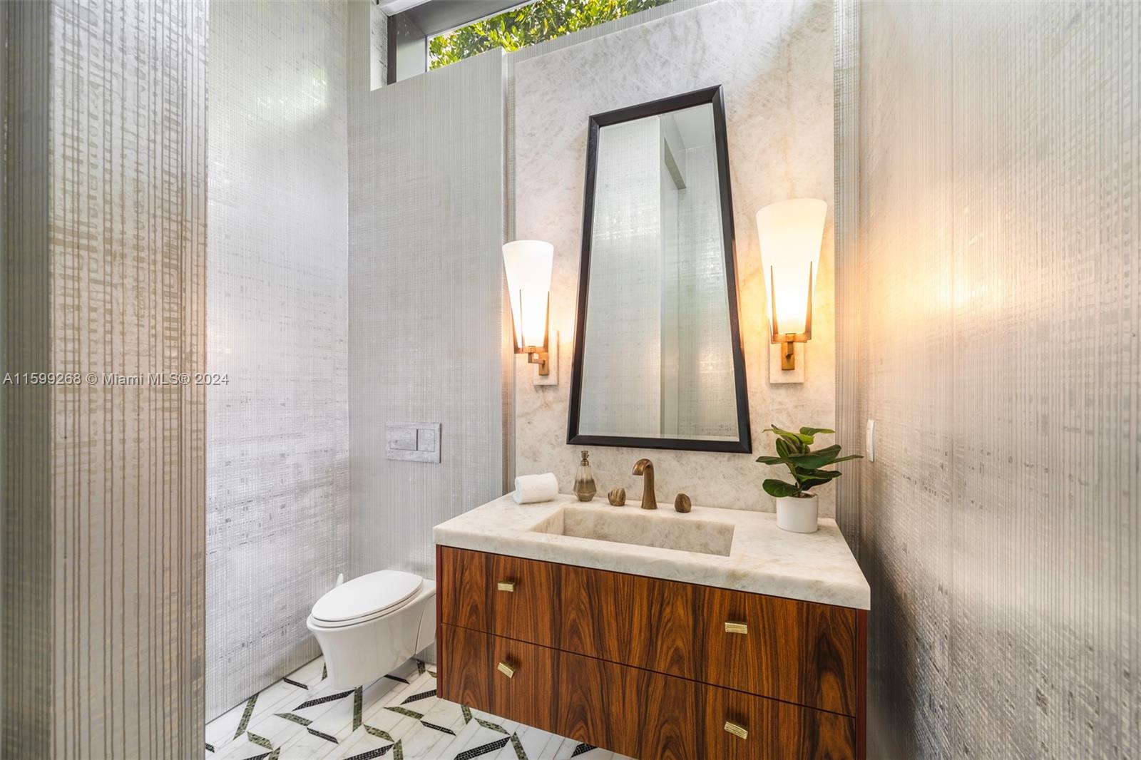 Stunning architecturally significant custom home for sale on much sought after Meridian Ave in south beach. Sweeping golf course views and situated walking distance to the beach, sunset harbor, Lincoln road, the Ghery performing arts center, the convention center and city hall. Restaurants, shops, hotels, schools, houses of worship all at your fingertips. 6 bedrooms 6 1/2 bathrooms. Master suite on the main floor. Large expansive living room/dining room/kitchen with walls of glass that open to your tropical garden oasis. 2 more relaxing studies, one on the main floor and one on the second floor. Entry foyer with spiral wood/metal staircase and double sided fireplace with quartzite surround. Custom plaster ceilings throughout the main floor. 2 laundry rooms, generator, full automation