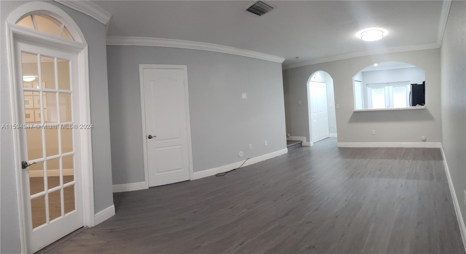Excellent Opportunity to own a centrally located Townhome Completely Remodeled in 2022 featuring 3 Bedrooms, 2 Full Baths & 1 Half Bath. Den converted into convenient downstairs bedroom. 2021 NEW Roof, 2022 Updated Kitchen with White Cabinetry, Quartz Countertop & Backsplash & 2022 NEW Stainless Steel Appliances. NEW Laminated Water Resistant Wood Flooring throughout. Remodeled Bathrooms with Porcelain Tiles for Bathroom Floor & Wall Tiles , 2020 HVAC, 2023 Titan Tankless Water Heater, 2021 Electrical Panel, 2022 Washer/Dryer inside unit, Garbage Disposal. Two assigned parking spaces + Guest Parking. Hurricane Panels. Low Monthly Association Fee of $174.35. Great location, near Palmetto Expressway, Palmetto Hospital, within walking distance to Strip Shopping Centers & nearby good schools !