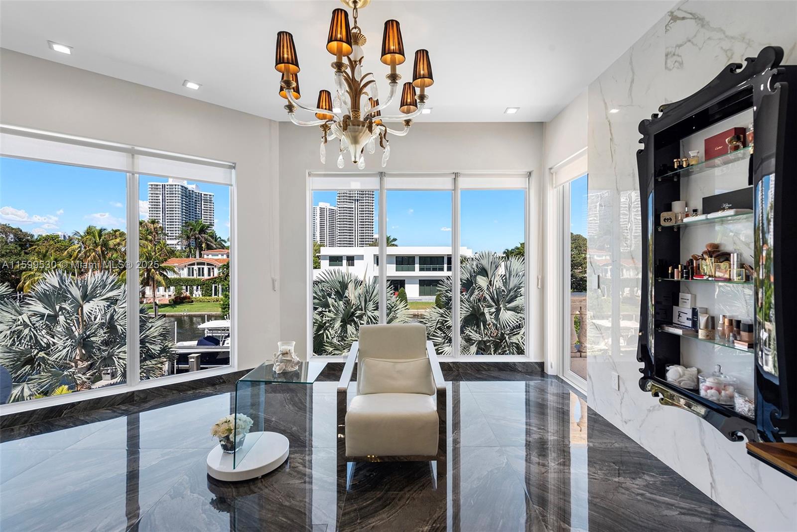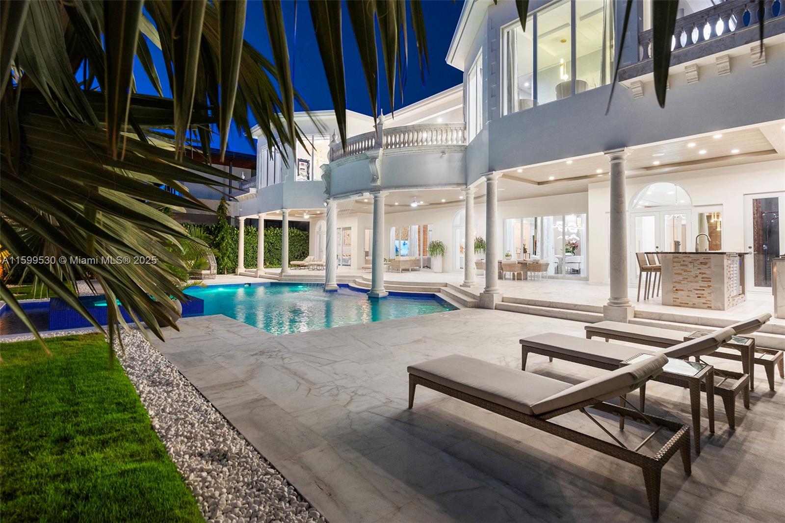 Welcome to a new-age castle in Golden Beach, a newly built custom waterfront masterpiece. This home boasts massive ceilings and a well-thought-out design with handpicked European materials and finishes. Enjoy 100 feet of private water frontage, no fixed bridges, and easy ocean access. This smart home includes an extra generator and is an entertainer's dream with open spaces featuring 13-foot ceilings, a chef's kitchen, home theater, game room, living room fireplace, built-in patio barbecue, and custom saltwater pool with jacuzzi. The primary bedroom offers a balcony, dual walk-in closets and bathrooms, and an office space. Guest bedrooms feature walk-in closets, balconies, and en-suite bathrooms. Fully furnished with Fendi, Bentley, and Visionnaire furniture.