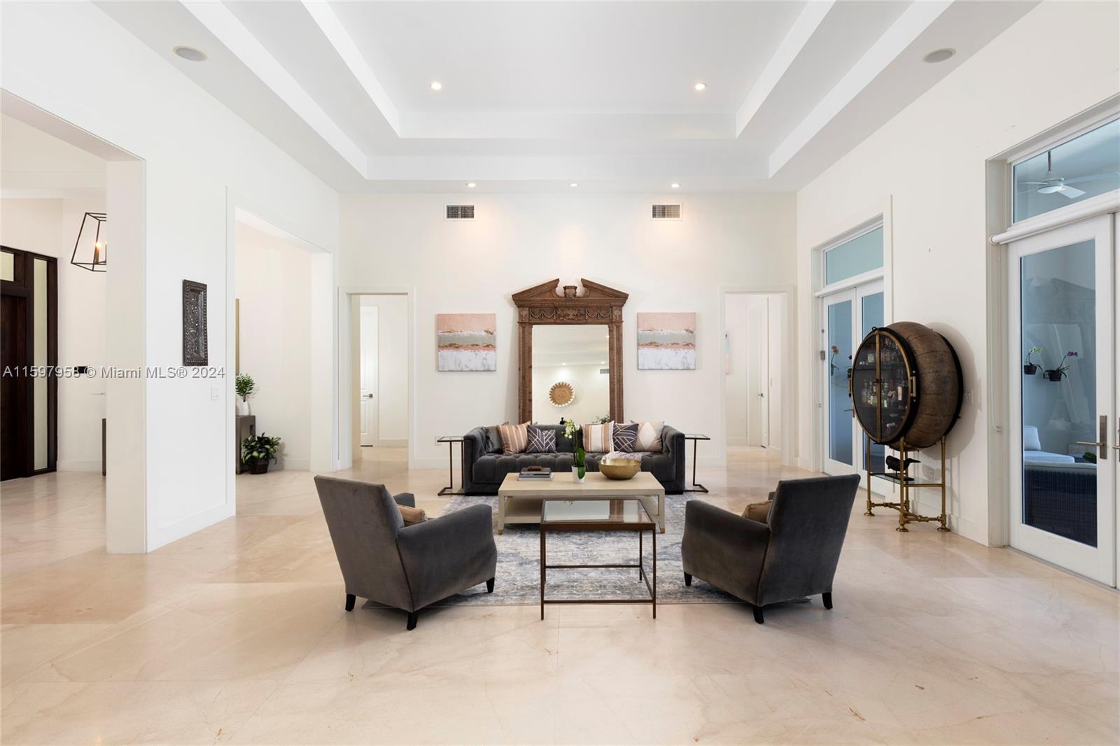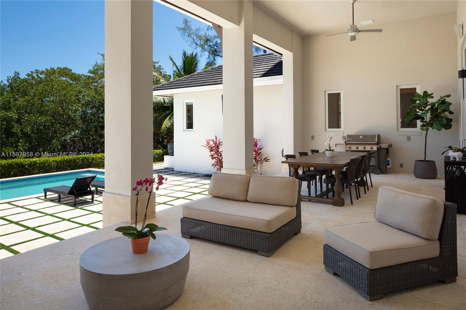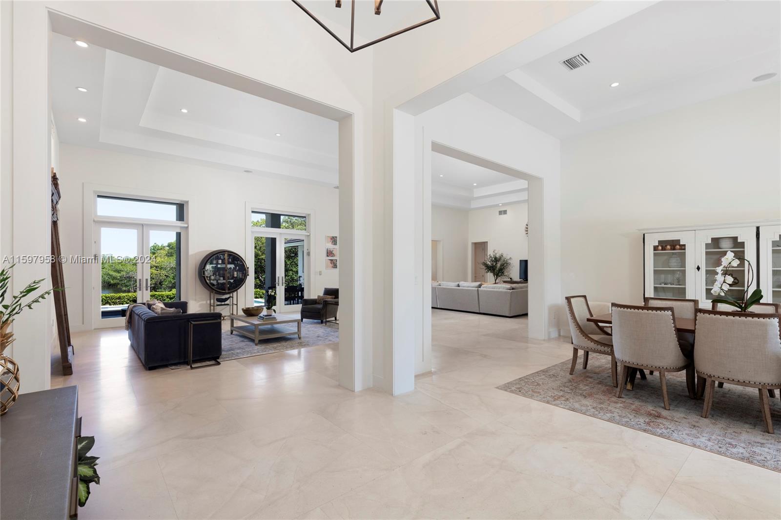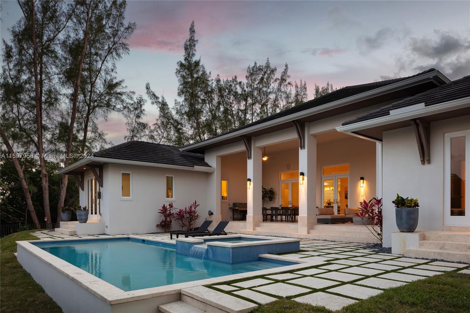 Luxury and tranquility blend seamlessly in this tropical modern home in the exclusive guard-gated community of Hammock Oaks. This Giorgio Balli design features soaring ceilings, abundant natural light, and impressive Great Room with sweeping water views. The heart of the home is a bright and inviting kitchen with oversized eat-in island, high-end appliances and gas range, and custom cabinetry with tasteful millwork. Take in the serene outdoors with a large covered terrace, saline heated pool & spa, and stone deck. The primary suite features breakfast bar, two walk-in closets, and spa-like bathroom with standalone tub. Three additional bedrooms with en-suite baths, home office, and live-in’s quarters meet all your needs. Top public & private schools. Some photos virtually staged.