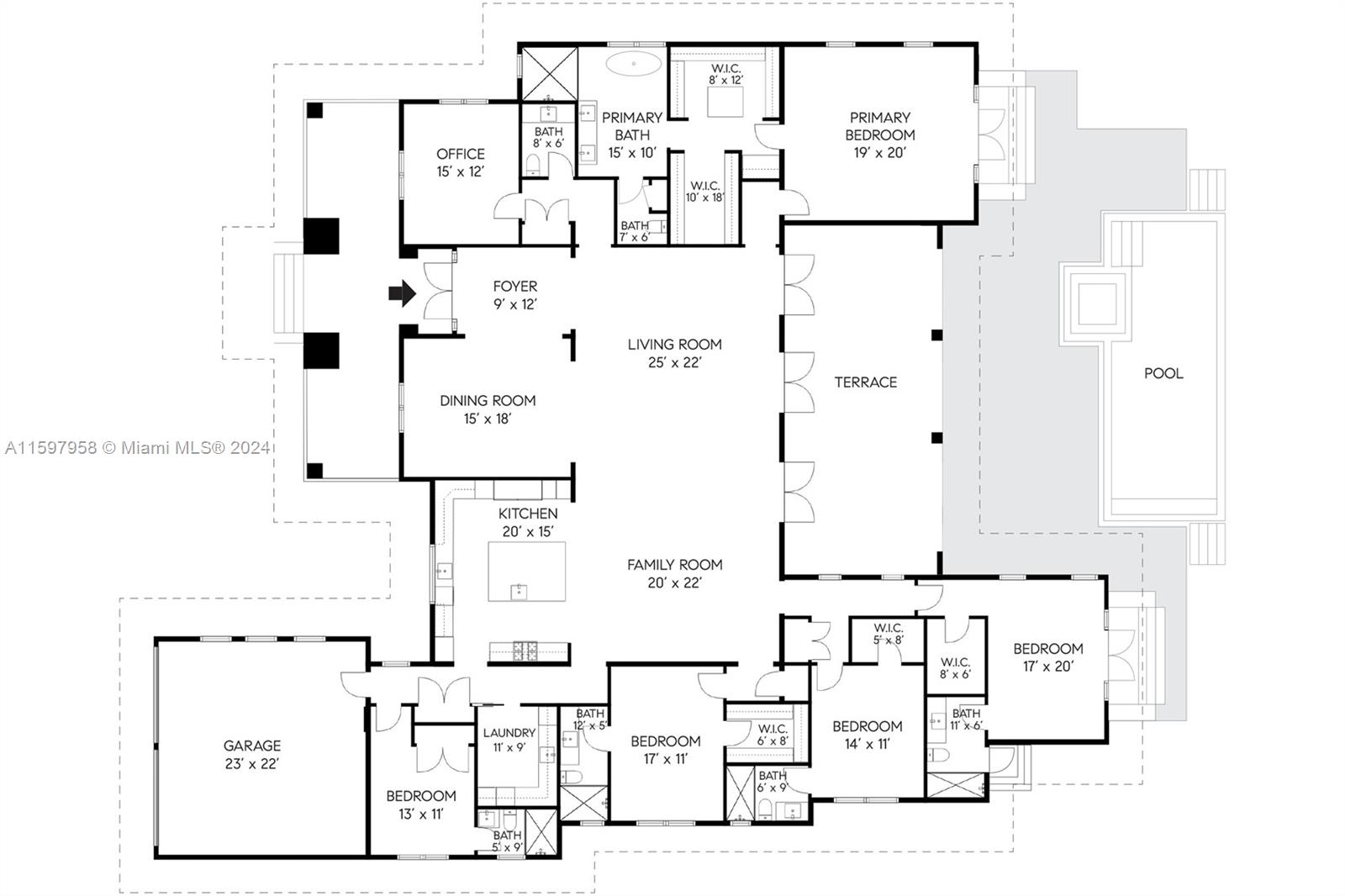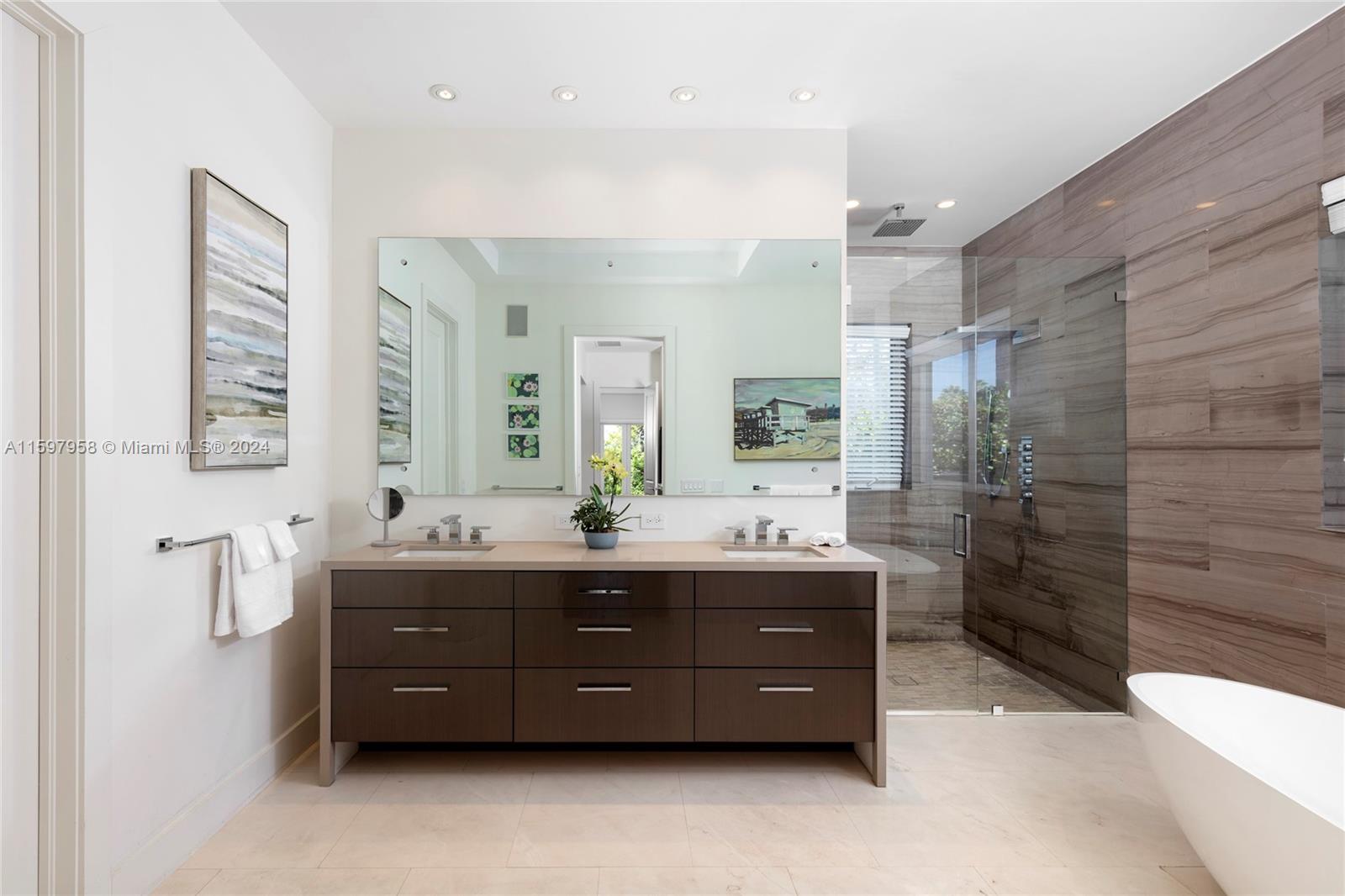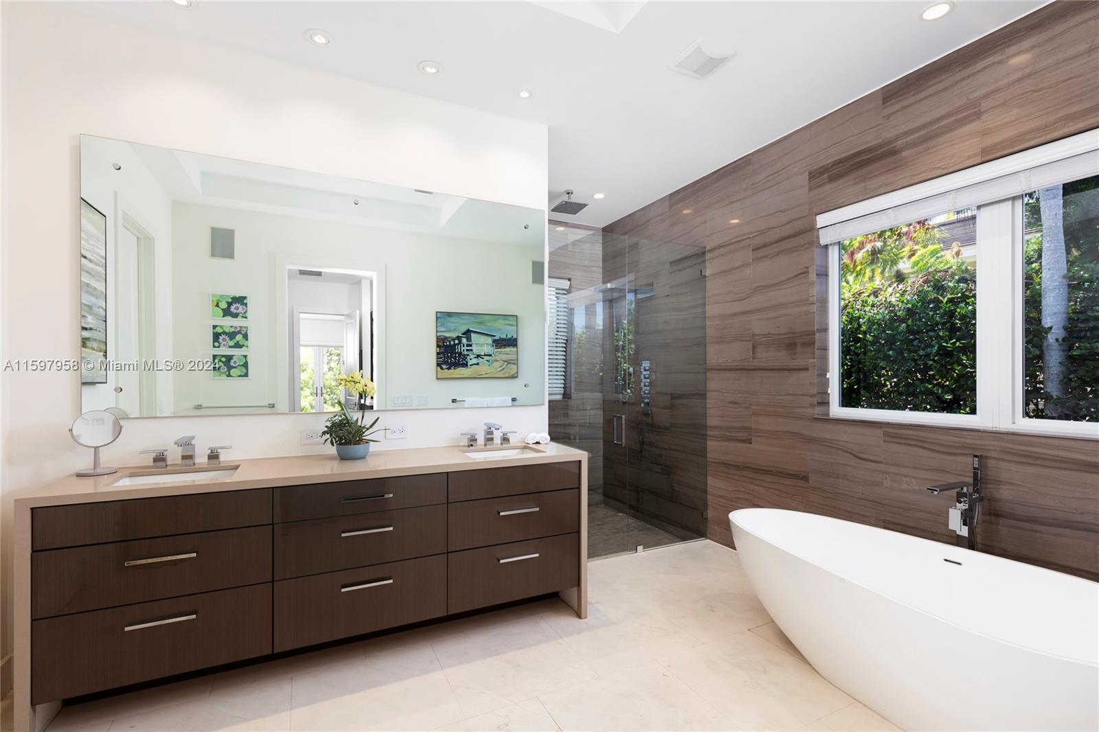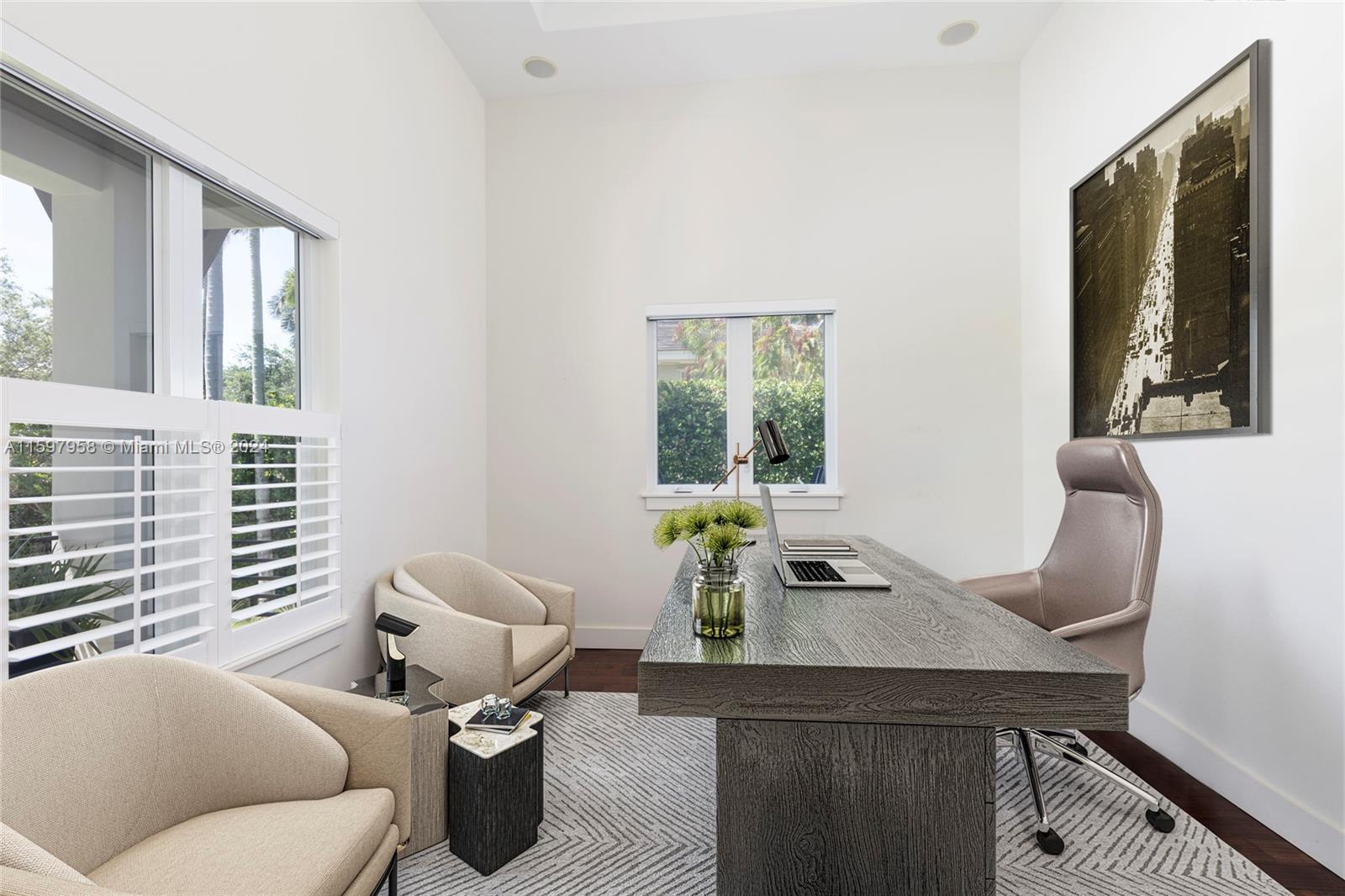 Luxury and tranquility blend seamlessly in this tropical modern home in the exclusive guard-gated community of Hammock Oaks. This Giorgio Balli design features soaring ceilings, abundant natural light, and impressive Great Room with sweeping water views. The heart of the home is a bright and inviting kitchen with oversized eat-in island, high-end appliances and gas range, and custom cabinetry with tasteful millwork. Take in the serene outdoors with a large covered terrace, saline heated pool & spa, and stone deck. The primary suite features breakfast bar, two walk-in closets, and spa-like bathroom with standalone tub. Three additional bedrooms with en-suite baths, home office, and live-in’s quarters meet all your needs. Top public & private schools. Some photos virtually staged.