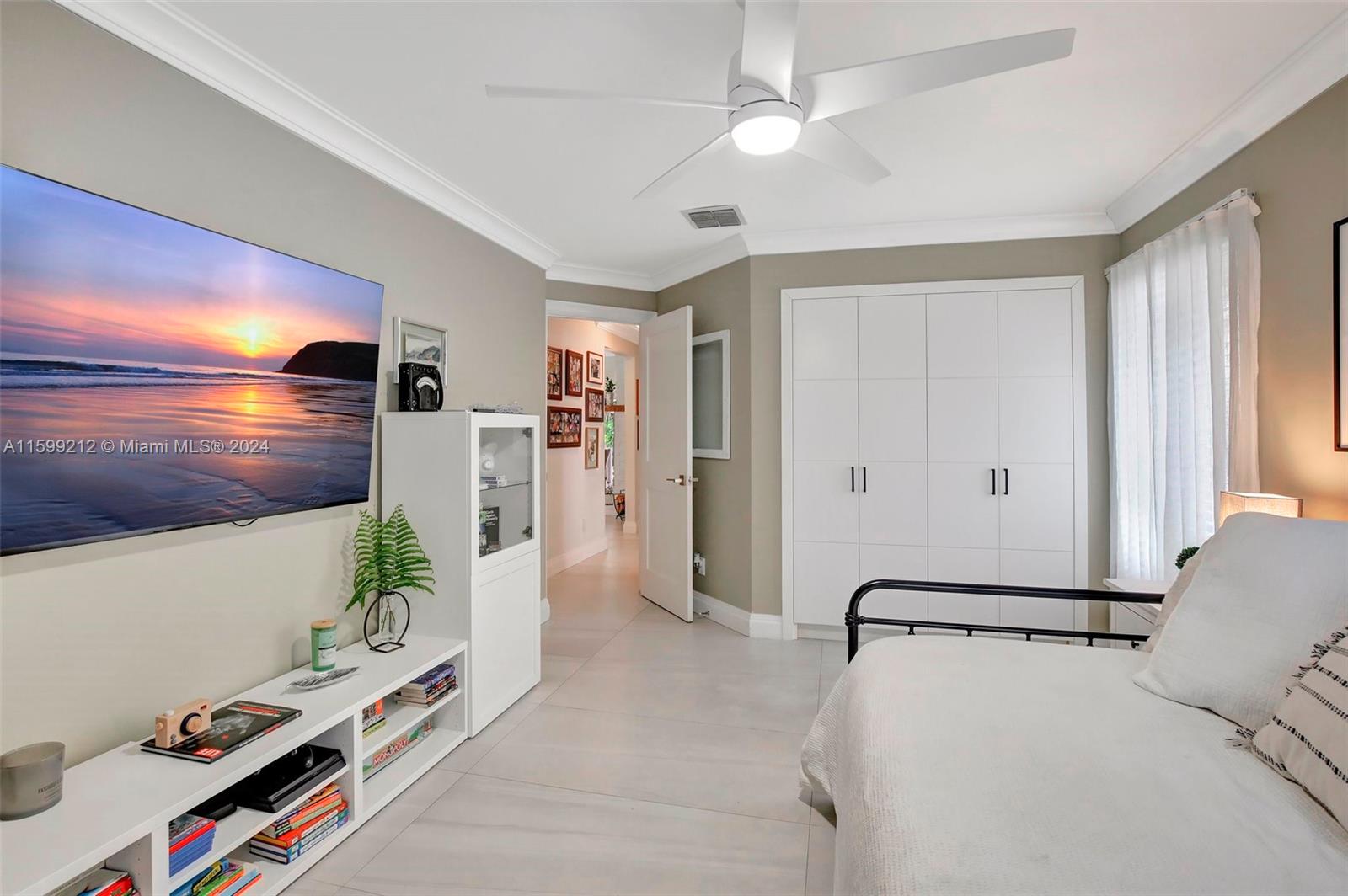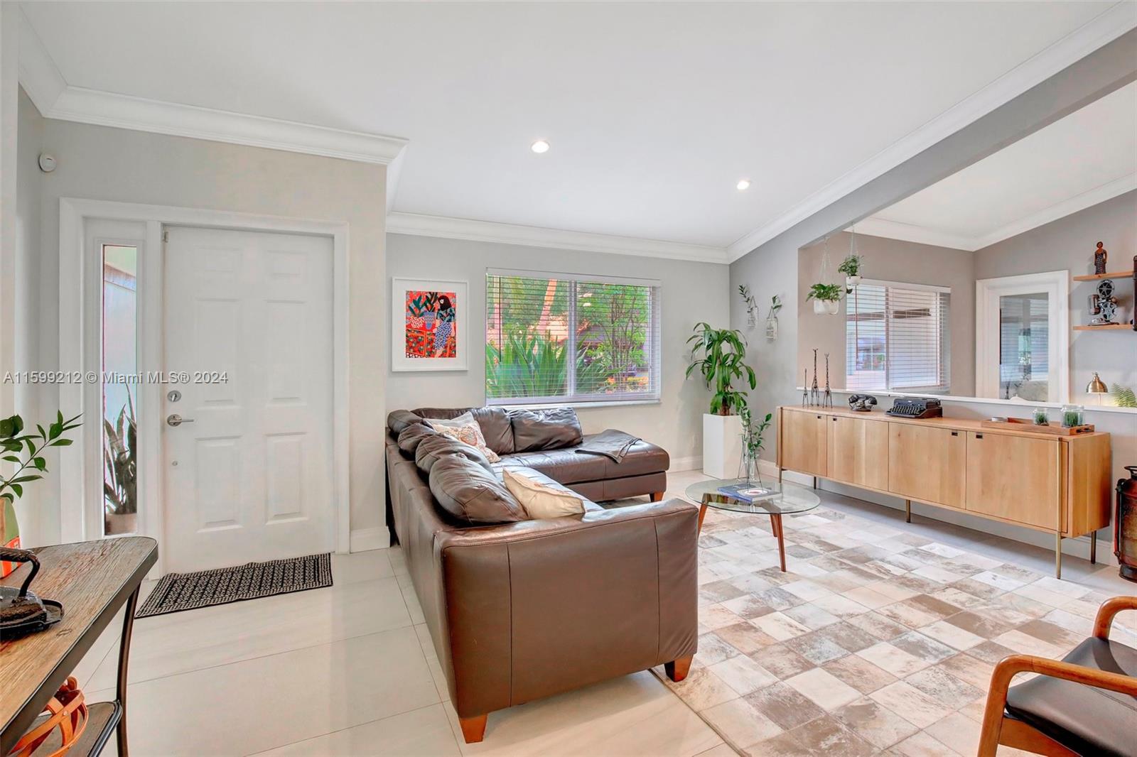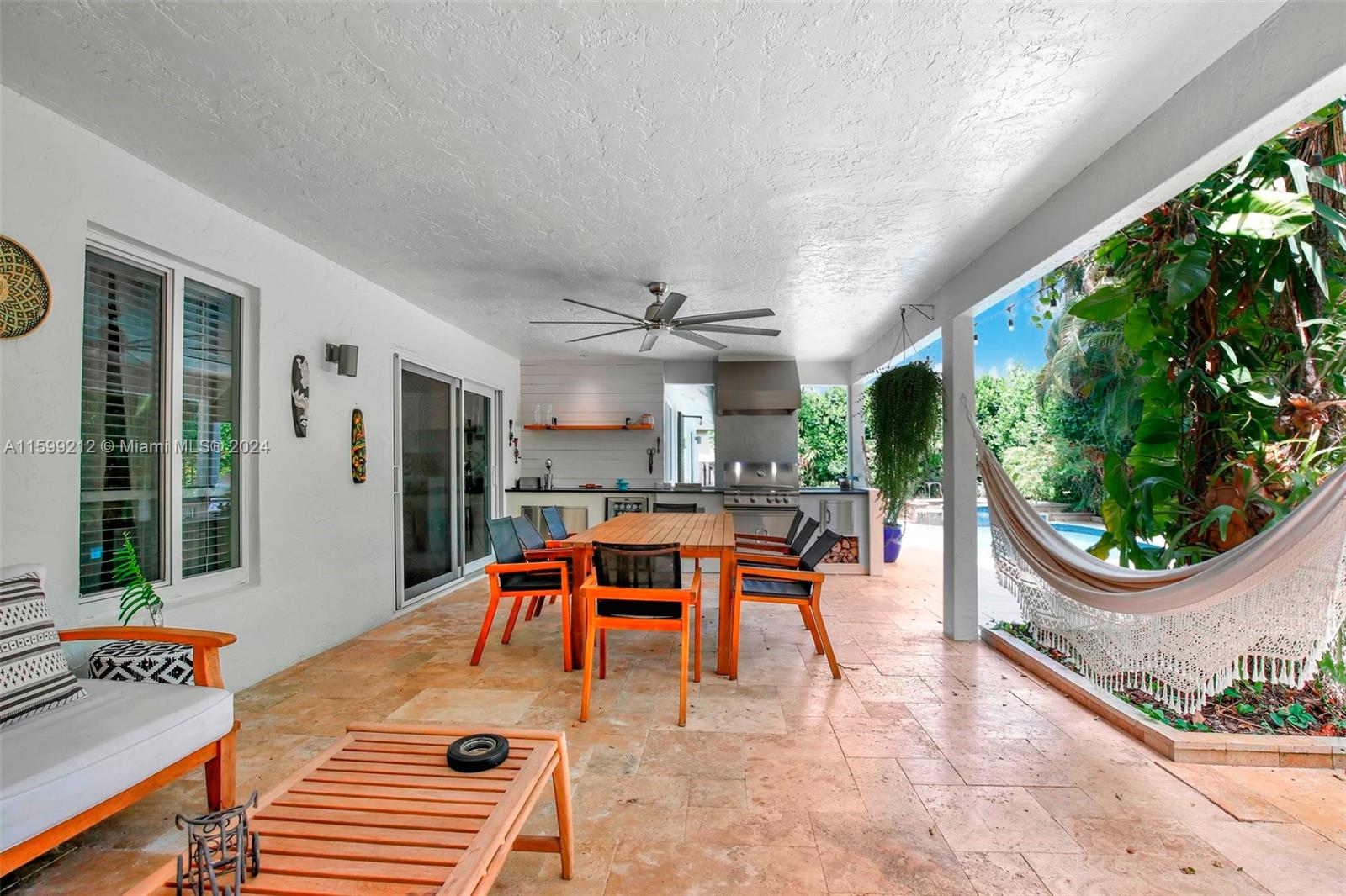 Just over 2100 sqft of endless updates in this 4/2/office pool home featuring impact windows, doors, & garage door. Open layout w/oversized family room (just put the half wall back up, & add a door to make the 4th room) w/gorgeous new 48x24 flooring throughout. Modern kitchen featuring quartz countertops, white cabinets, mosaic tile backsplash & snack bar overlooking the dining room, & built-in bar. Large primary suite w/walk-in closet, & built in secondary closet. Primary bath has been tastefully updated & includes separate tub & shower. Big secondary bedrooms & redone bathroom. Tropical backyard w/endless travertine surrounding the pool & featuring built-in summer kitchen & outdoor shower. NO POLLY PIPES . New AC & tankless water heater, Garage partially converted to make the office.
