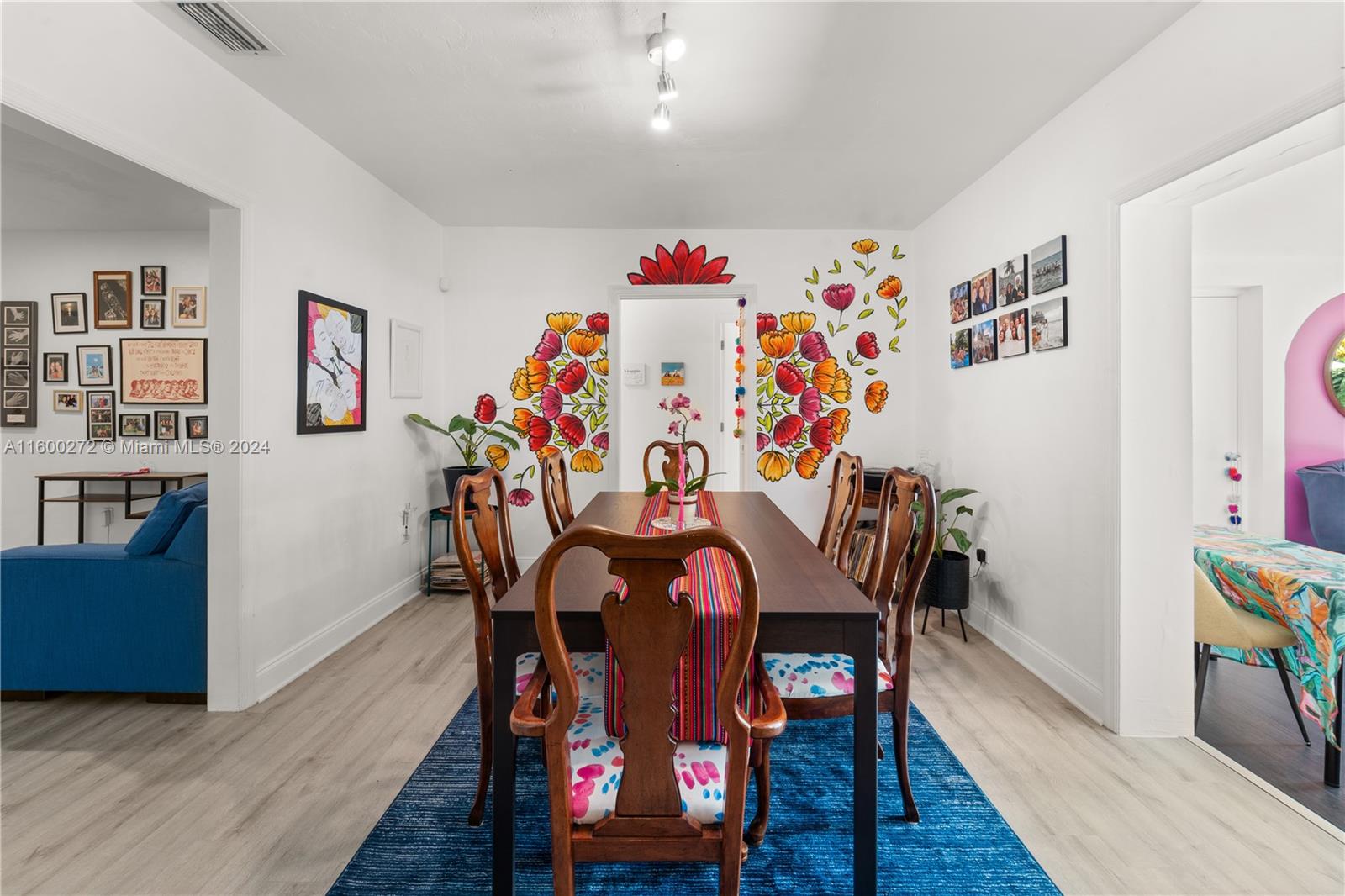 Welcome to 970 NE 129 Street, a captivating 4-bedroom, 2-bathroom residence designed for comfort and style. Inside, discover sizeable rooms, including a master suite with a generous walk-in closet and a private en-suite bathroom, a formal dining room, and an expansive family room perfect for gatherings. The outdoor space is a true oasis, boasting a fully edible fruit forest in the front yard, perfect for those who appreciate fresh, home-grown produce, and a large, covered patio ideal for outdoor entertainment. With its ample living spaces and unique features, this property is more than just a house—it's the perfect place to call home. Don't miss this opportunity to own a piece of paradise in a sought-after neighborhood. Added bonus: Resealed roof/fresh exterior paint/hurricane shutters