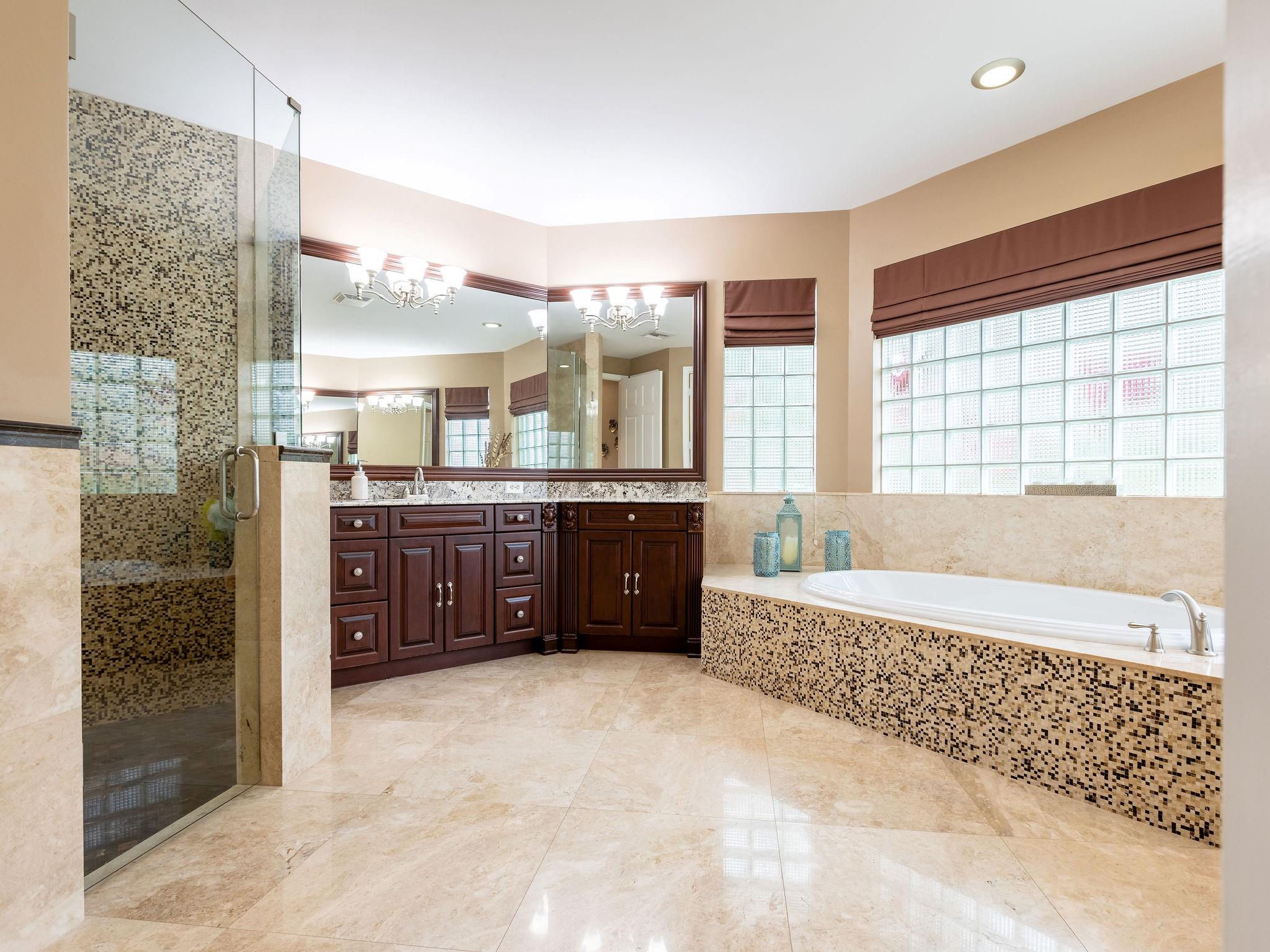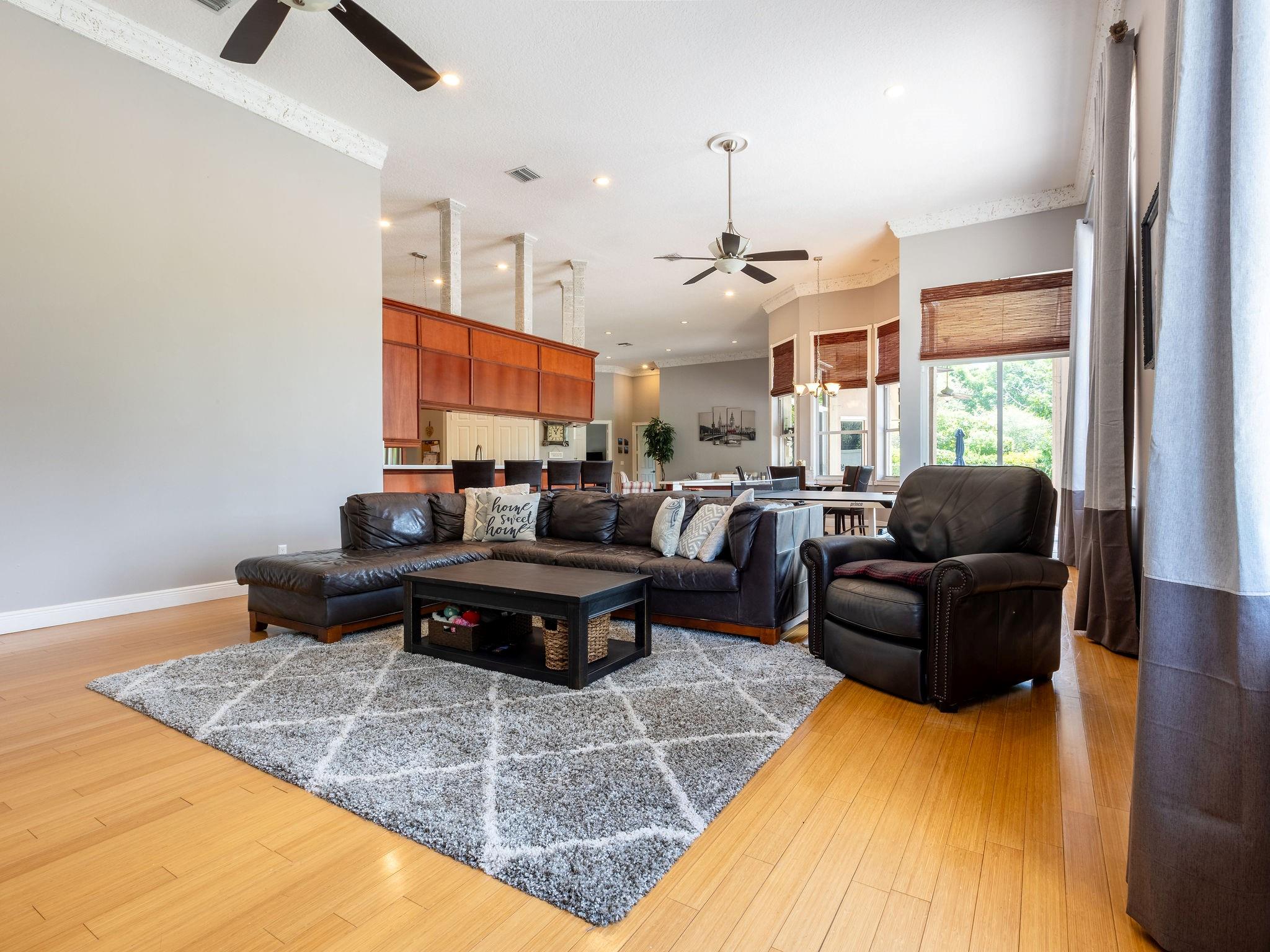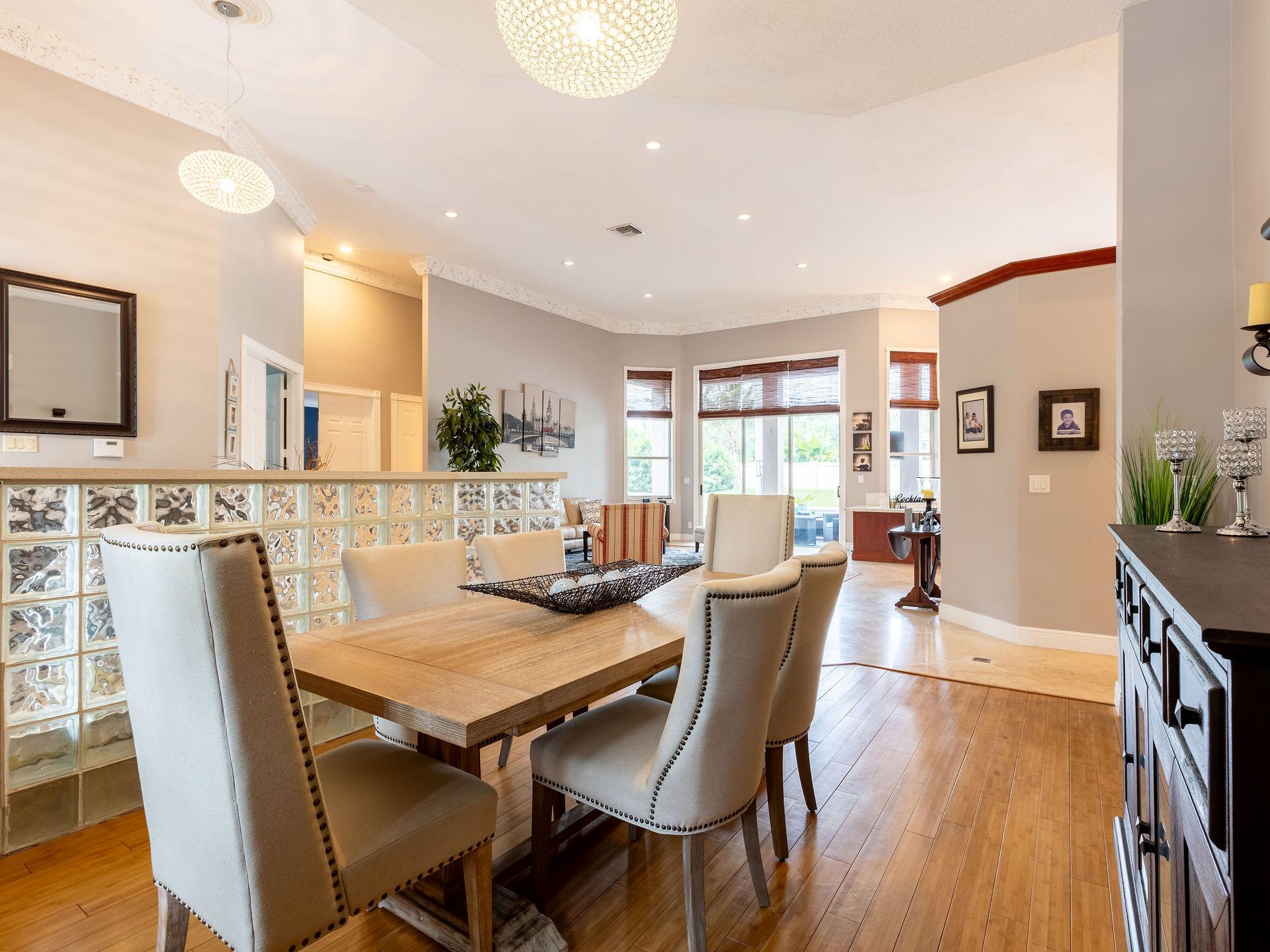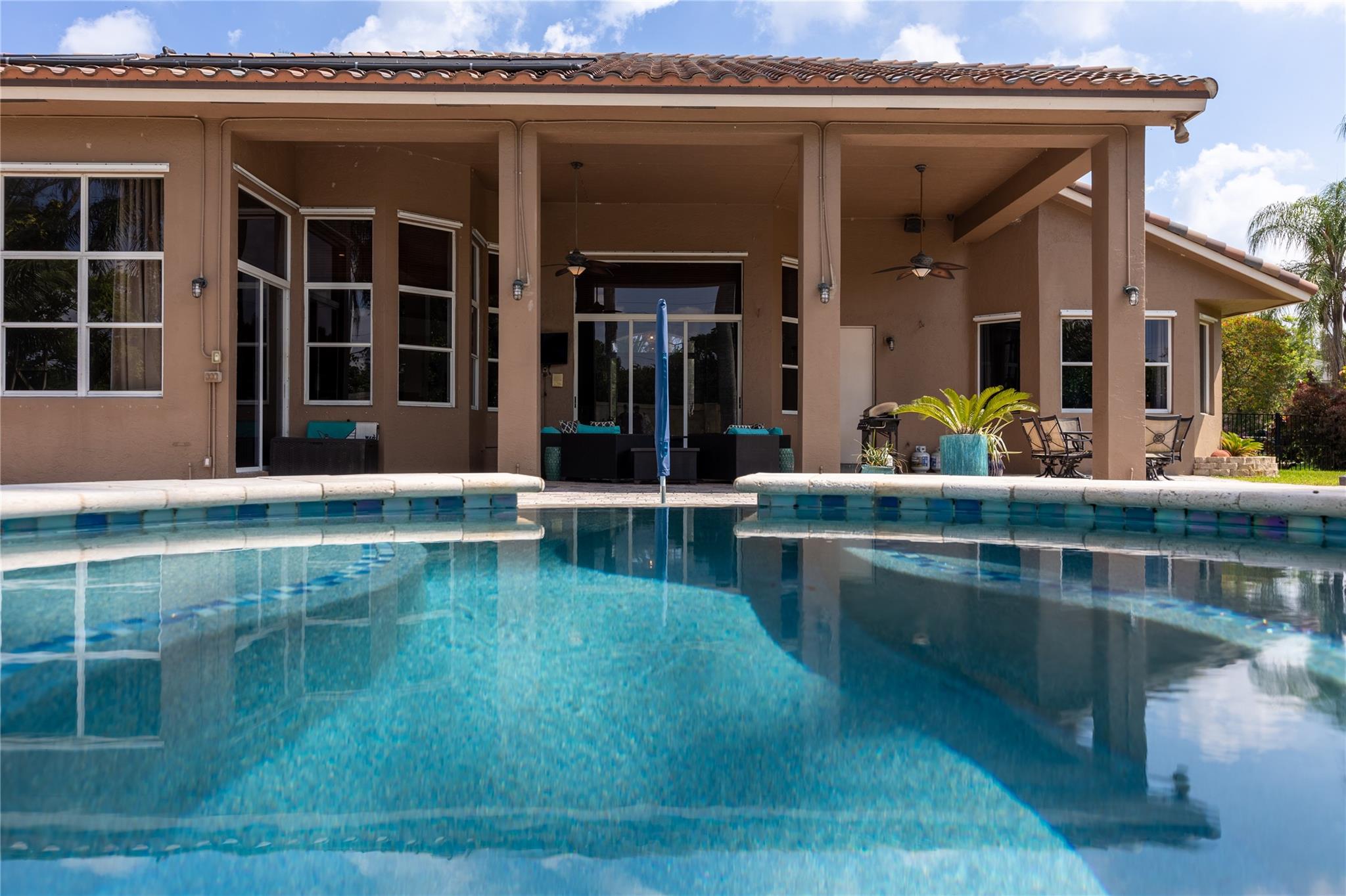 IMPROVED PRICE!! Welcome to Mystique, this beautiful family home is located on a CUL-DE-SAC w/4 bedrooms plus office! Upon entry the expansive view from the many windows flood the home w/ natural light. Spacious kitchen w/ detailed wood cabinetry, walk-in pantry, stainless appliances/hood, quartz countertops & expansive bar. The split floor plan allows for a children's wing, all en-suite, laundry room w/ utility sink & lots of storage. The primary bedroom is oversized, focal wall w/ carpentry detail & sitting area. Two lg closets, spa-like bathroom, water closet & split/dual vanities. Updated bathrooms. The lush backyard is fenced with a lg pool featuring interior table/seating, extensive paved deck, builders acre. Roof 2015, 3 A/C's 2018, hot water heater 2023... NO BACKYARD NEIGHBORS!