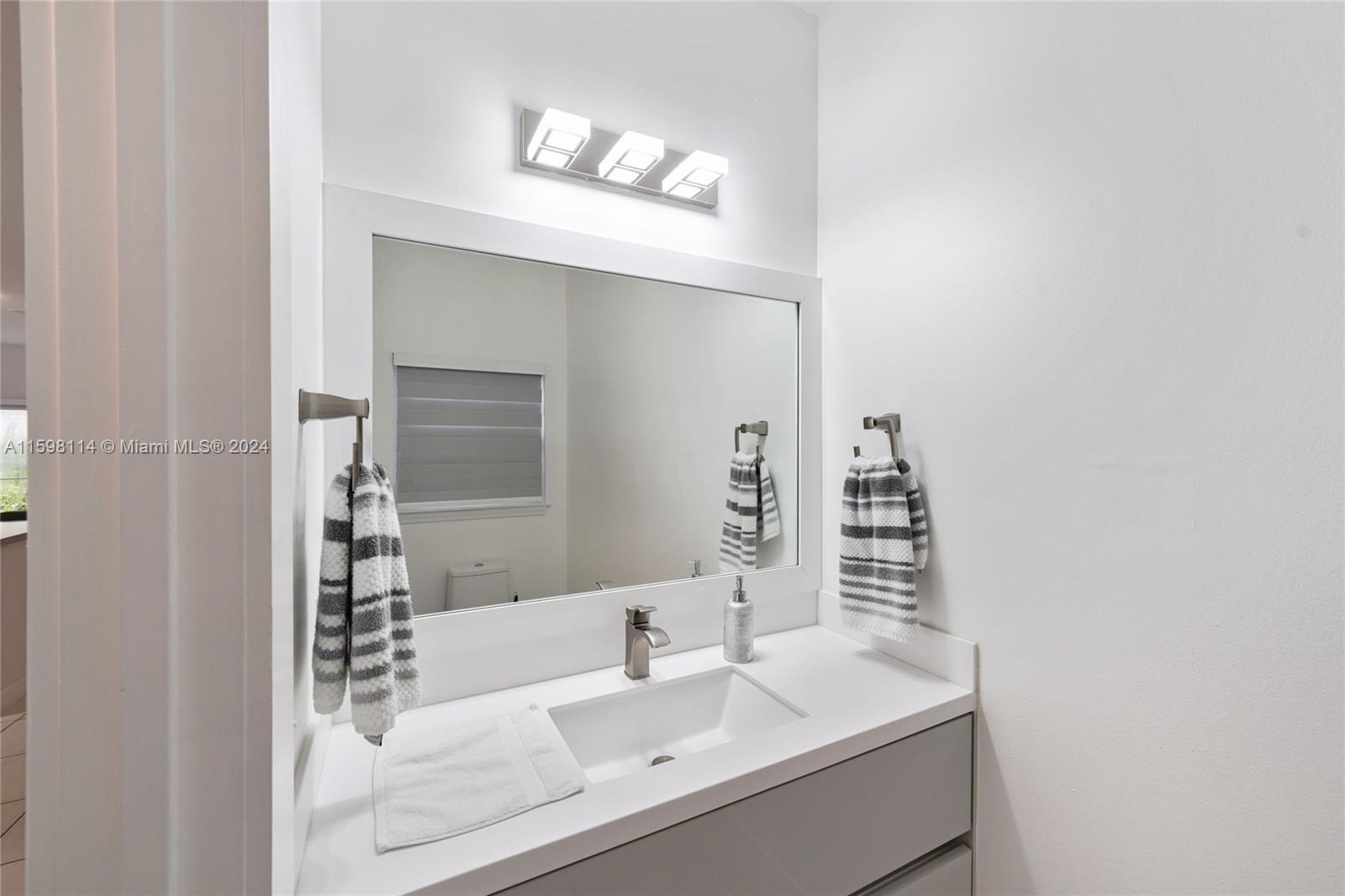 Beautifully remodeled townhouse in mint condition at Plantation Trace. 3 bedrooms and 2.5 baths, with tile floors on the first floor and laminate on the second. The open concept kitchen, living, and dining area is perfect for entertaining. The large master bedroom features walk-in closets, a seating area, with a soaking tub and step-in shower. Roomy guest bedrooms have ample closet space. laundry room, storage, and a one-car garage with a driveway for two cars. The HOA maintains lawn service. An outdoor patio is ideal for grilling and family gatherings. Amenities include the community pool and children’s playground. Excellent school district, the home is moments from Sawgrass Mills Mall and major highways. A new roof was installed on March 8, 2024, new asphalt pavement coming August 2024