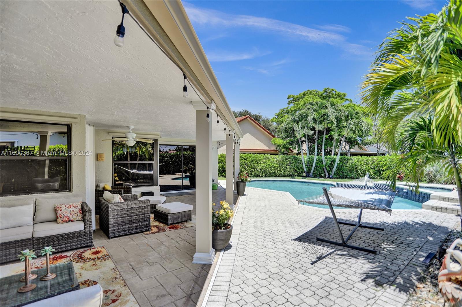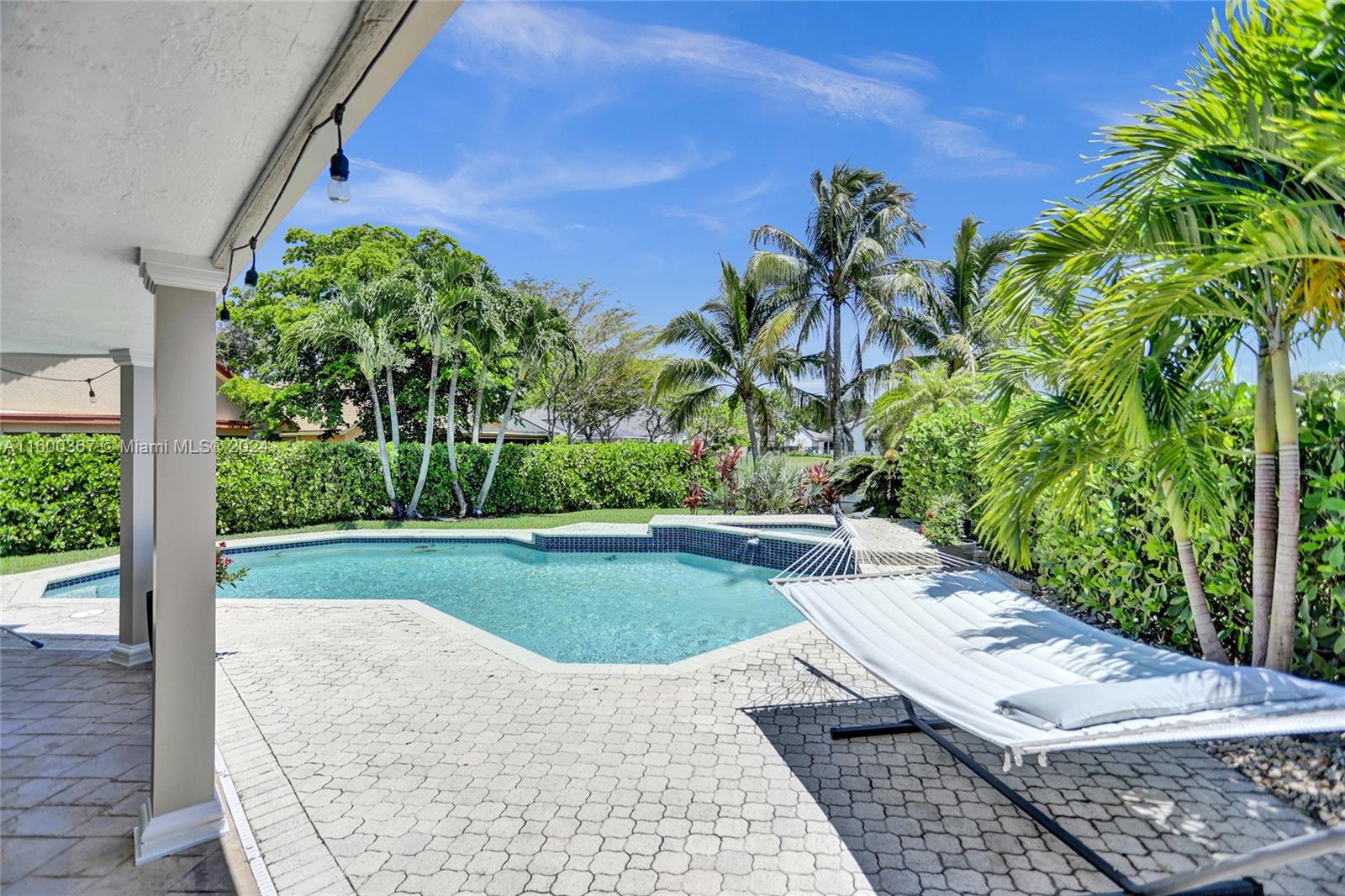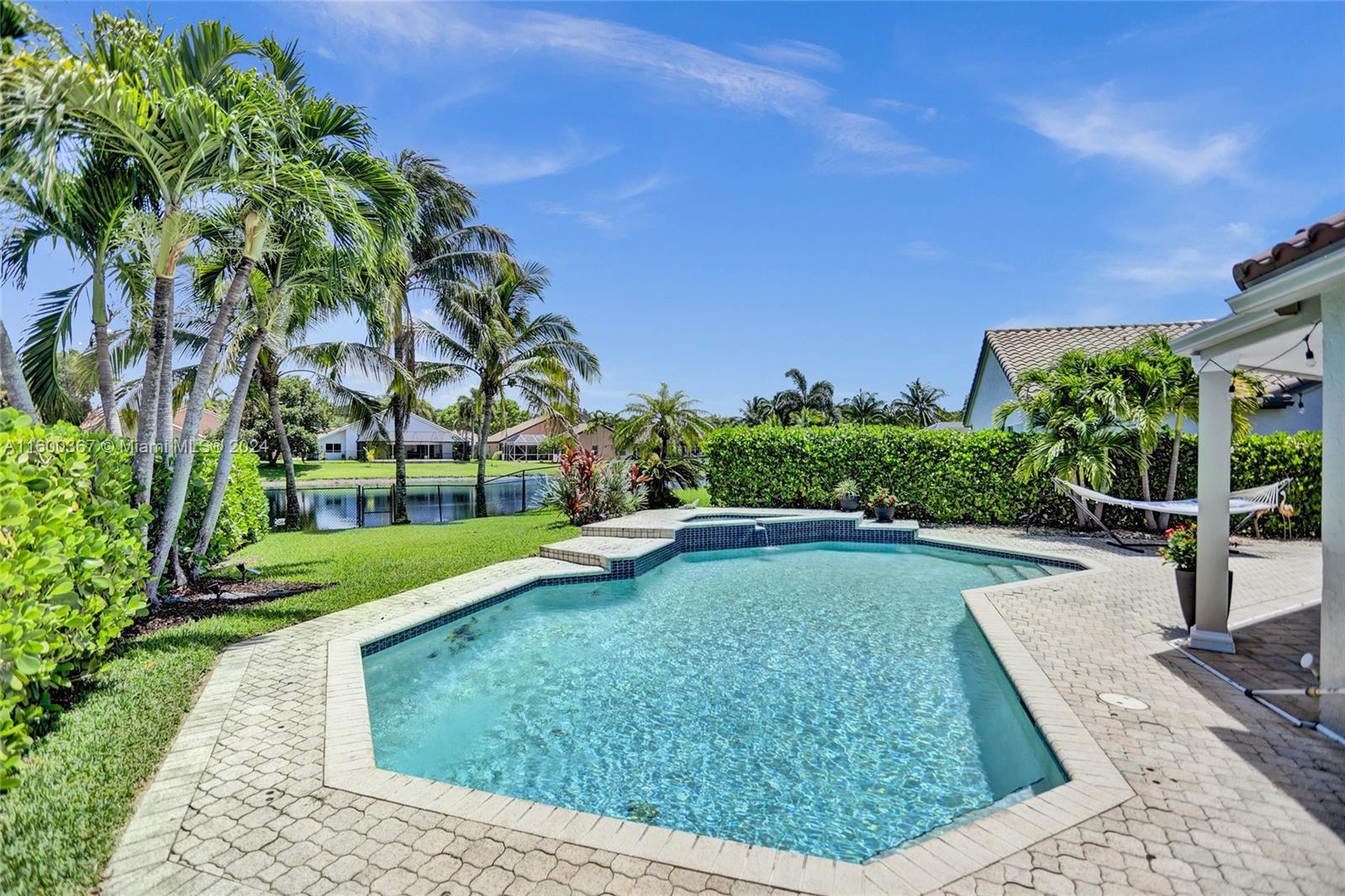 Stunning 5 bedroom 2 1/2 bath pool home w/ lake view in sought after Forest Ridge in Davie. This home offers spacious living areas including formal dining room, formal living room, open concept kitchen, huge family room and beautiful covered patio. Split floor plan. The primary bedroom suite is a peaceful retreat, boasting a generous layout, oversized sliding doors to resort style pool area. Additional features include high ceilings, walk in closets, large windows, granite counters, and stainless appliances. Roof replaced in 2015, both A/C and water heater replaced in 2021, hurricane panels and accordion shutters. Community offers basketball court, pool, tennis and pickleball courts. This home offers easy access to top-rated schools, shopping, dining, parks, and major highways. LOW HOA!