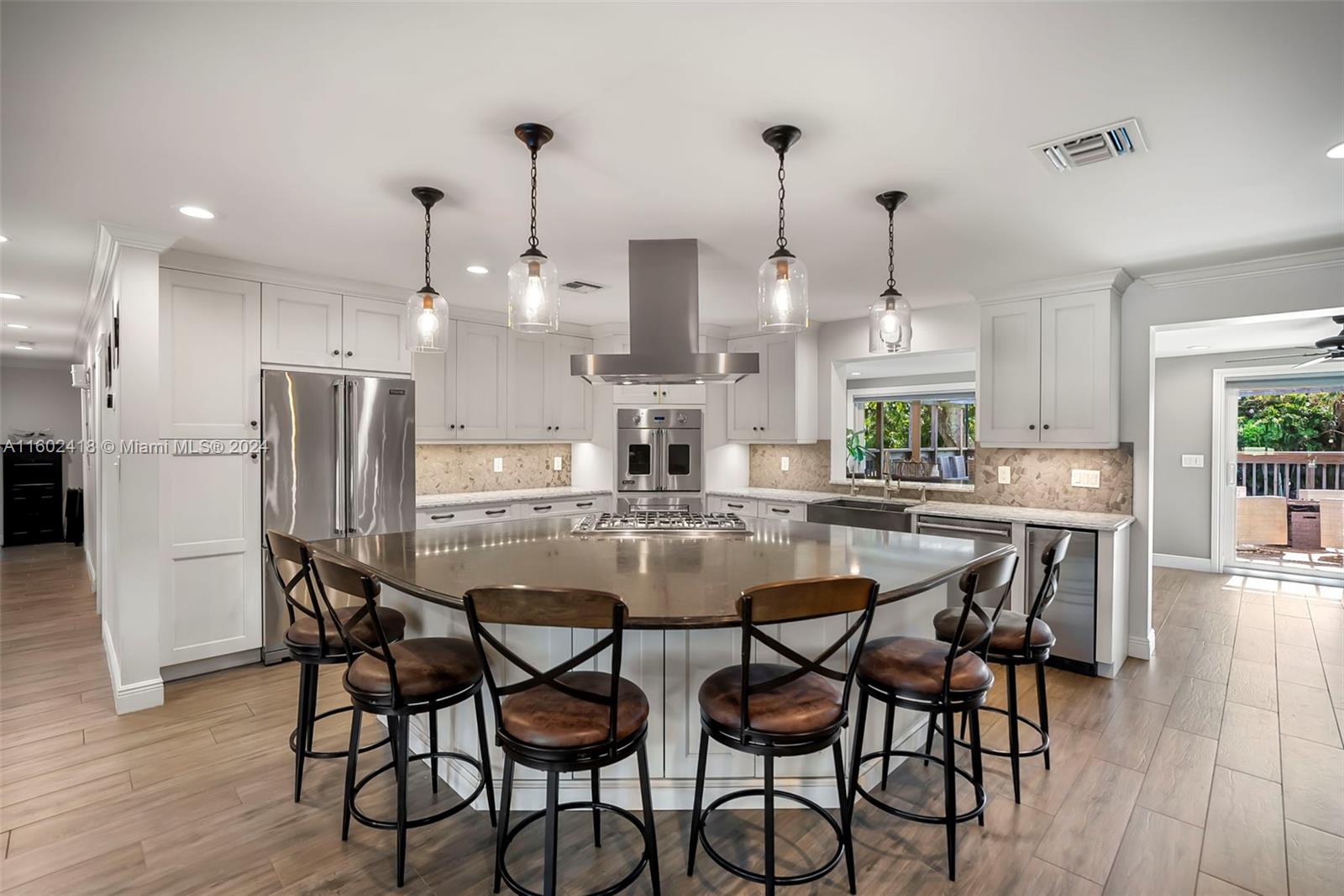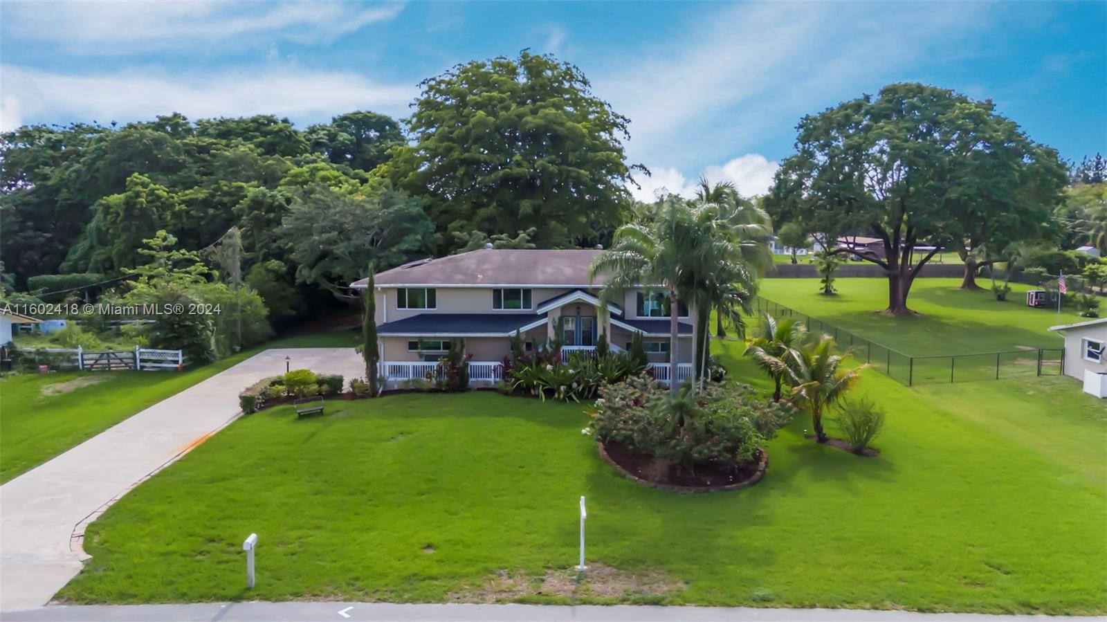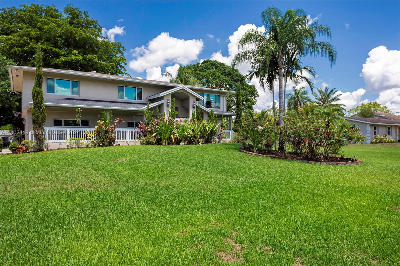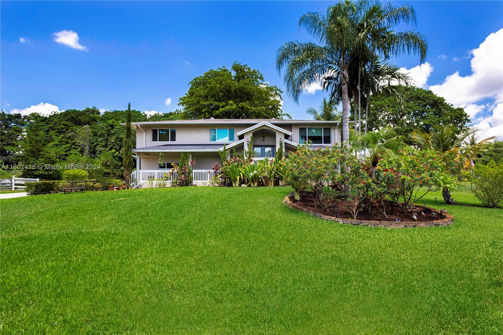 BRAND NEW ROOF COMING SOON!! Welcome to this stunning 5-bedroom, 3-bath home on FULL ACRE in Davie with No HOA! The main level includes a primary suite, 2 bedrooms, 2 baths, and an open-concept kitchen with quartz countertops, Viking appliances, and a wine bar. The lower level offers 2 bedrooms, 1 bath, a living room, game room, and storage. Features include new wood-look tile floors, all impact windows and doors, 2 new AC units, and new light fixtures and electric panels. The 1-acre lot boasts a fenced backyard, extended porch, rear patio, upper deck, 2 ½ car garage, concrete storage shed, and chicken coop. Modern amenities and fiber optic wiring throughout complete this serene home. Jacuzzi conveys!