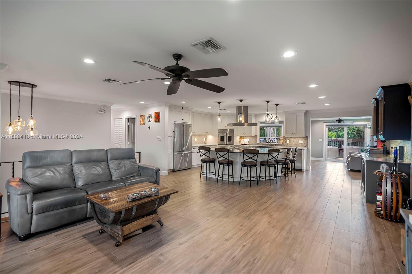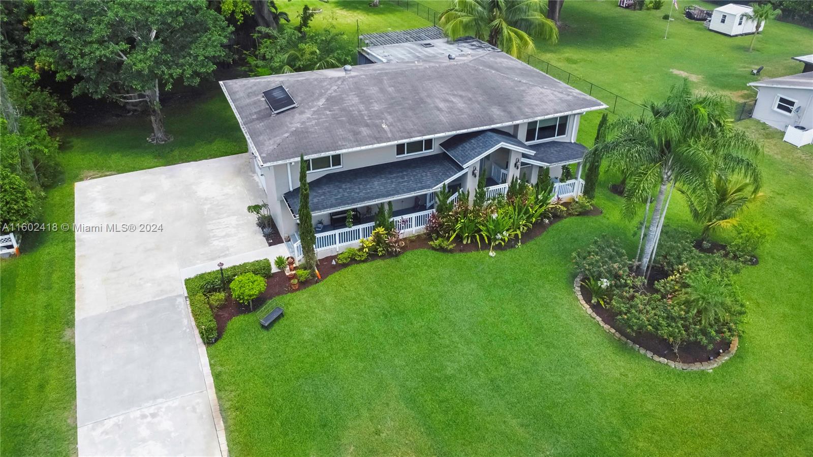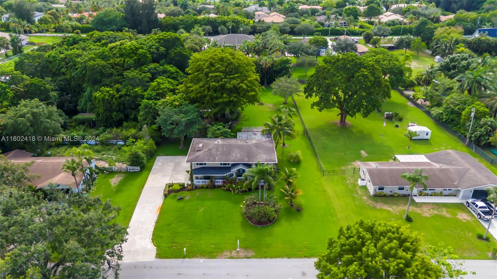 BRAND NEW ROOF COMING SOON!! Welcome to this stunning 5-bedroom, 3-bath home on FULL ACRE in Davie with No HOA! The main level includes a primary suite, 2 bedrooms, 2 baths, and an open-concept kitchen with quartz countertops, Viking appliances, and a wine bar. The lower level offers 2 bedrooms, 1 bath, a living room, game room, and storage. Features include new wood-look tile floors, all impact windows and doors, 2 new AC units, and new light fixtures and electric panels. The 1-acre lot boasts a fenced backyard, extended porch, rear patio, upper deck, 2 ½ car garage, concrete storage shed, and chicken coop. Modern amenities and fiber optic wiring throughout complete this serene home. Jacuzzi conveys!