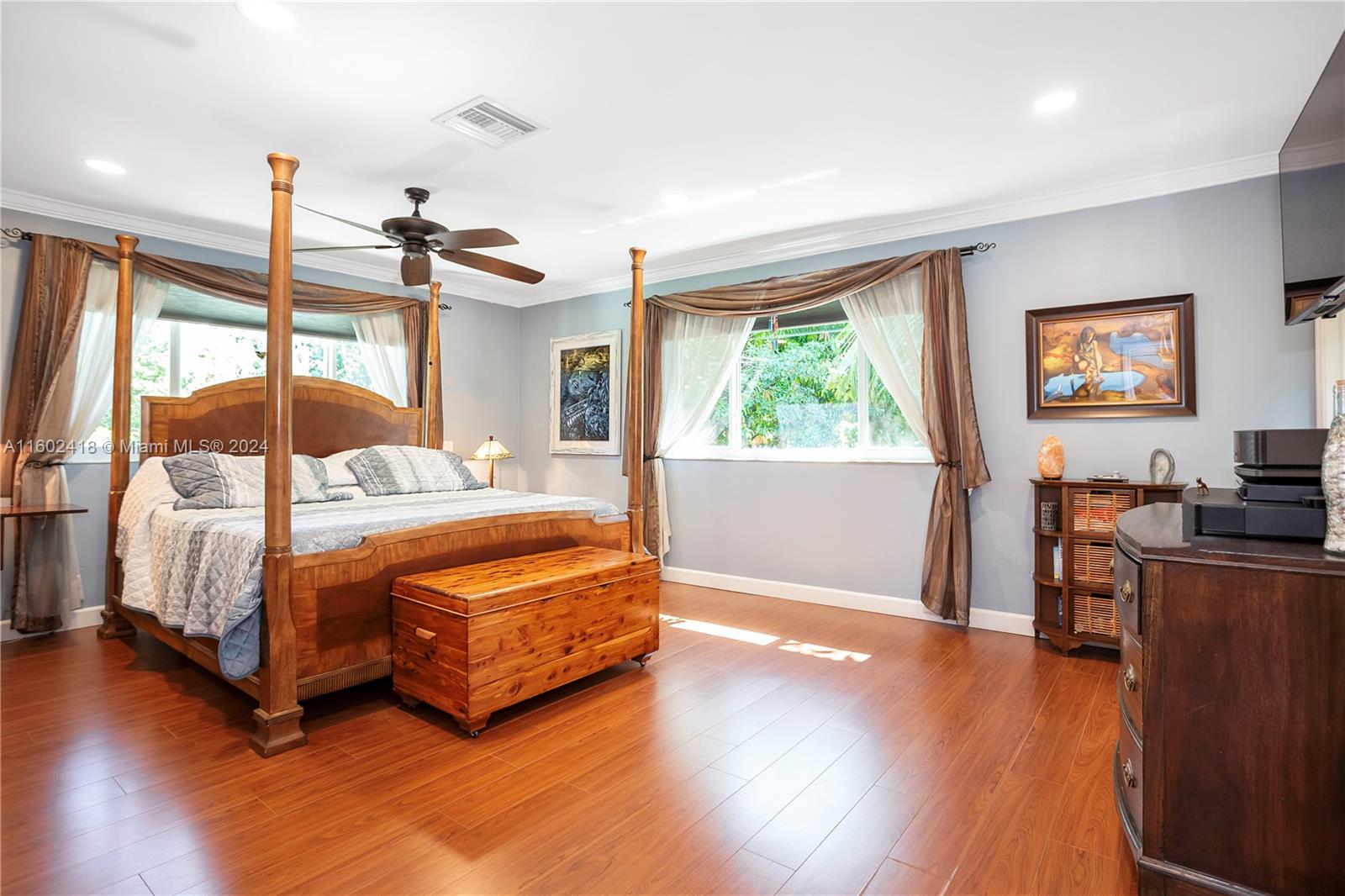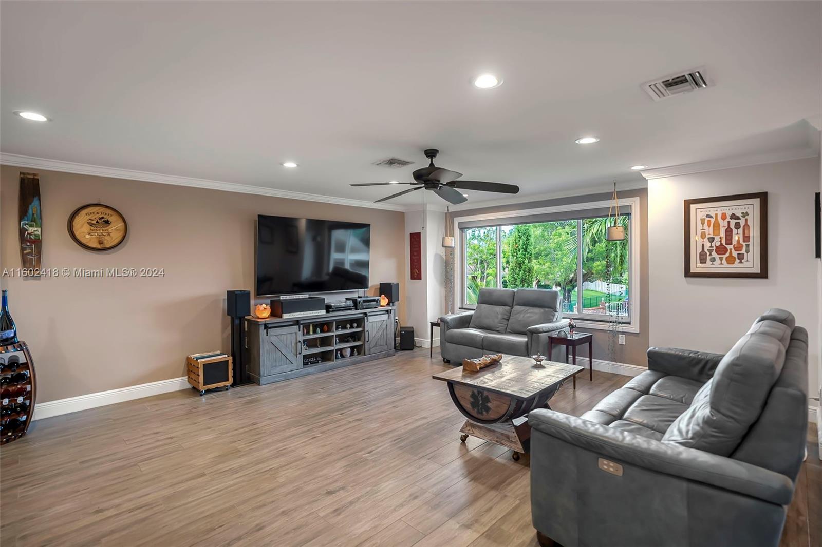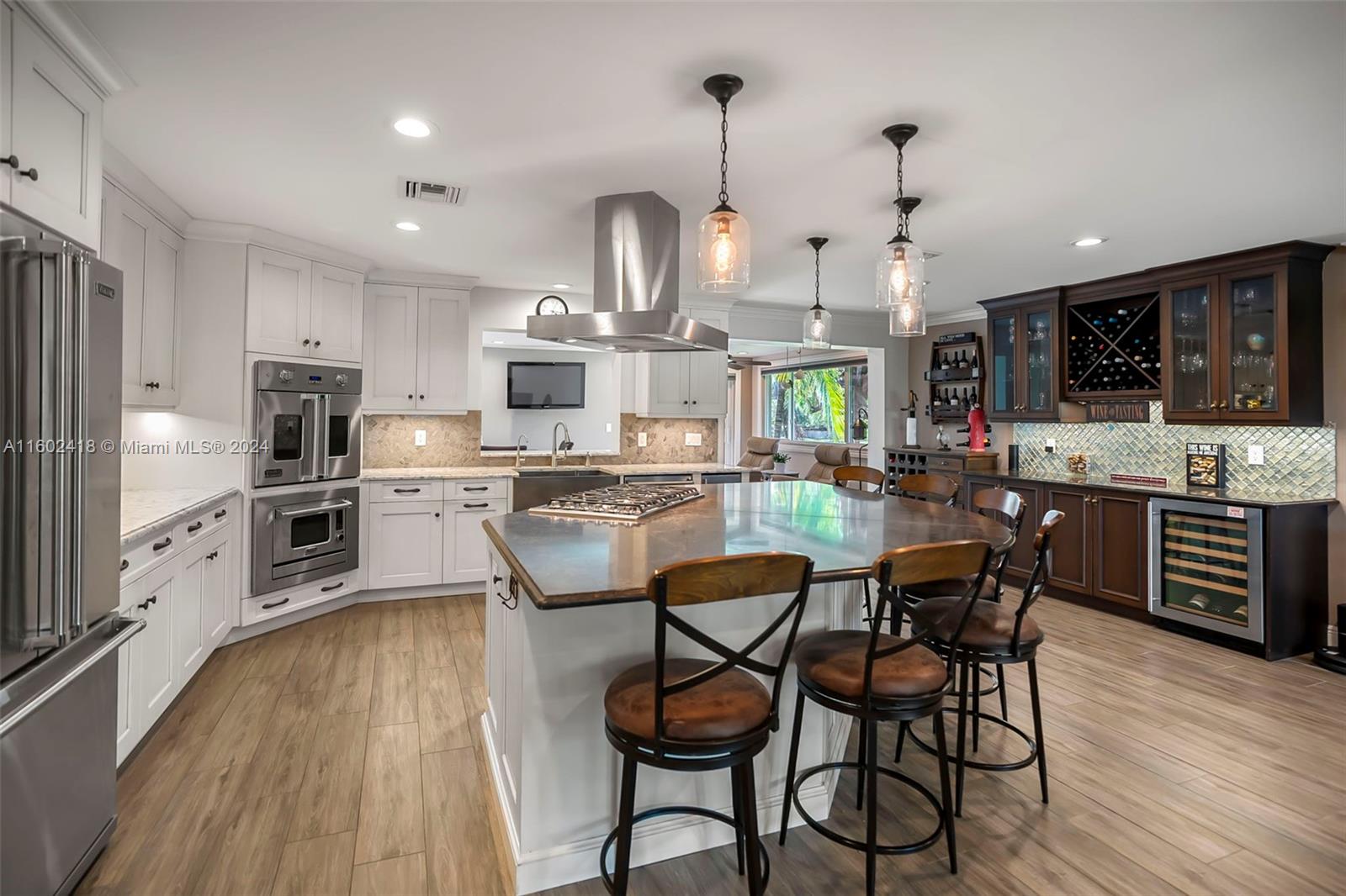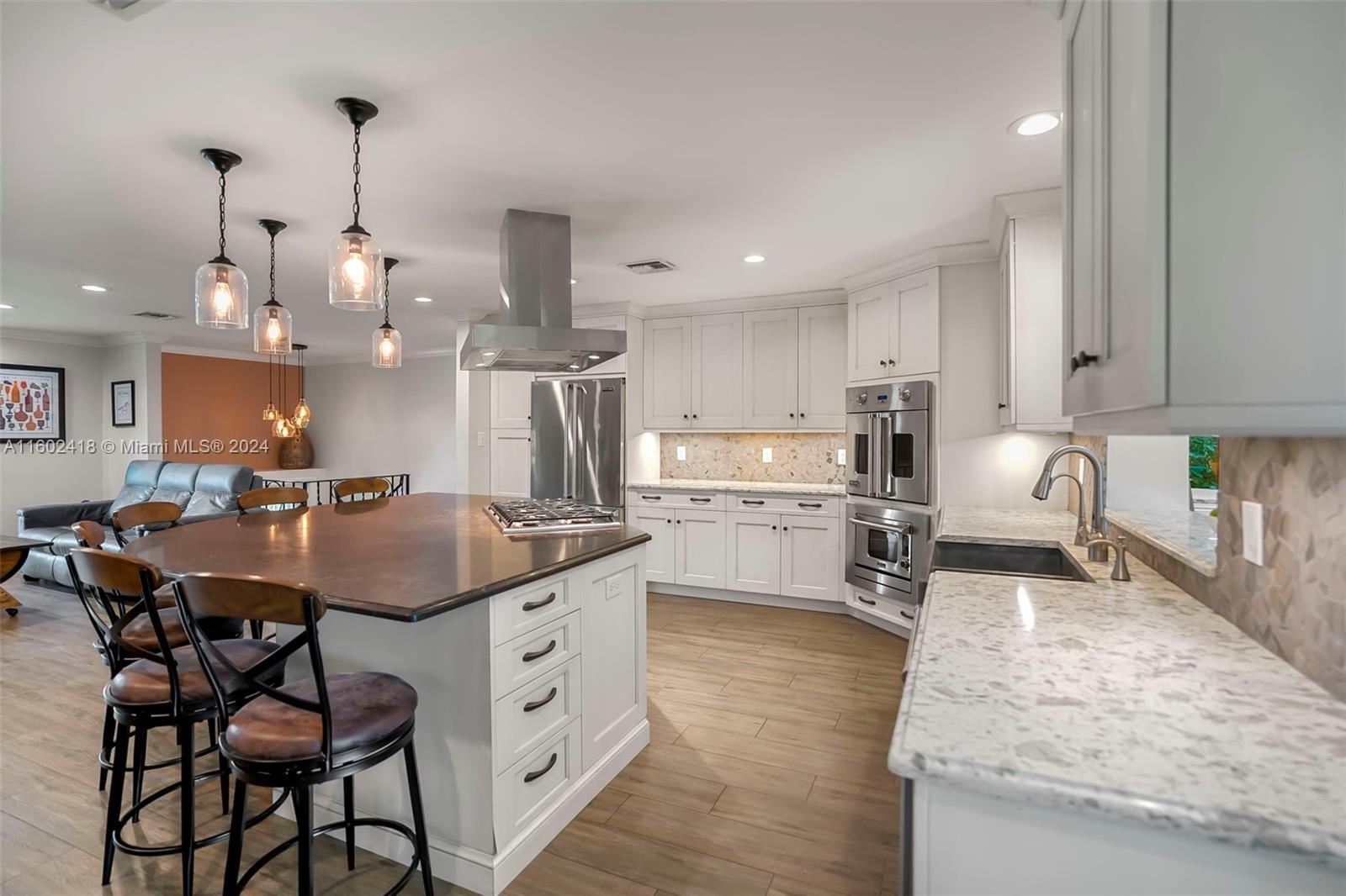 BRAND NEW ROOF COMING SOON!! Welcome to this stunning 5-bedroom, 3-bath home on FULL ACRE in Davie with No HOA! The main level includes a primary suite, 2 bedrooms, 2 baths, and an open-concept kitchen with quartz countertops, Viking appliances, and a wine bar. The lower level offers 2 bedrooms, 1 bath, a living room, game room, and storage. Features include new wood-look tile floors, all impact windows and doors, 2 new AC units, and new light fixtures and electric panels. The 1-acre lot boasts a fenced backyard, extended porch, rear patio, upper deck, 2 ½ car garage, concrete storage shed, and chicken coop. Modern amenities and fiber optic wiring throughout complete this serene home. Jacuzzi conveys!