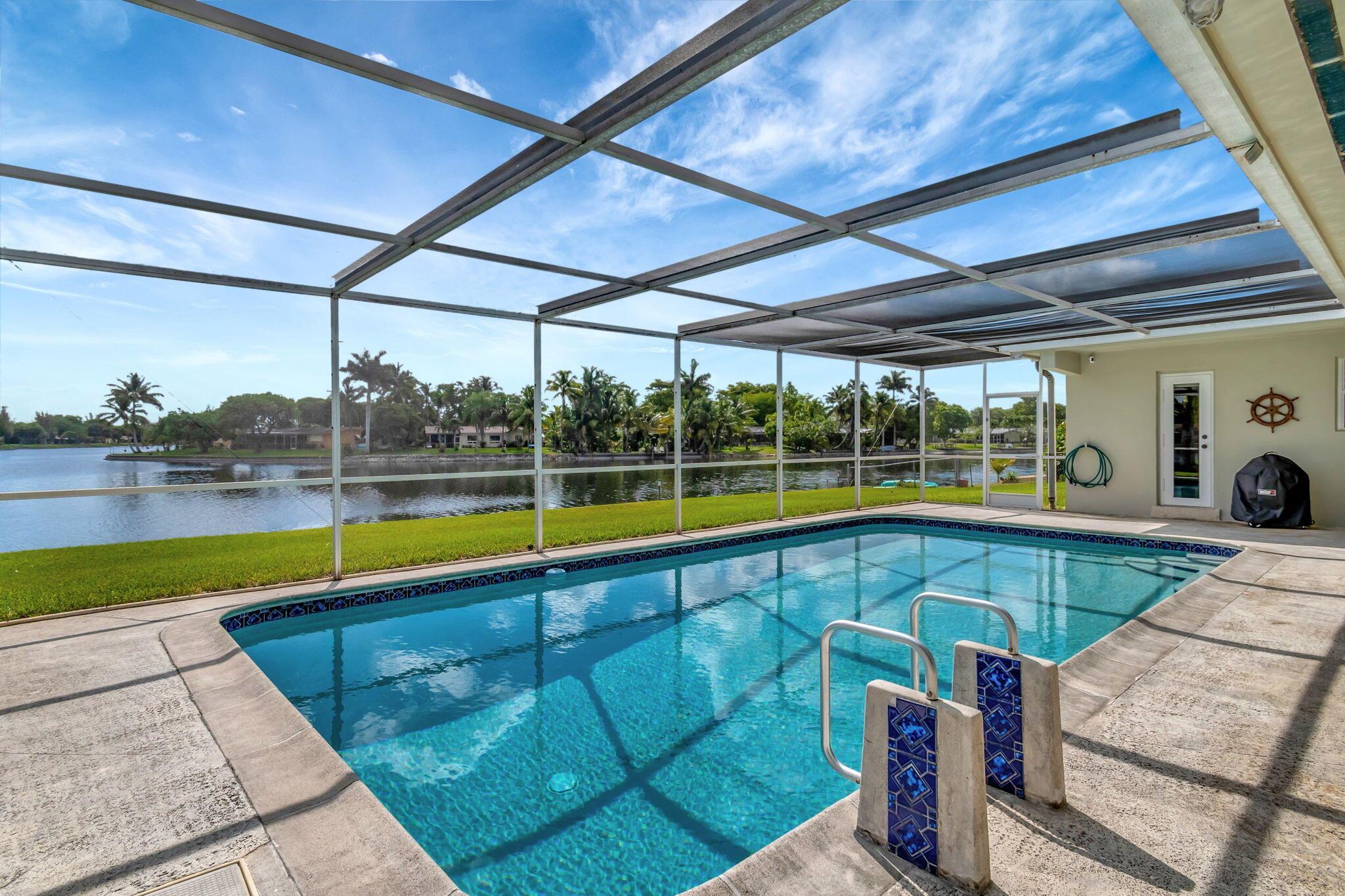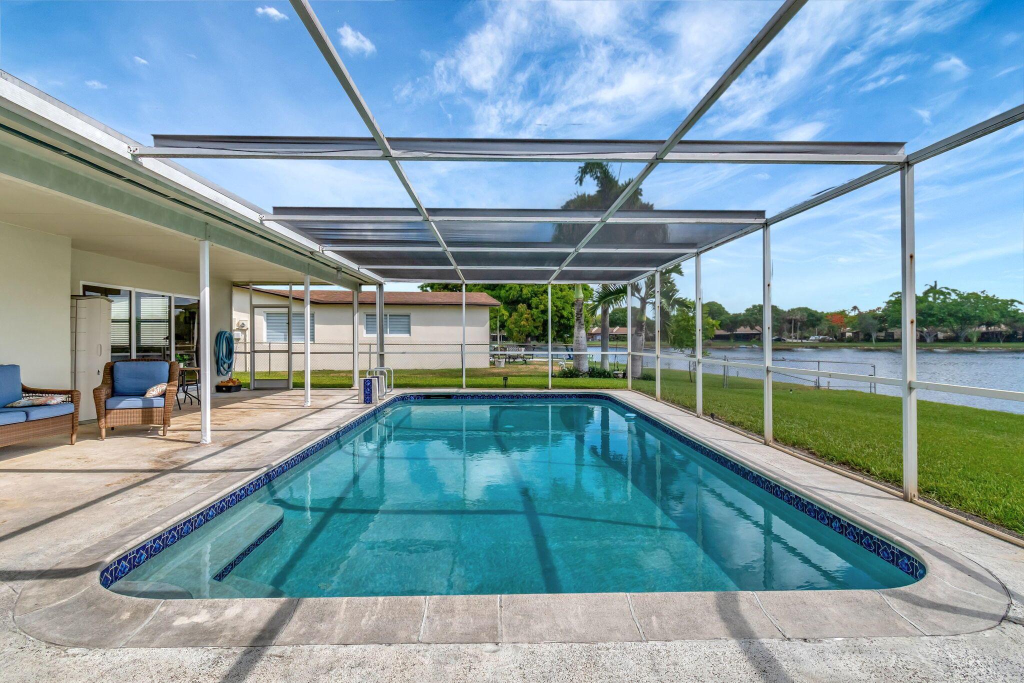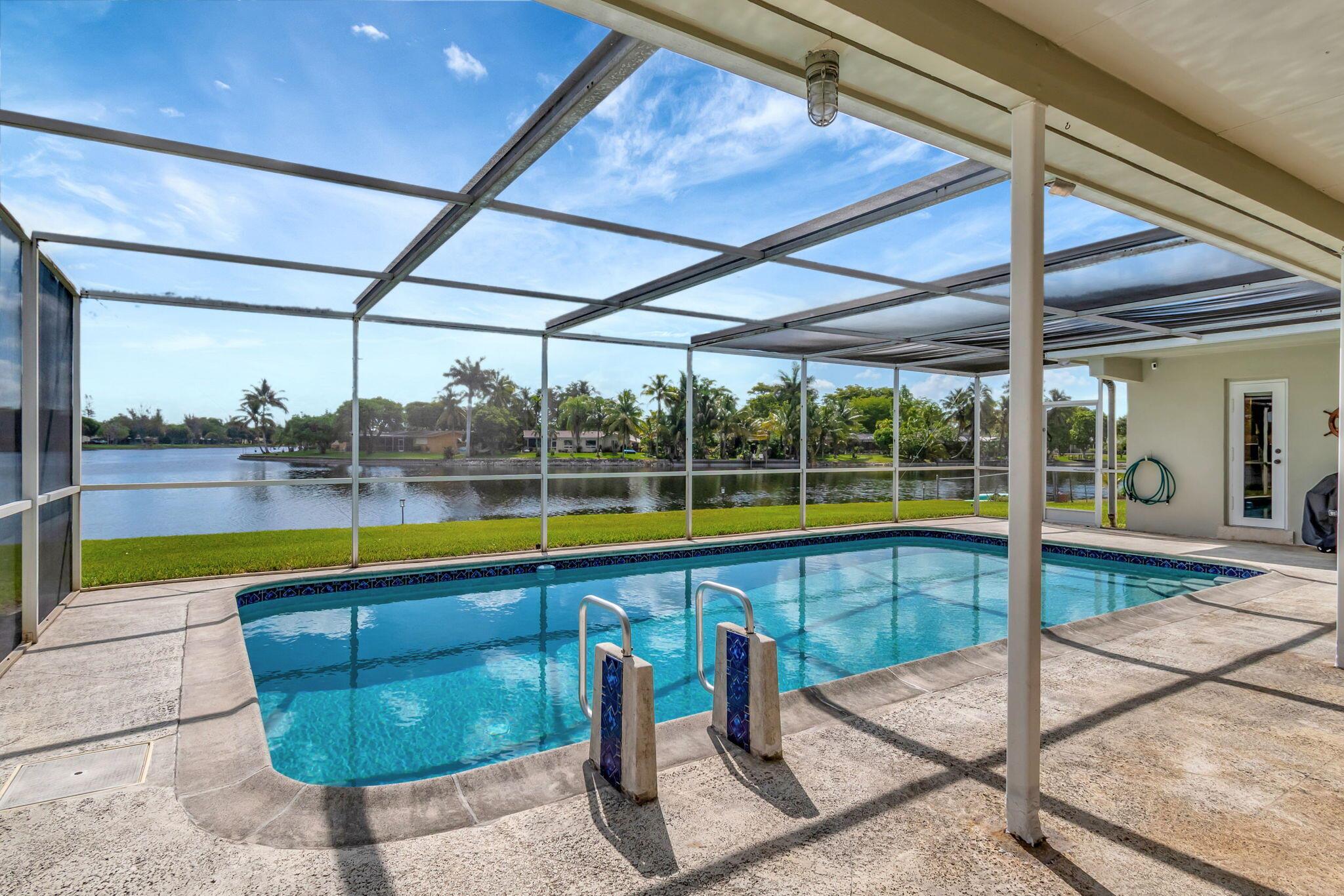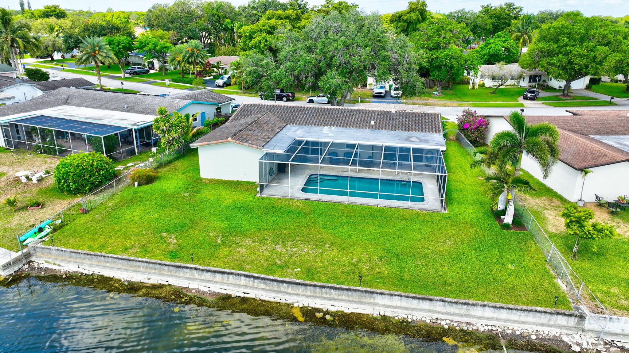 Experience comfort in this stunning and meticulously maintained 3-bedroom, 3-bathroom lakefront home, with an option for a fourth bedroom. No HOA. Watch stunning sunrises over the lake from your large screened-in pool deck, providing the best views in the neighborhood. Hurricane impact windows for added security. Spacious kitchen featuring granite counter-tops, stainless steel appliances, and a cozy breakfast nook. Beautiful wood and tile flooring throughout most of the home. The over-sized two car garage provides ample storage. Large fenced-in yard is perfect for outdoor activities. Conveniently located close to highways, restaurants, and shopping. This one-of-a-kind home offers the perfect blend of tranquility and convenience. Schedule a showing today and make this dream home yours!