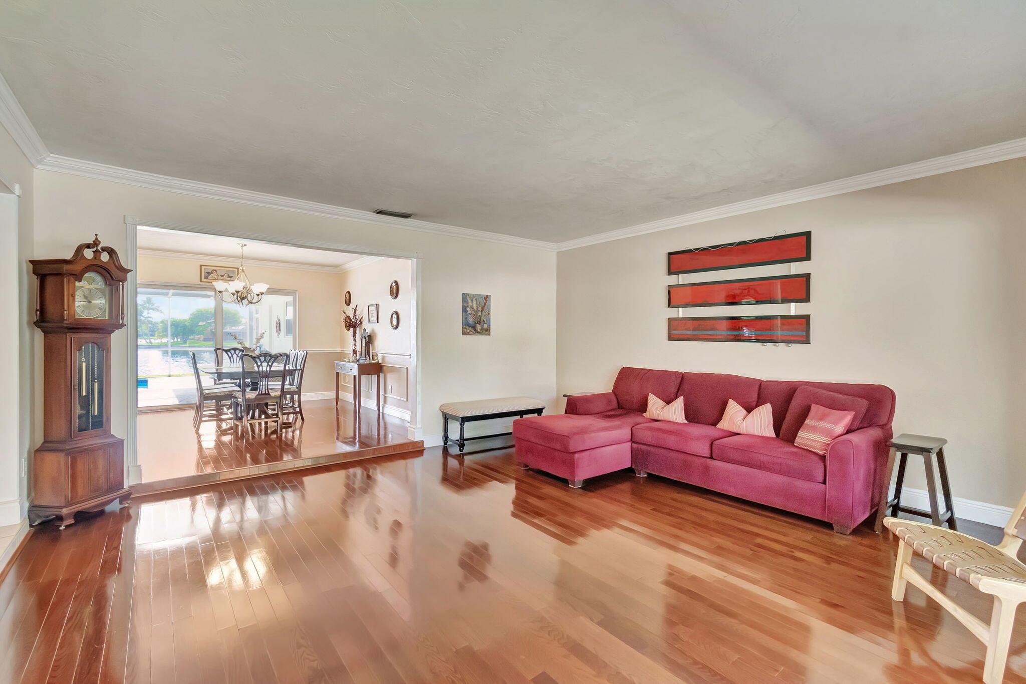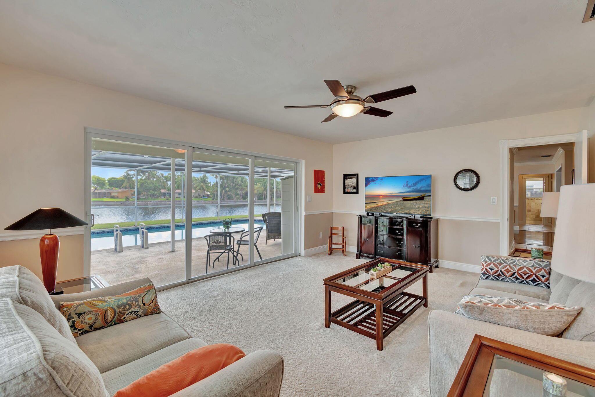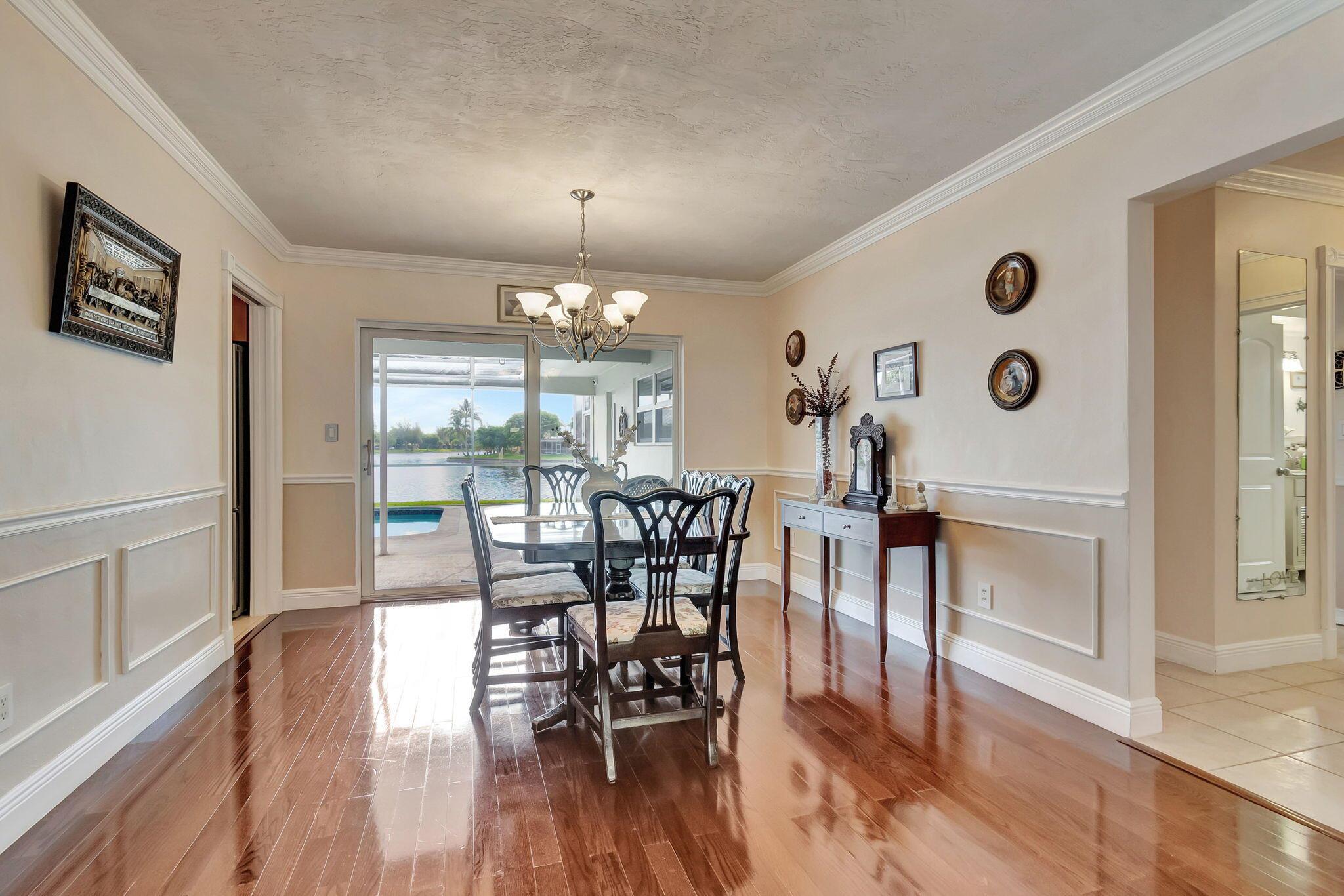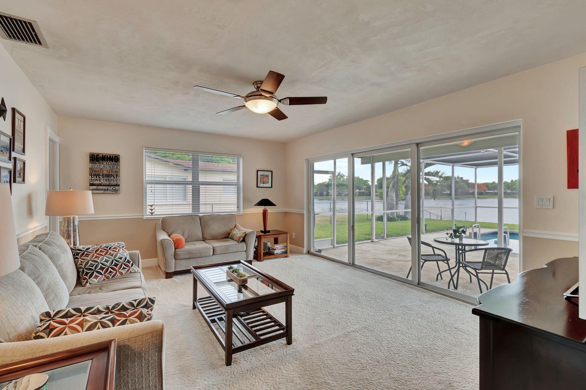 Experience comfort in this stunning and meticulously maintained 3-bedroom, 3-bathroom lakefront home, with an option for a fourth bedroom. No HOA. Watch stunning sunrises over the lake from your large screened-in pool deck, providing the best views in the neighborhood. Hurricane impact windows for added security. Spacious kitchen featuring granite counter-tops, stainless steel appliances, and a cozy breakfast nook. Beautiful wood and tile flooring throughout most of the home. The over-sized two car garage provides ample storage. Large fenced-in yard is perfect for outdoor activities. Conveniently located close to highways, restaurants, and shopping. This one-of-a-kind home offers the perfect blend of tranquility and convenience. Schedule a showing today and make this dream home yours!