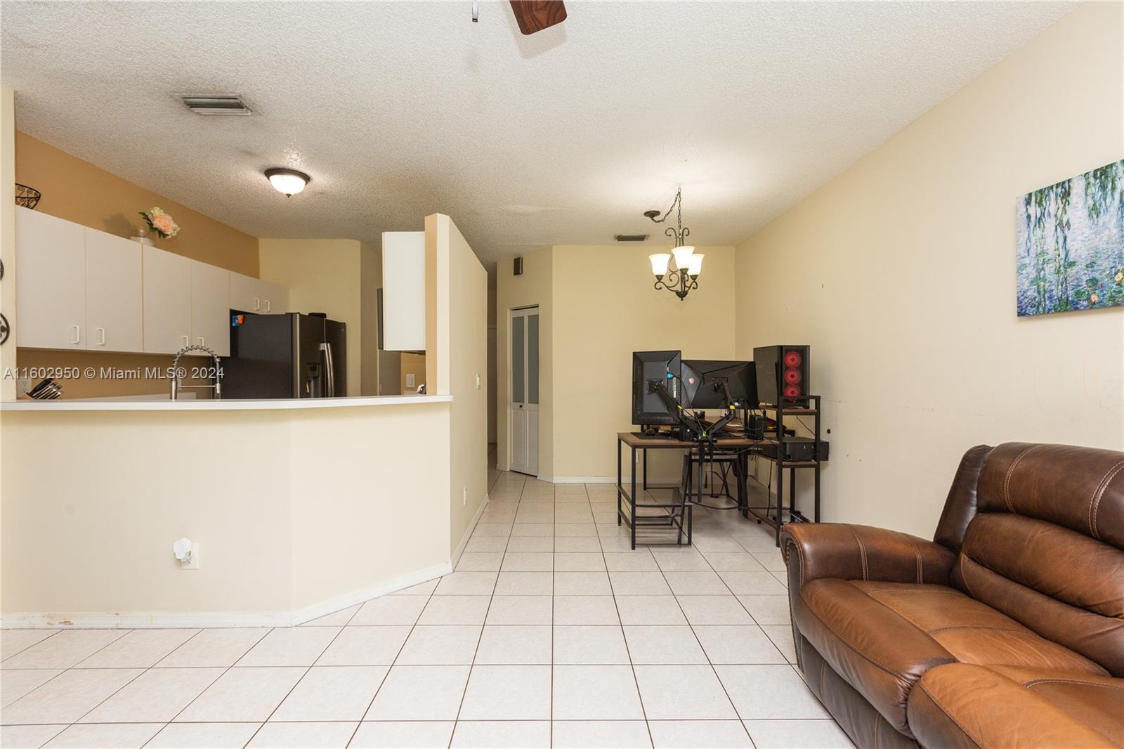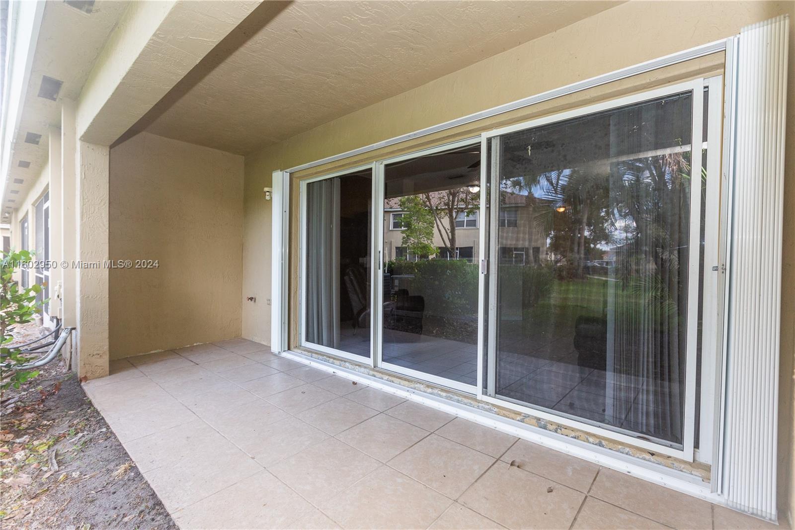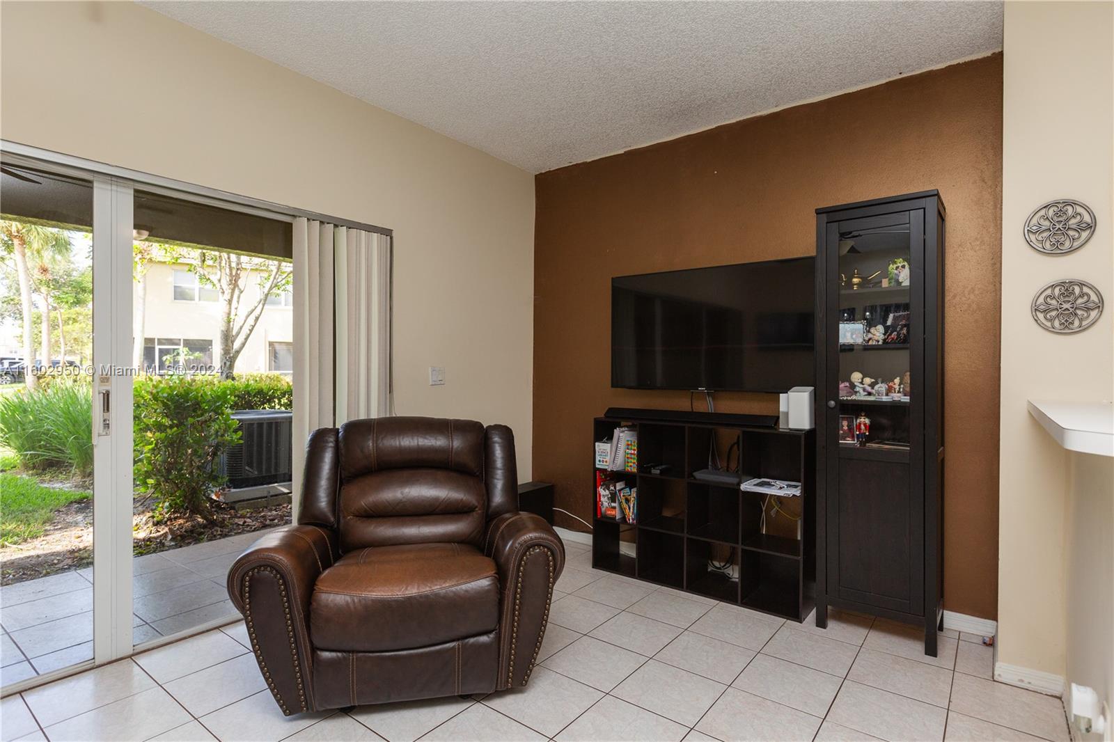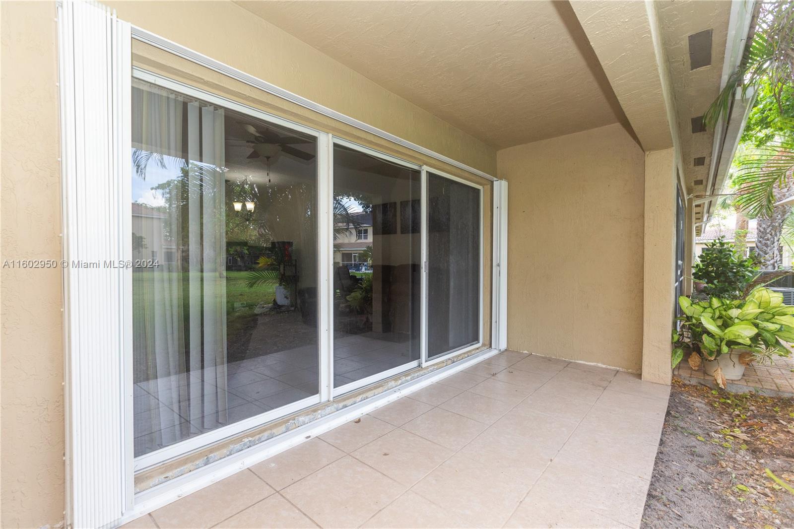 This home features an open floor plan living dining area. This home features a patio overlooking open garden spaces. The interior tile throughout the living area and laminate wood upstairs. Both bedrooms feature large walk-in closets. The home has shutters and also features a new AC unit . The community features a clubhouse area and is located near multiple restaurants and shopping centers. Do not miss the opportunity to own this amazing property. 2 parking spaces, garage and open yard space .