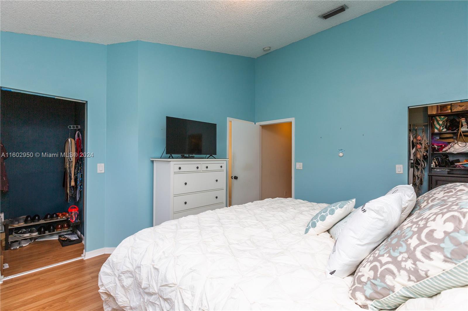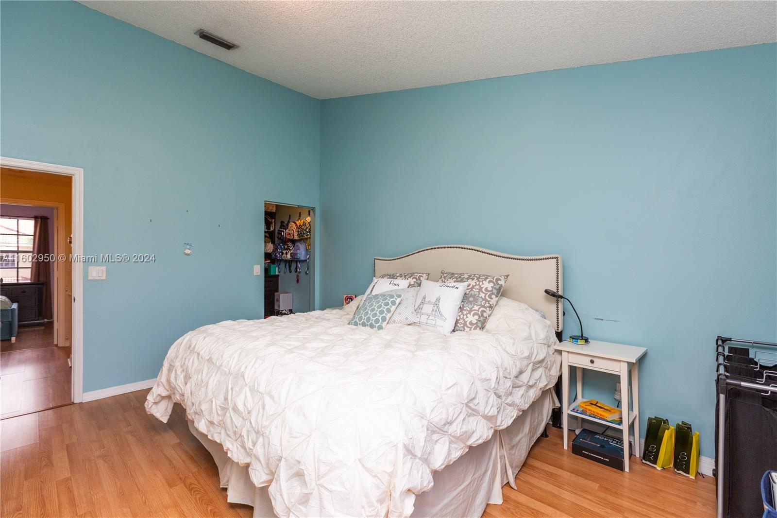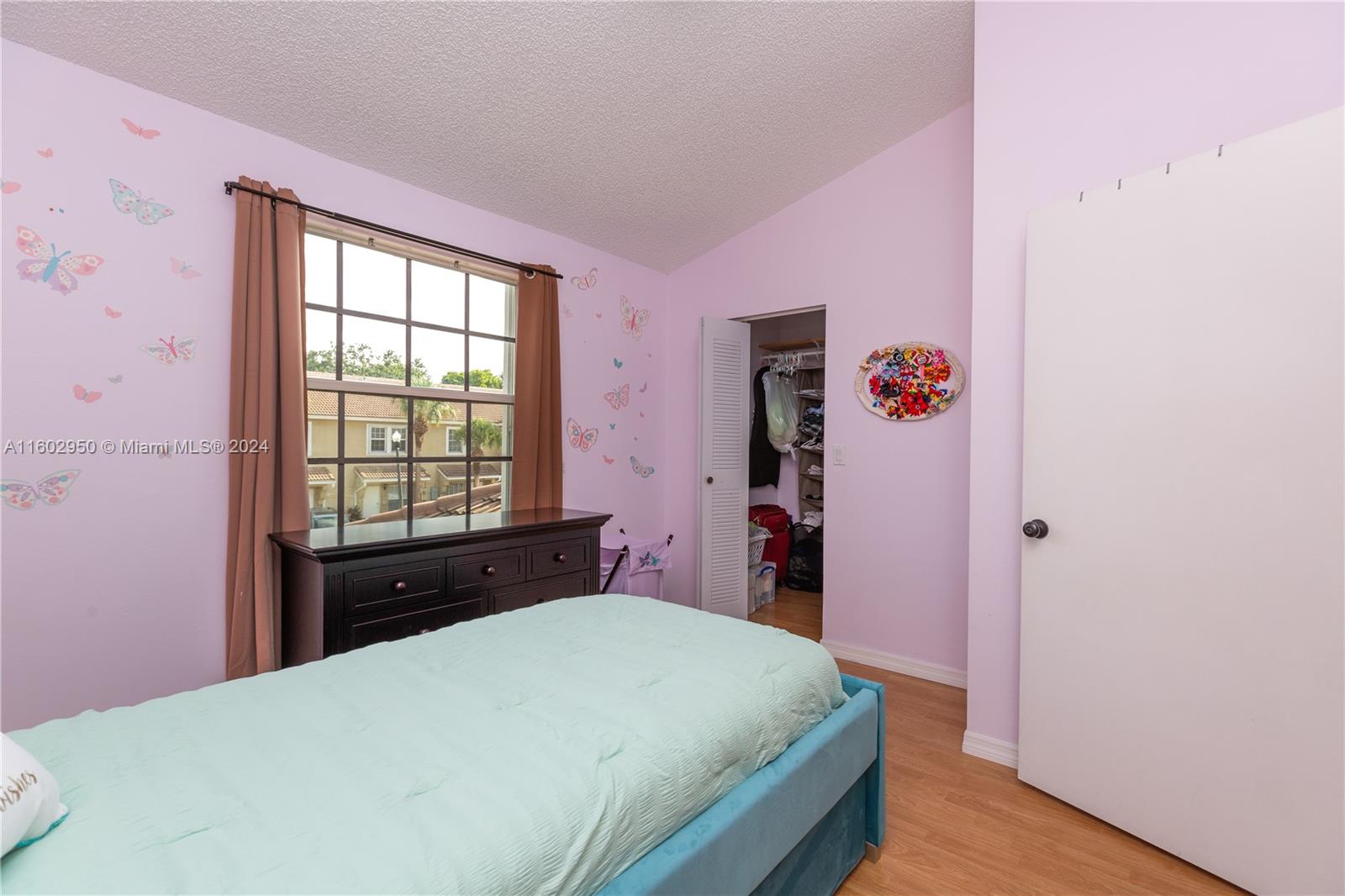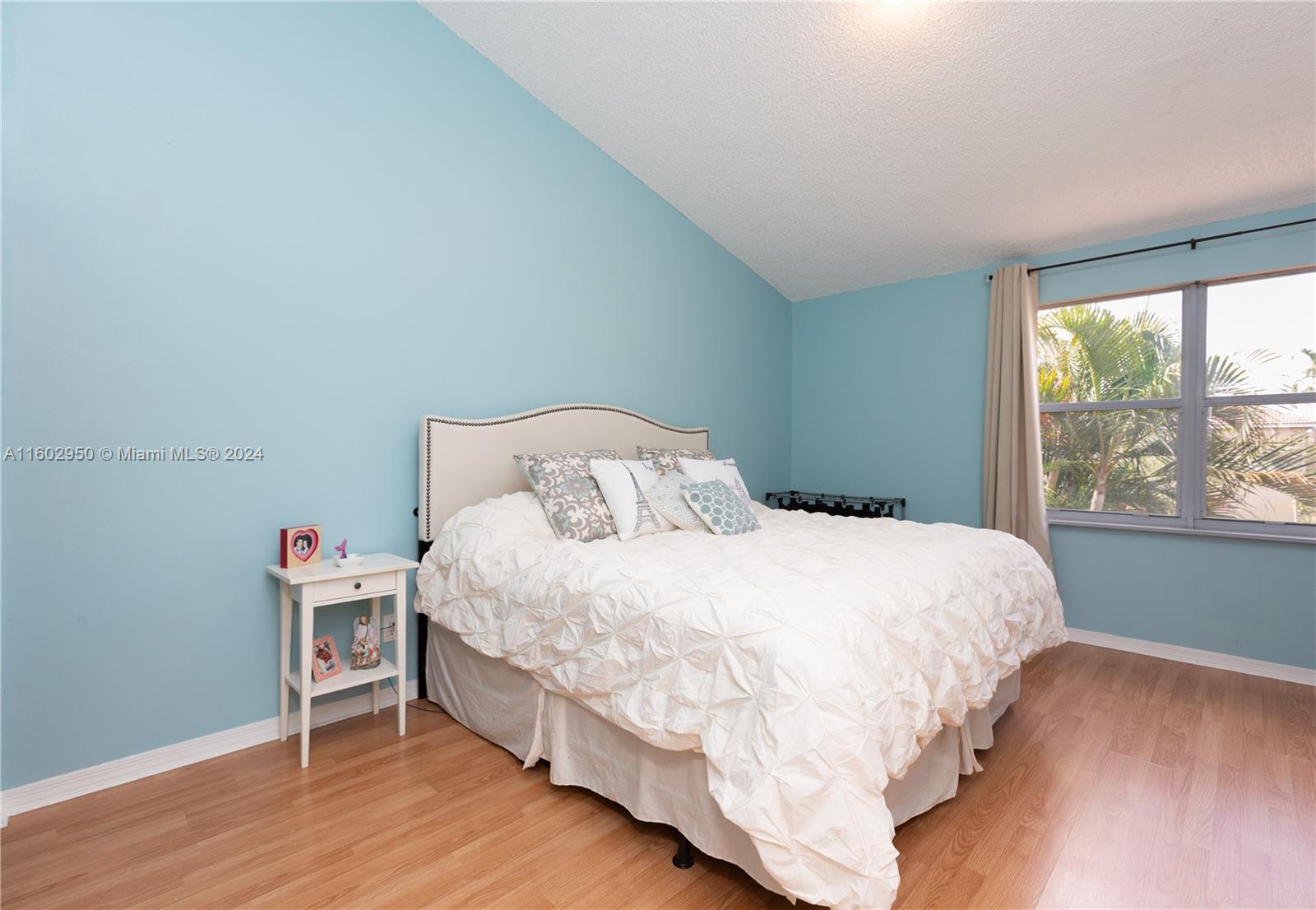 This home features an open floor plan living dining area. This home features a patio overlooking open garden spaces. The interior tile throughout the living area and laminate wood upstairs. Both bedrooms feature large walk-in closets. The home has shutters and also features a new AC unit . The community features a clubhouse area and is located near multiple restaurants and shopping centers. Do not miss the opportunity to own this amazing property. 2 parking spaces, garage and open yard space .
