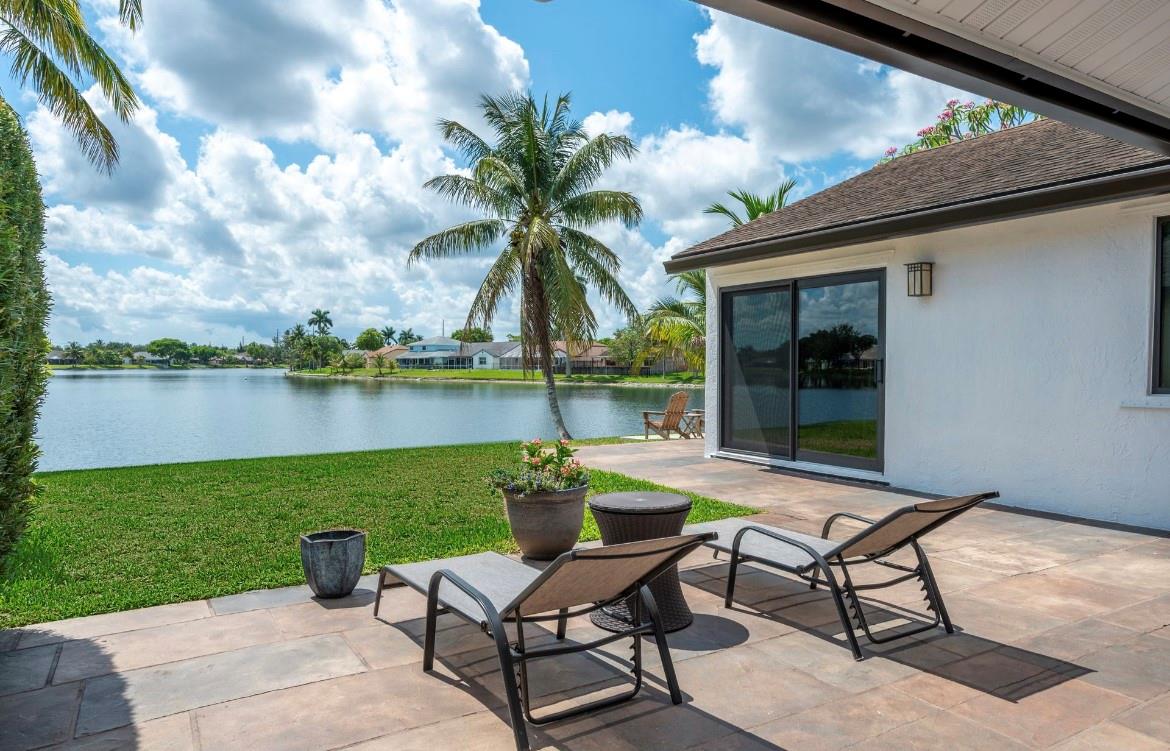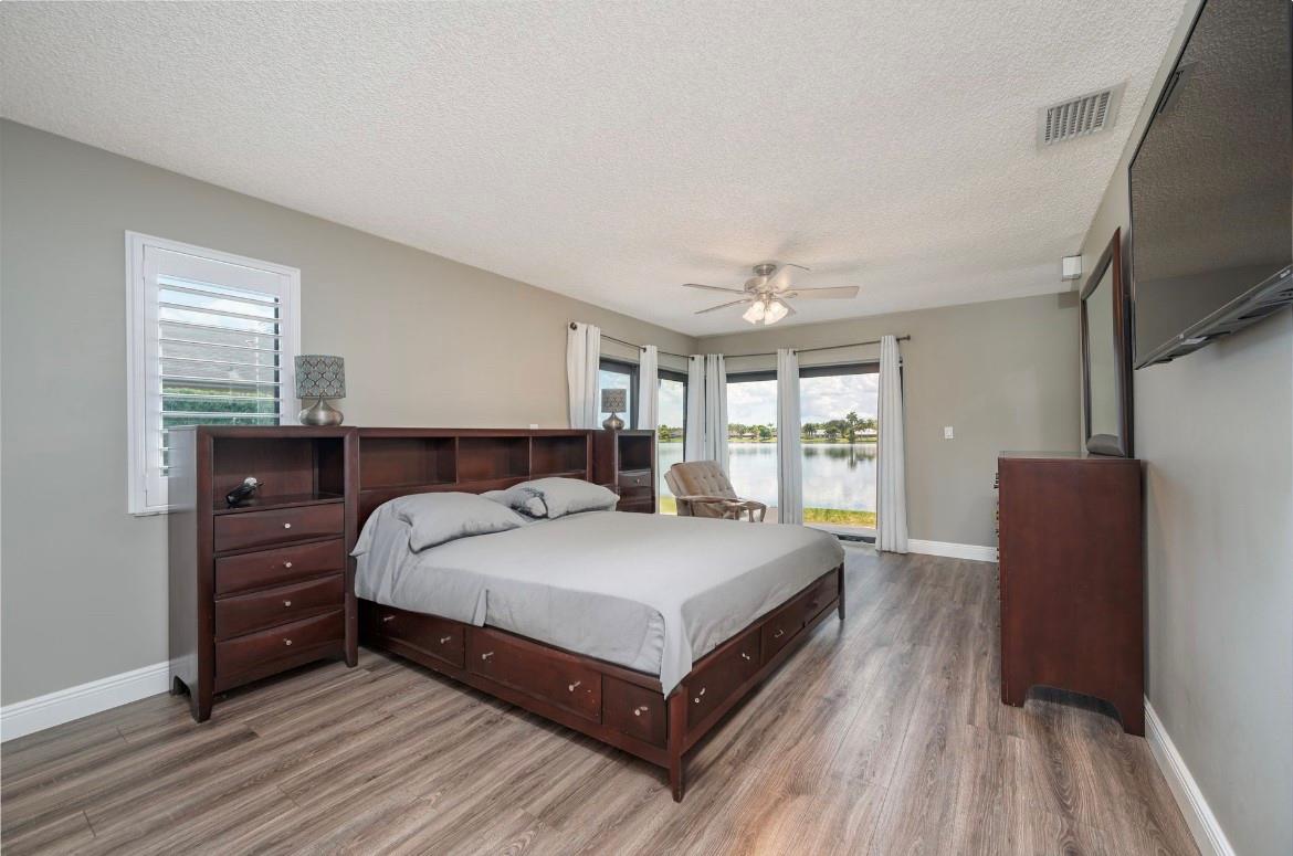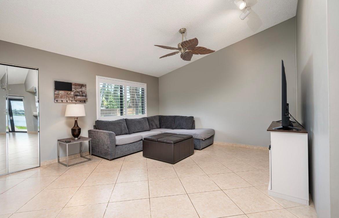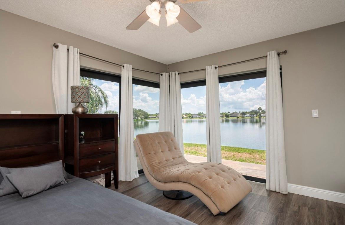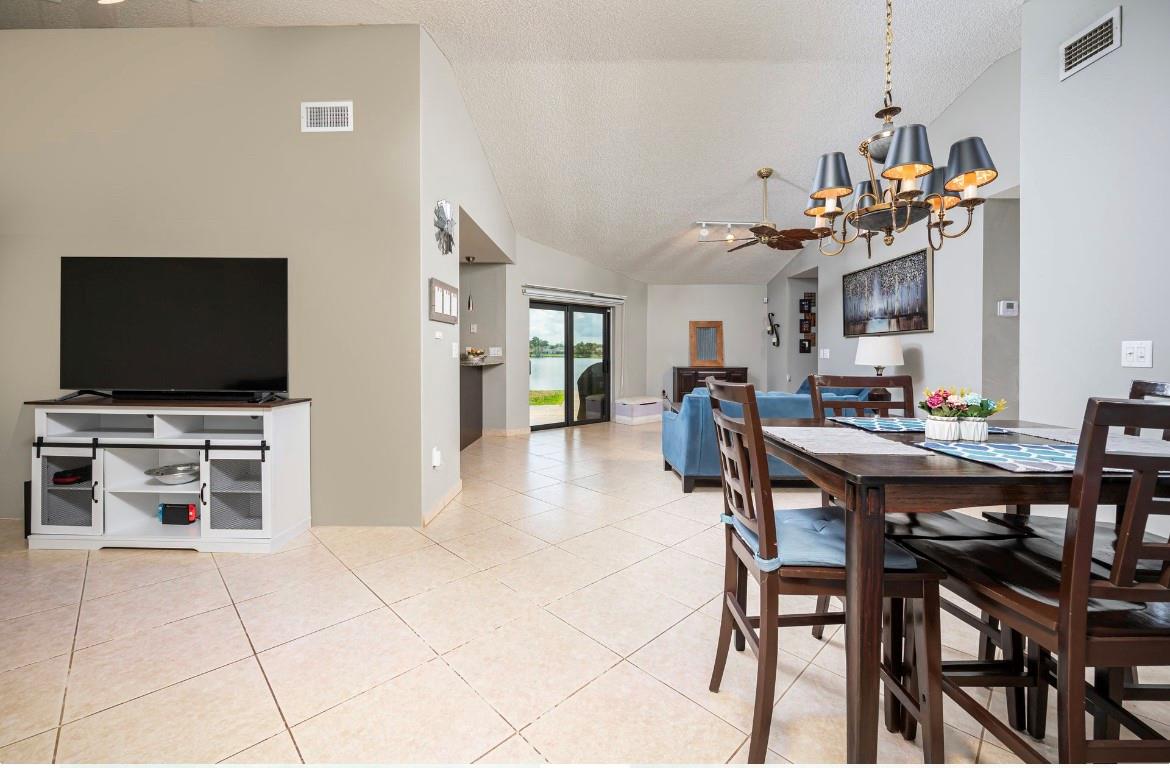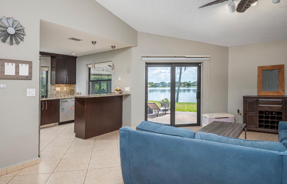 Breathtaking Waterfront views from this 3/2 single family home with a 2 car garage. High End Impact glass on every window and sliding door. Home recently painted exterior. Master Bedrooms is huge with sitting area and views of the water. Master Closet has plenty of room as well. Kitchen updated. Floors are large neutral tile throughout main living area. New Luxury Vinyl in bedrooms. Vaulted ceilings. Low low low Association dues at only $375 for the year! Roof 2005 and Ac 2011. Backyard has a ton of yard space which can be fenced. Nice sized covered patio overlooking longest part of the lake makes for great gatherings and BBQ's. Great schools and Parks close by. Shopping, Movies, Restaurants all around the corner.