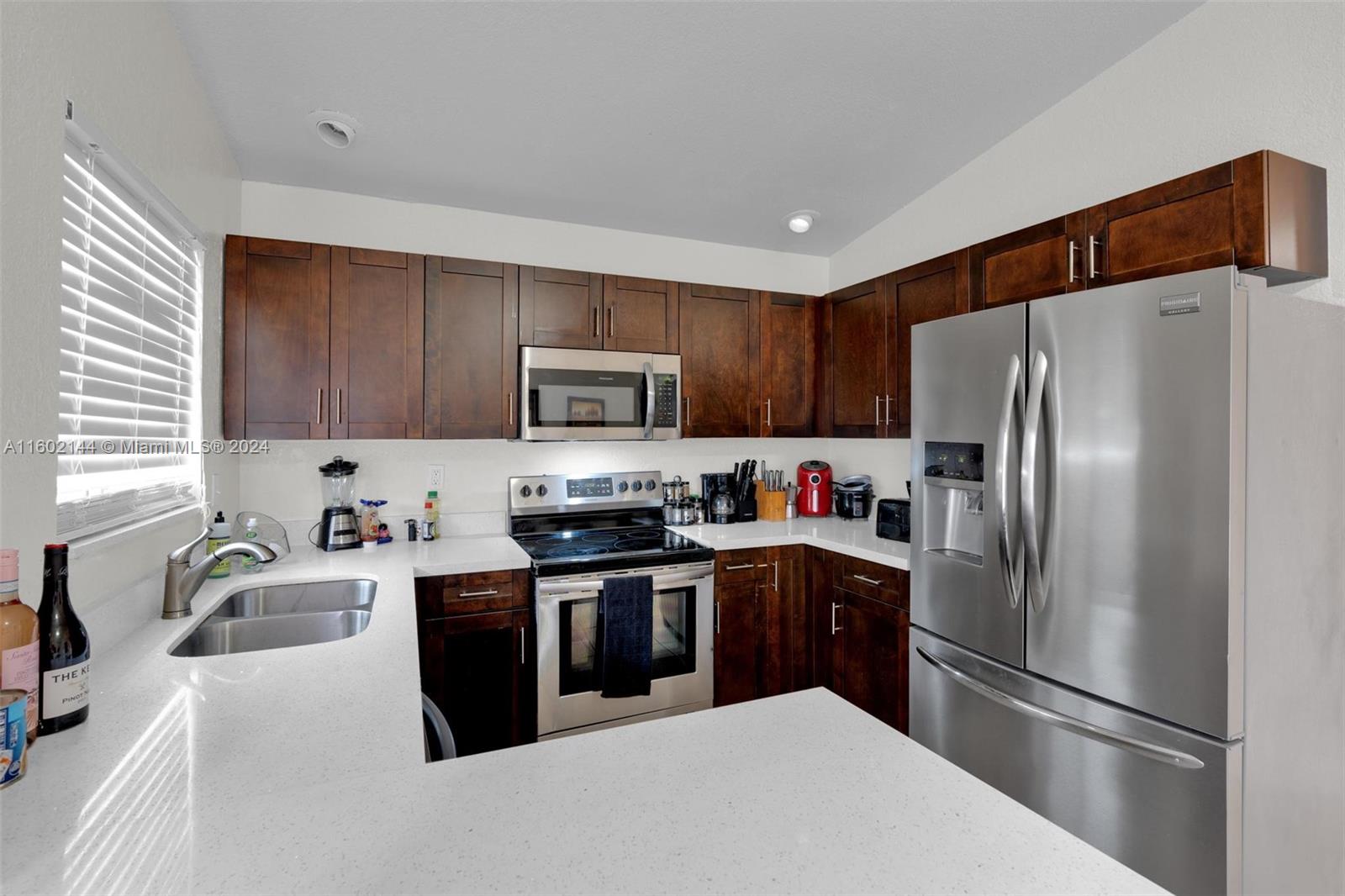 Corner lot 3 bedroom,2 bathroom home in the lovely Meadows of Miramar. The open floor plan living area is filled with natural light, creating a warm and inviting atmosphere.Tile floors throughout, spacious family area, updated kitchen with stainless steel appliances, wood cabinets and Quartz Countertop. The beautiful bedrooms and bathrooms feature modern finishes, including a walk-in shower. Additional highlights include a 1-car garage and a fenced backyard for privacy. The community offers fantastic amenities such as a pool, clubhouse, and tennis court. Plus, it's conveniently close to major highways, shopping, and entertainment. Don’t miss out on this incredible opportunity—schedule your viewing today!