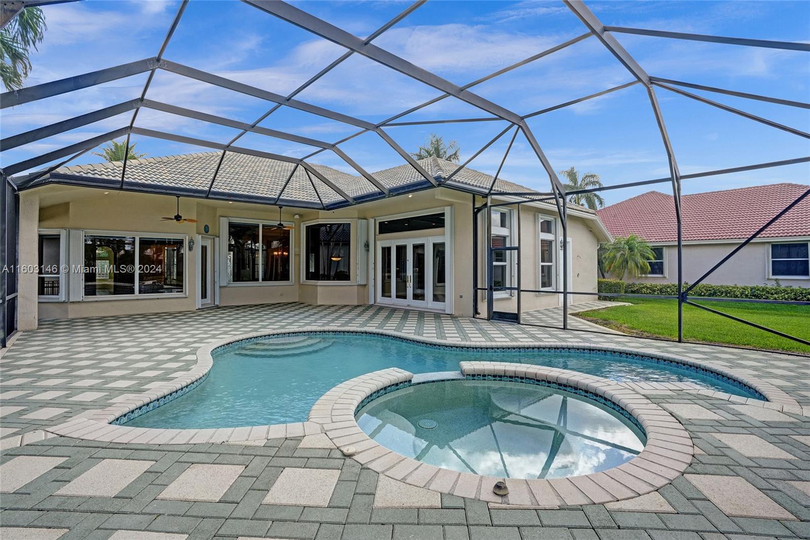 Pristine Pool Home on wide 15,800 SF waterfront, Cul du Sac lot in upscale Heron Bay's Waterford Estates. One-Story 4 Beds, 3.5 Bath Waterfront Pool Home w/3-Car Garage. Screened-In Patio w/Updated Heated Pool & Spa Recently Diamond brited, Take In The Sunsets with a private fire pit sitting area ! Popular Tri-Split Floor Plan Perfect For A Family! Soaring 12 Foot Ceilings, Accordion Hurricane Shutters, Heartbeat Of The Home's Kitchen w/Granite Counters & Stainless Steel Appliances Formal Dining Area, Jack & Jill Beds & Bath with a Separate On-Suite Bed & Bath Great For Older Child Or In-Law's, Primary Suite w/Sitting Area & Walk-In California Closets, Low HOA Dues Includes Resort-Style Amenities, 2 Clubhouses, Tennis, Fitness Center, A+ Schools, 24-Hour Guard Gated, & Much More!