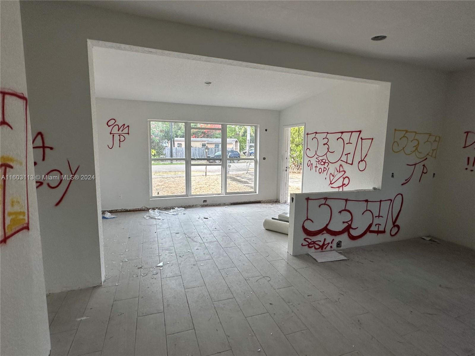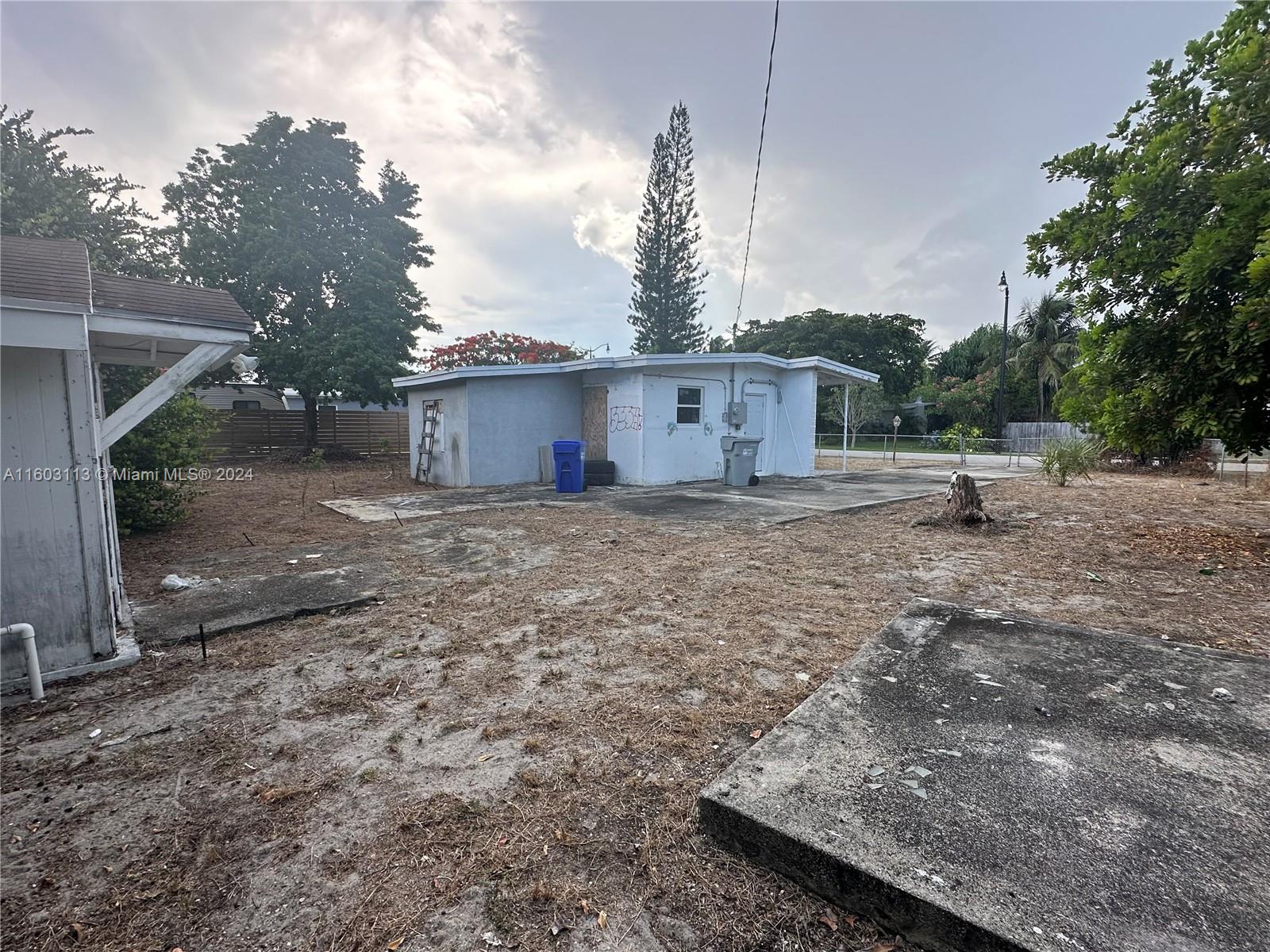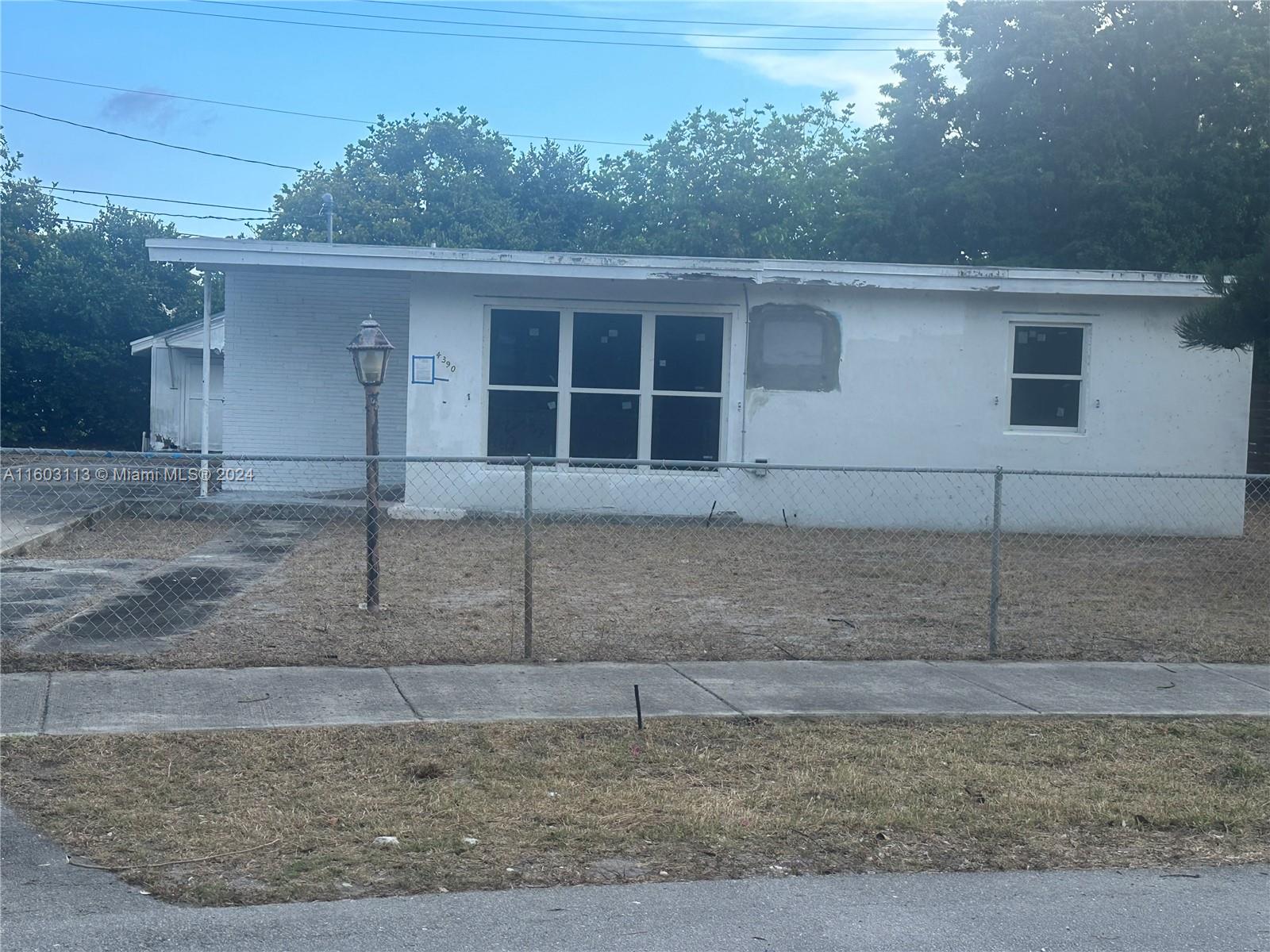 Three Bedrooms, One Bathroom, huge lot, potential could split into two lots, seller had pulled permits and hired GC, unfortunately, seller passed away and permits and work stopped. The city of Pompano Beach has the permits on hold. All violations have been paid, the home was gutted, all the rough work has been done, new electrical plan and wiring, plumbing, framing, drywall, flooring, impact window. we are estimating 25k to finish. Easy to show.