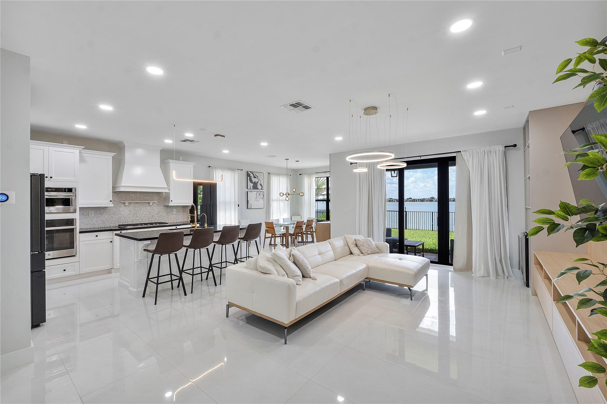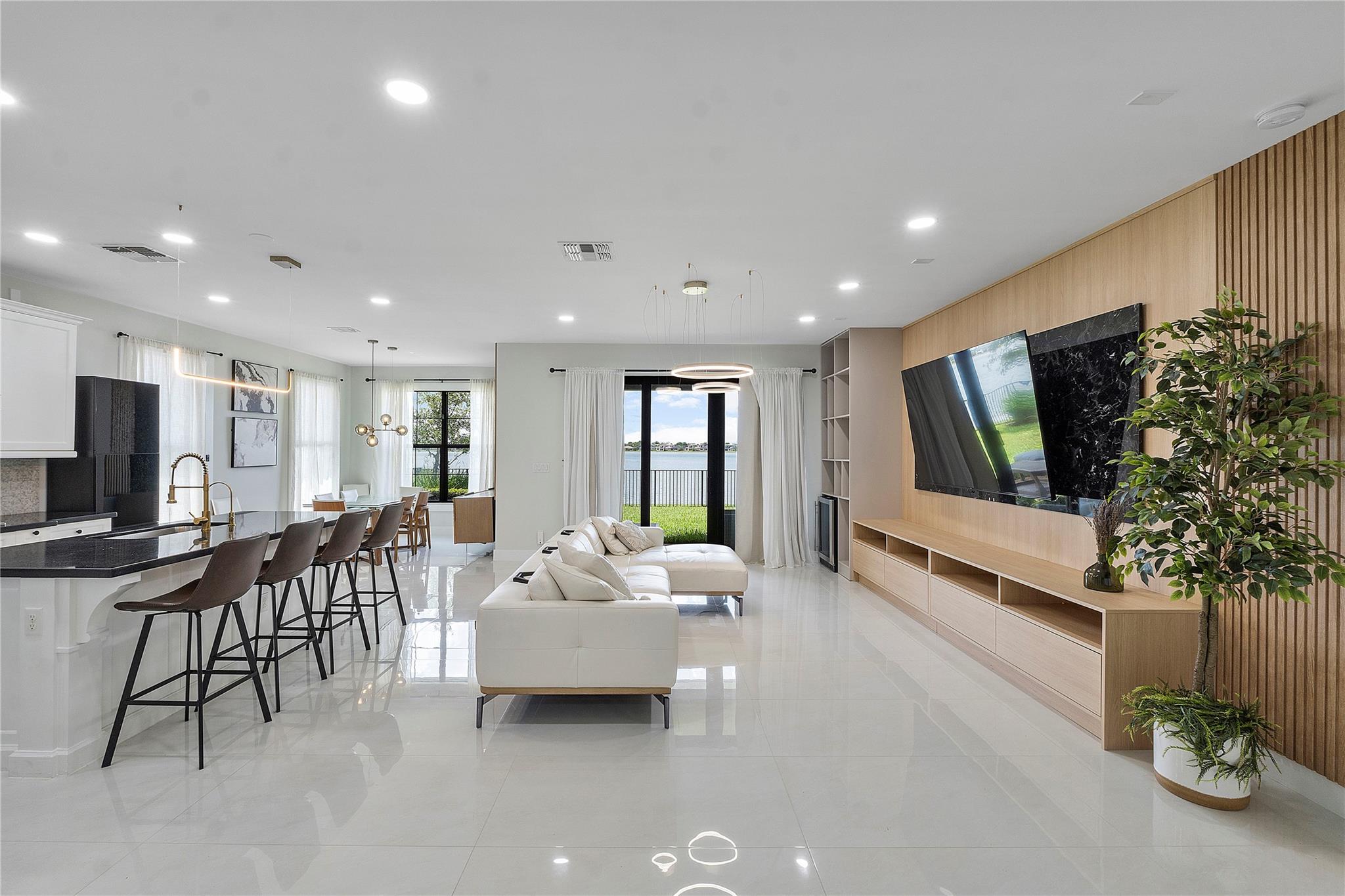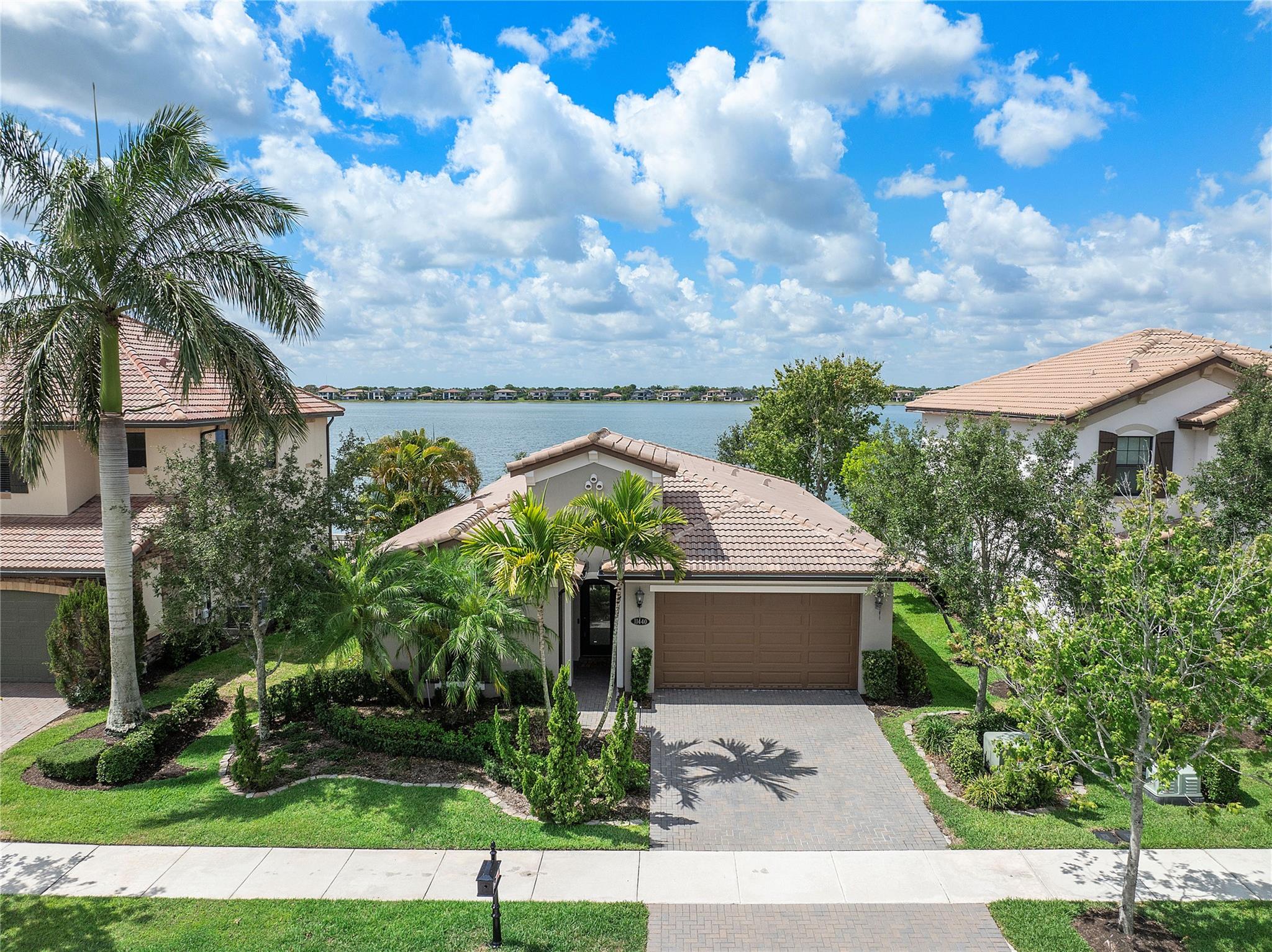 Views, Views, Views. Breathtaking lake views in this 3 bed 2.5 bath, partially furnished, Watercrest home. Over $90k in upgrades. Beautifully updated with large high end tile floors and gorgeous wood accents. The kitchen features updated, newer appliances, including a wall oven. There's also a large island and plenty of storage. The primary bedroom has walk-in closets w/built-ins and overlooks the lake. Primary bathroom has double vanity, walk-in shower and separate tub. Bonus room w/ shelving, TV and leather couch. Perfect for a playroom or game room. Fully fenced yard with plenty of room for a pool. Outstanding location just steps to the resort like pool and clubhouse!