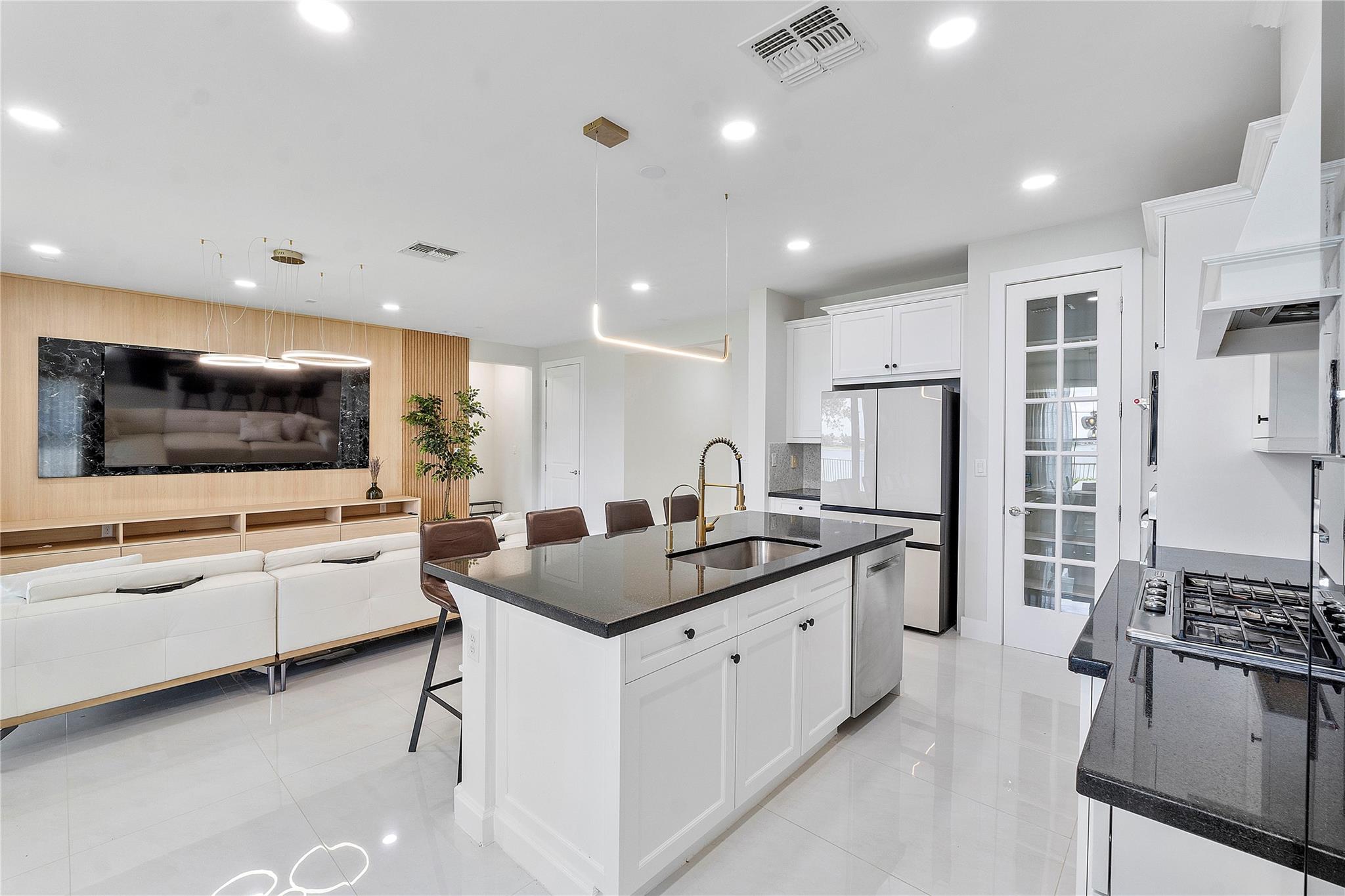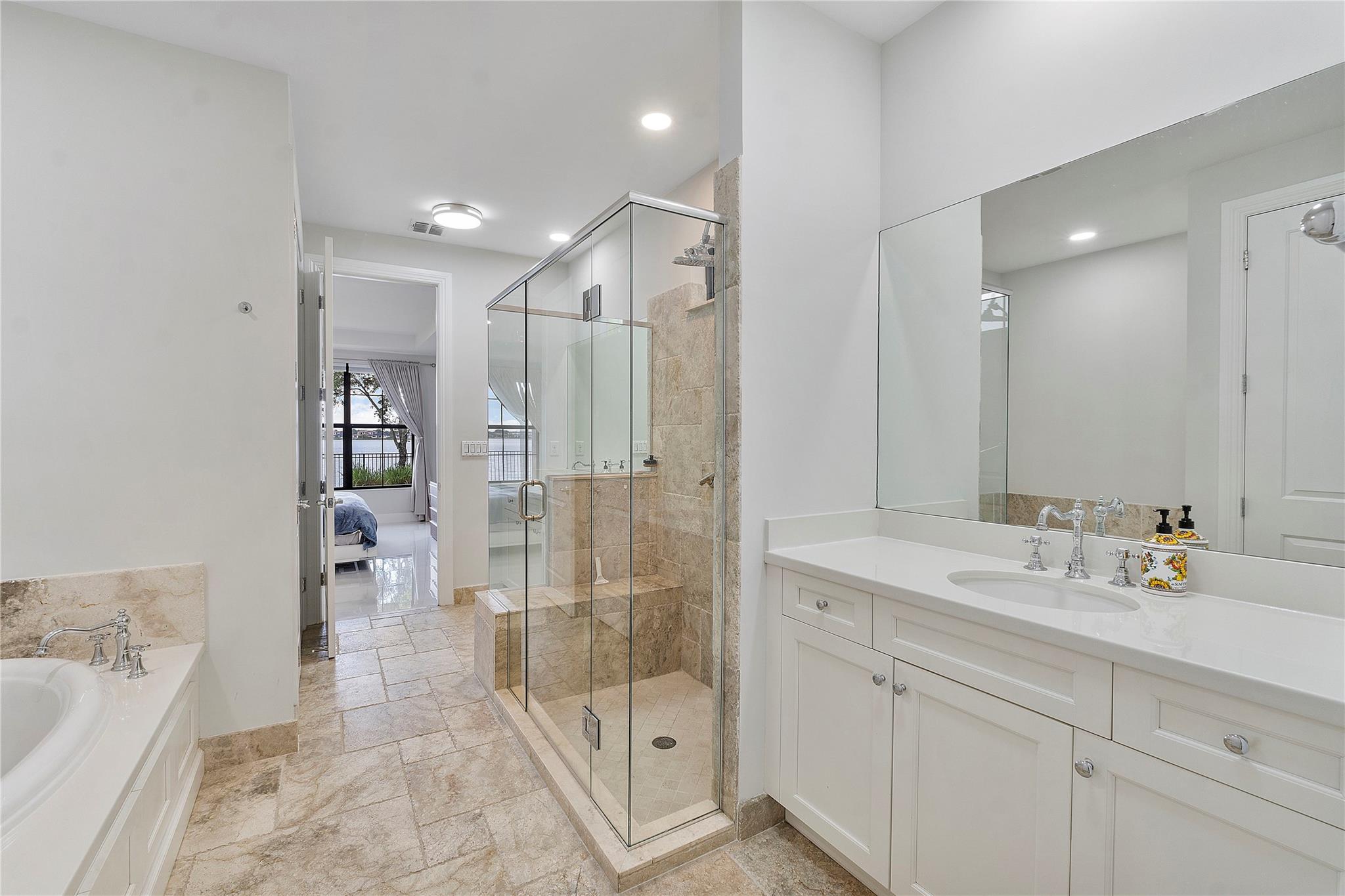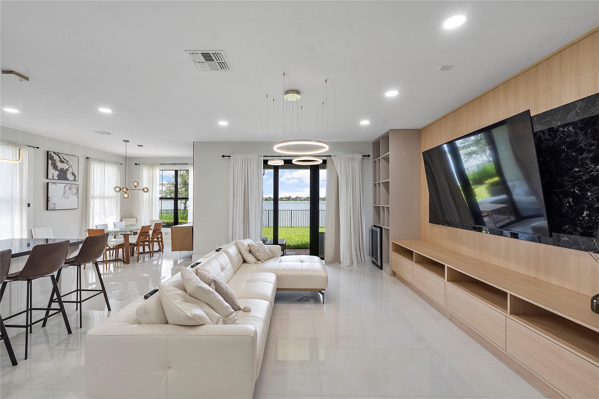 Views, Views, Views. Breathtaking lake views in this 3 bed 2.5 bath, partially furnished, Watercrest home. Over $90k in upgrades. Beautifully updated with large high end tile floors and gorgeous wood accents. The kitchen features updated, newer appliances, including a wall oven. There's also a large island and plenty of storage. The primary bedroom has walk-in closets w/built-ins and overlooks the lake. Primary bathroom has double vanity, walk-in shower and separate tub. Bonus room w/ shelving, TV and leather couch. Perfect for a playroom or game room. Fully fenced yard with plenty of room for a pool. Outstanding location just steps to the resort like pool and clubhouse!