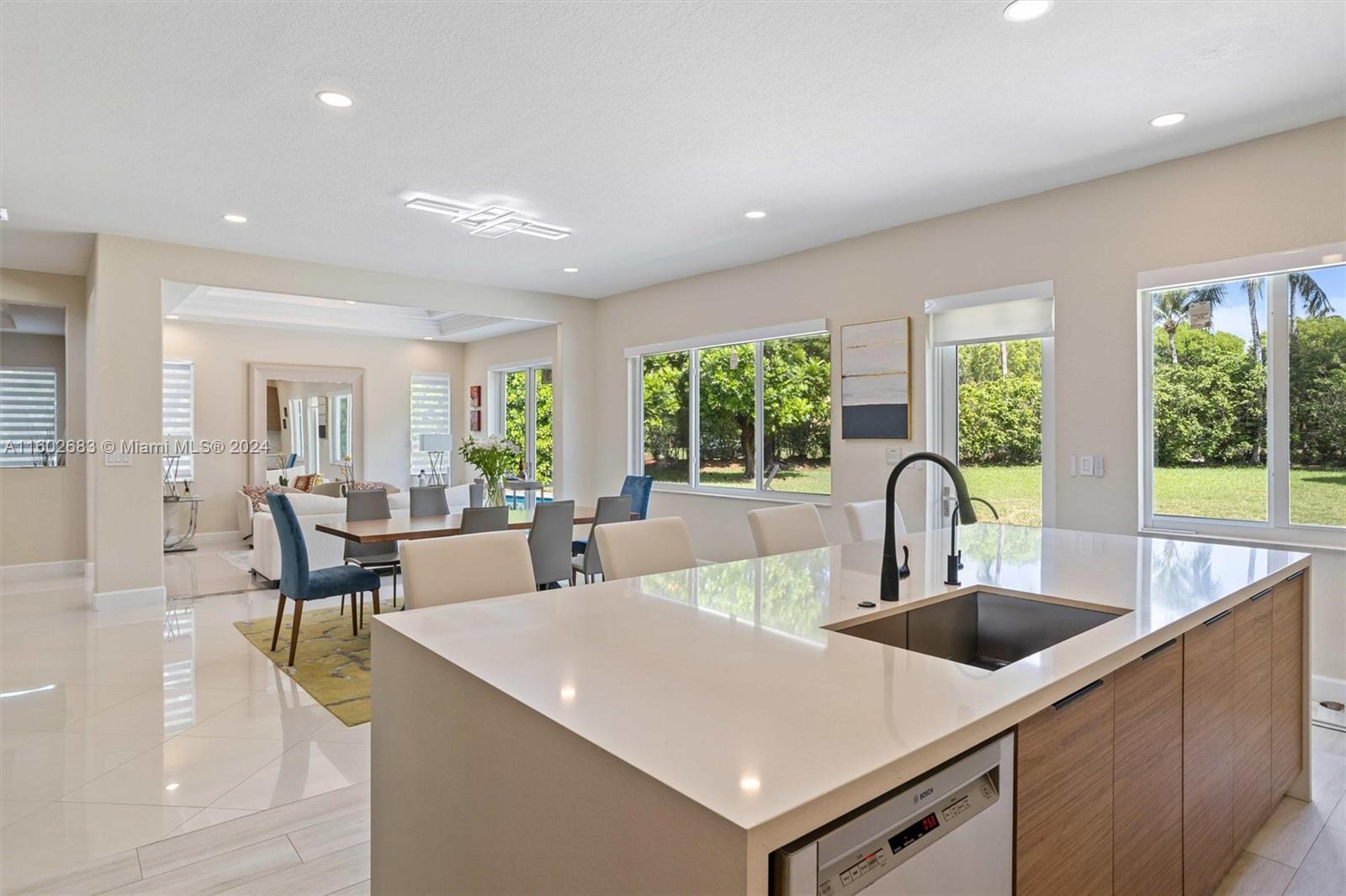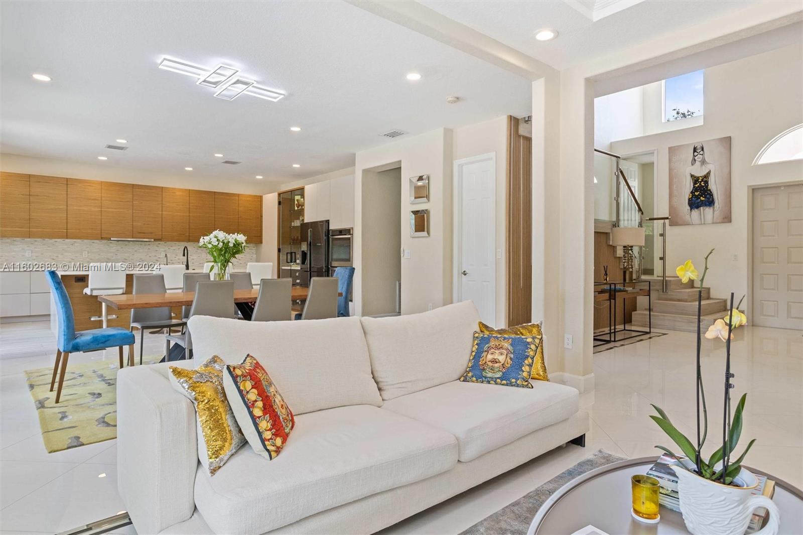 Luxury home in Doral Isles, 3,684 square feet that combines elegance and functionality. 6 bedrooms, including a maid's room, and 4.5 bathrooms, offering comfort and space for the entire family. The ground floor boasts a grand family room and a dining area, creating a perfect space for entertaining and daily living. The kitchen is a showstopper, modern and equipped with top-quality finishes and high-end appliances. Hurricane-resistant windows, Luxurious light fixtures will remain in the property. The master suite includes a large sitting area, extensive closets, and ample storage. The expansive backyard includes a heated saltwater pool and a jacuzzi. The garage accommodates two vehicles, with outdoor space for four additional vehicles, ensuring ample parking for guests and family alike.