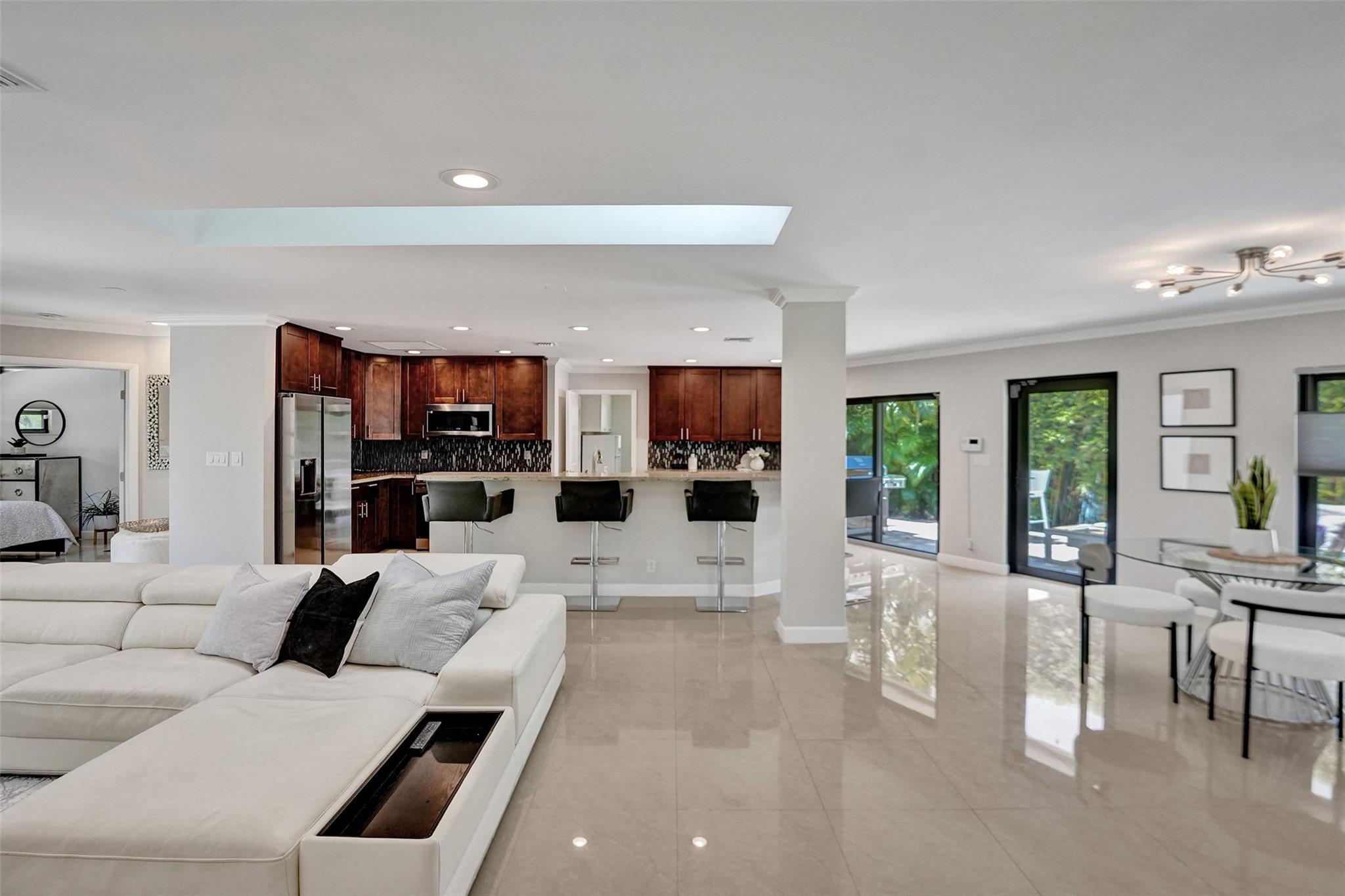 Completely remodeled 3 bedroom, 2 bath pool home on the water. Open floor plan with awesome natural light. All Impact windows and doors. Great master suite with large bath and walk in closet. Inside laundry and large 1 car garage. Beautiful modern pool with new equipment (heated & saltwater). Great mix of privacy while still feeling the connection to the water. Canal is right off the Middle River with 3 fixed bridges to Ocean. Located in the hidden gem neighborhood of Coral Shores- close to the beach, shopping and just West of Federal Hwy. Neighborhood has 2 entry/exit points and has a great tucked away and quiet feel. Recent updates include new appliances, new hot water heater, new deck and floating dock, new fence and new flat roof.