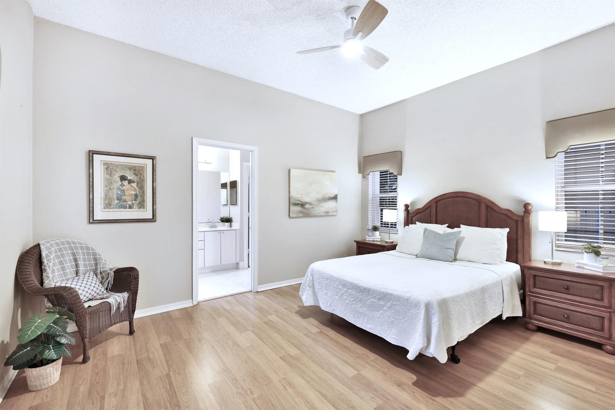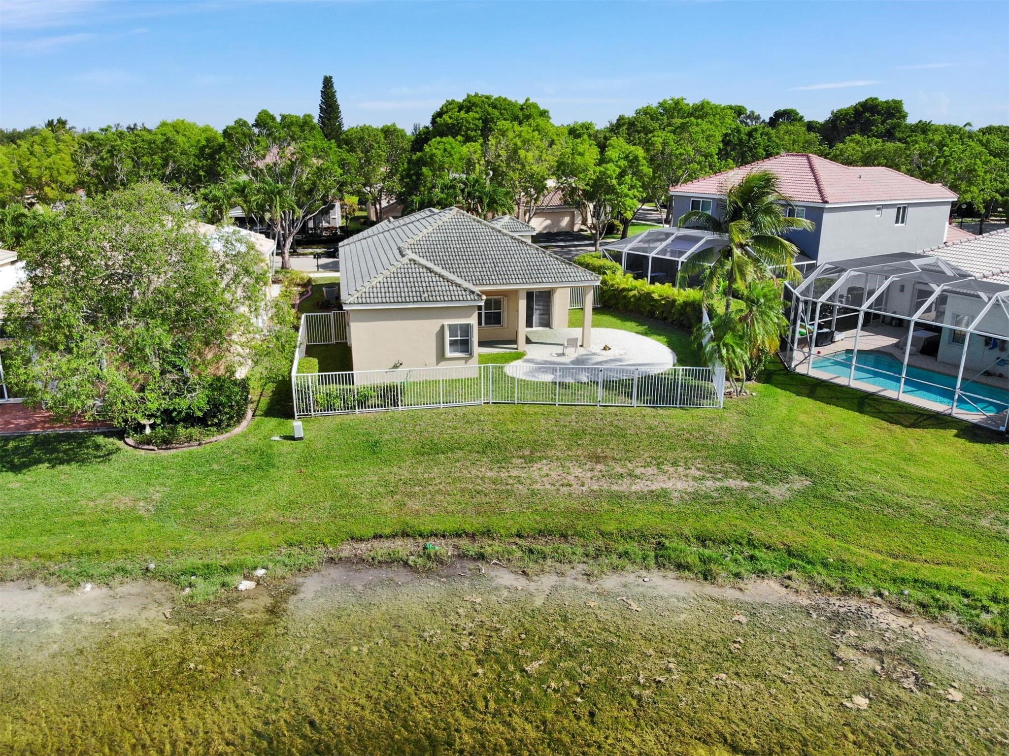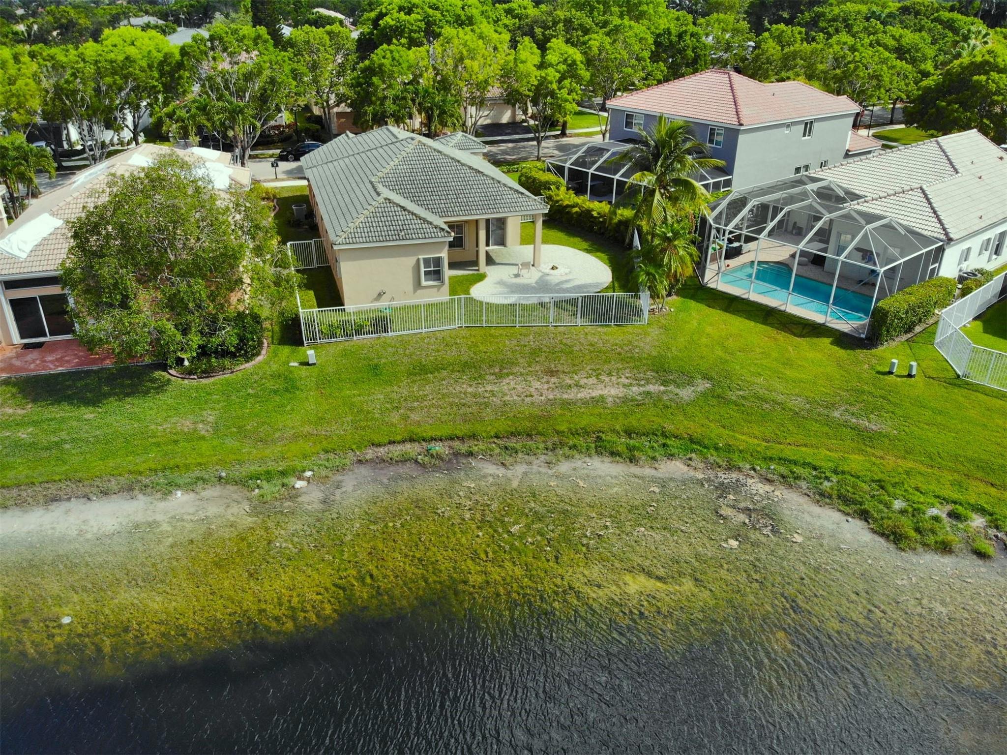 Beautifully maintained, light and bright 3BD/2BA/2CG single story residence nestled in highly desirable Ridges comm, situated on a gorgeous fully fenced LAKEFRONT LOT with expansive water views, generous brick paver covered patio and plenty of room for pool & outdoor recreation! Formal living, dining, family room plus charming breakfast area. Hunter Douglas custom silhouette shades exude a warm natural light. Split floorplan, tiled in all living areas, laminate flooring in the bedrooms. W/D inside, new 2024 dishwasher, water heater 2018, ACCORDIONS throughout; hurricane A-rated front door & garage door. Original roof; new roof replacement approved by HOA for convenience of buyer, see broker remarks. Amazing clubhouse w/pool, tot-lot, ballparks just up to road! Weston's A+ schools nearby!