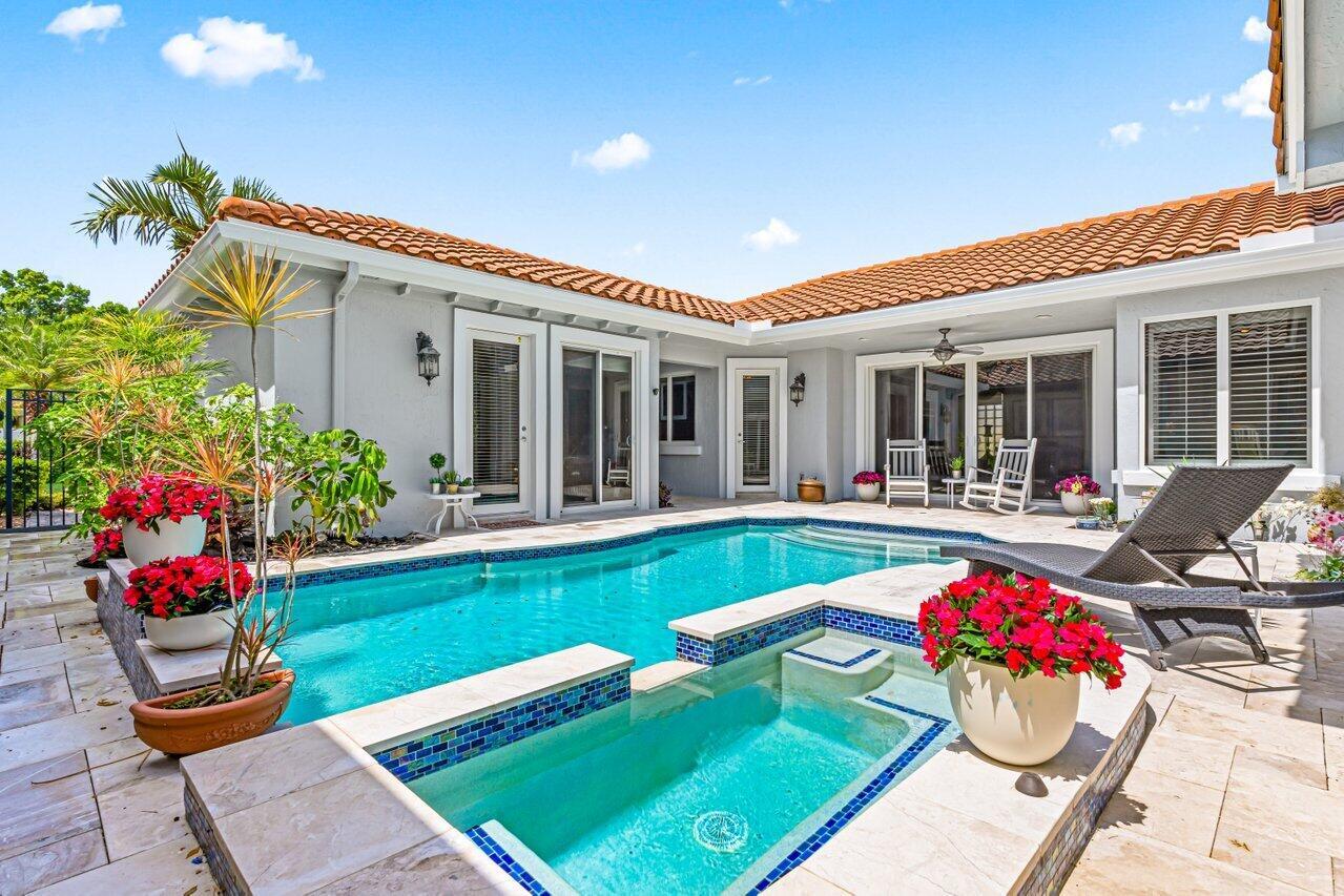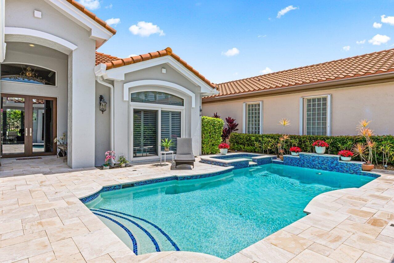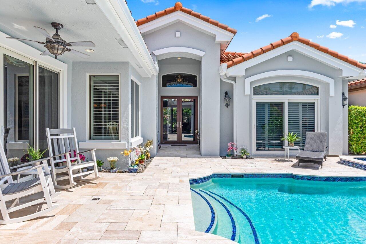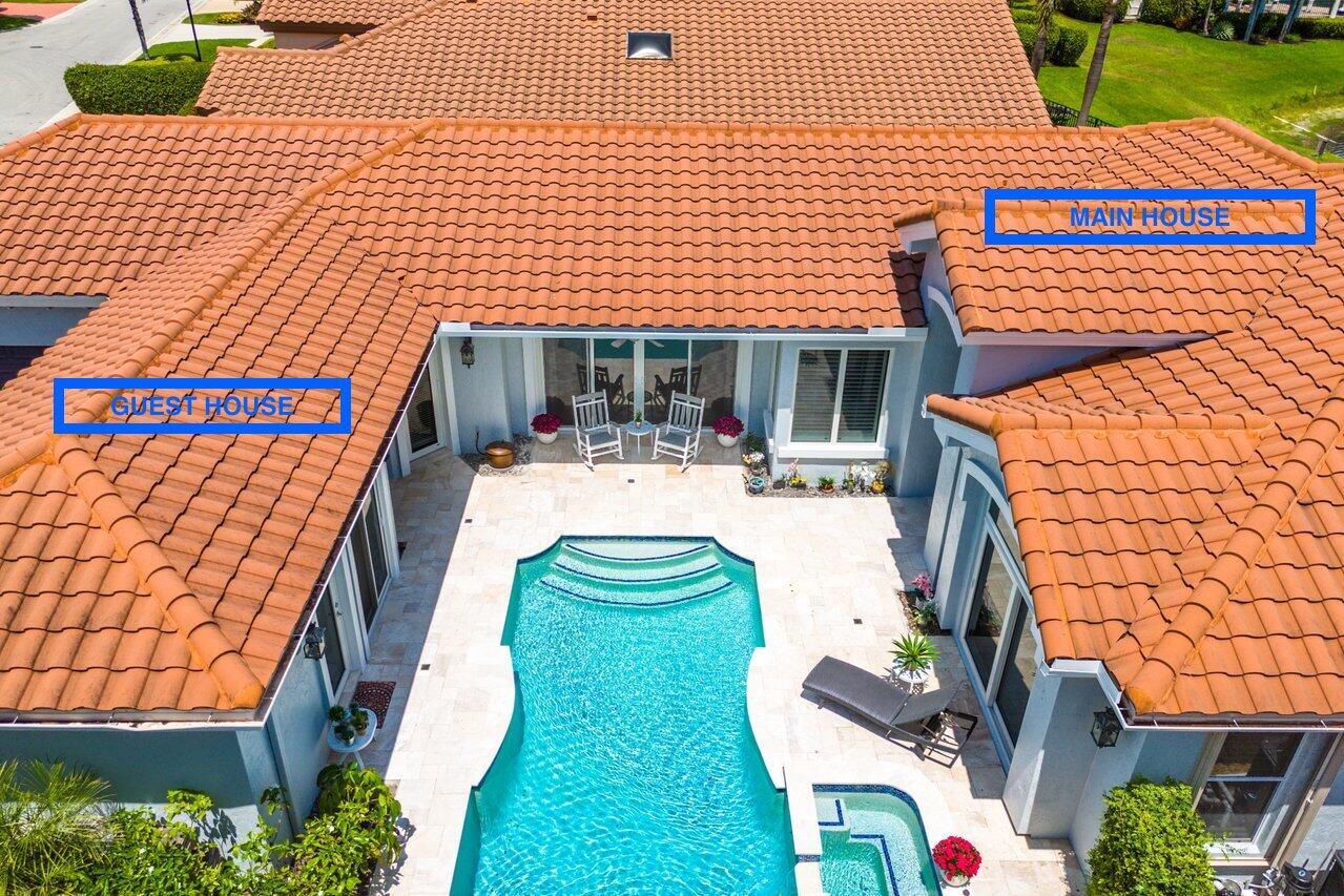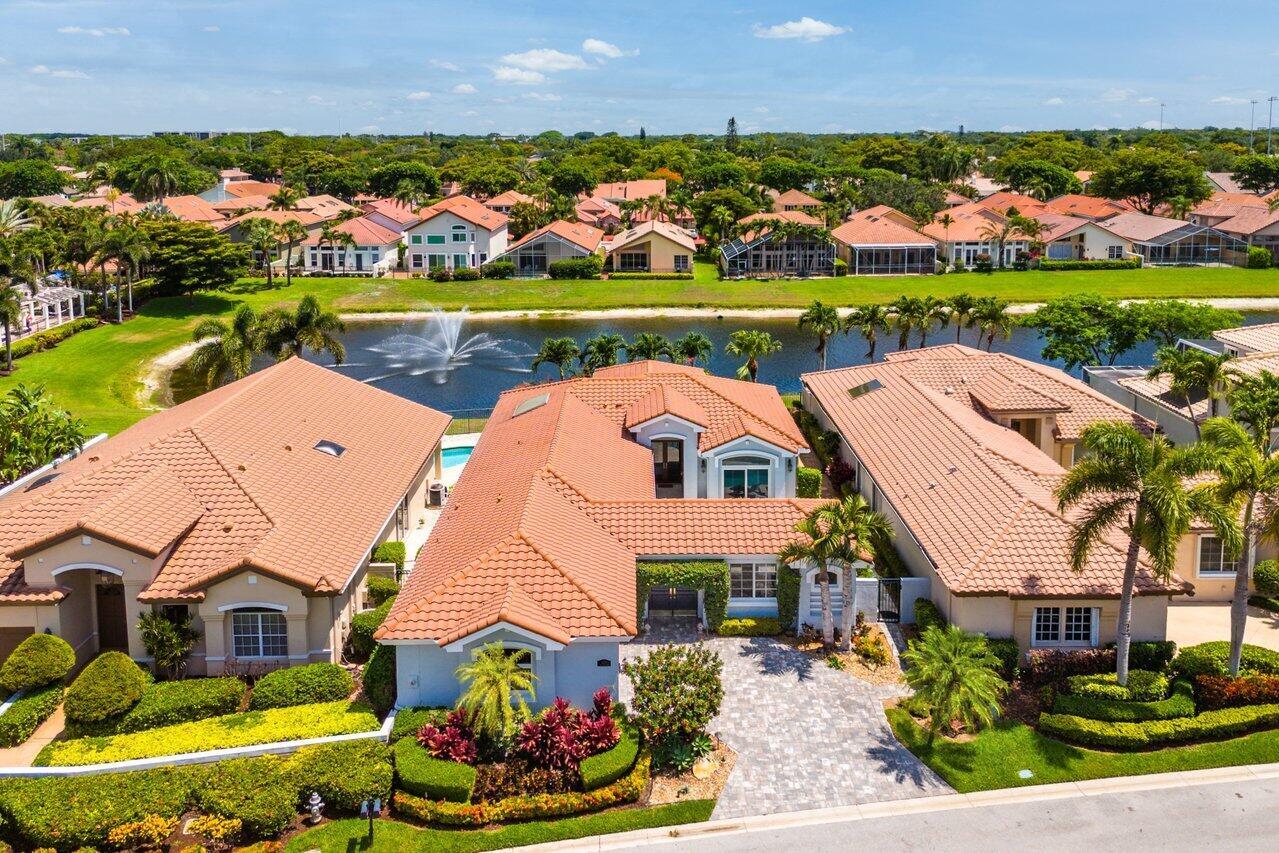 WELCOME TO ''PARADISE FOUND'' IN THIS FABULOUS COURTYARD POOL HOME w/ GUEST HOUSE AND STUNNING LAKE & FOUNTAIN VIEWS IN PRESTIGIOUS SANTA BARBARA! WHEN YOU STEP THROUGH THE DOUBLE COURTYARD DOORS, YOU SEE THE BRAND NEW SPARKLING BLUE POOL w/ WATERFALLS, SPA AND MARBLE PATIO DECK! THEN, ENTER THE DRAMATIC FOYER OF THIS 4 BEDROOM, 3.5 BATH HOME & YOU NOTICE THE SOARING CEILINGS, ELEGANT HARDWOOD FLOORS & NEW HURRICANE IMPACT WINDOWS. THE KITCHEN FEATURES WHITE 42'' CABINETS, AMAZING CREAM QUARTZ COUNTERTOPS & COOKTOP ISLAND. PLANTATION SHUTTERS & CUSTOM CLOSETS. DINE AL FRESCO ON THE BACK PATIO w/ NEW SUMMER KITCHEN & PEACEFUL LAKE & FOUNTAIN VIEWS (lights up at night) STEPS TO THE AMAZING CLUBHOUSE w/ RESORT POOL, FITNESS CENTER, YOGA, PICKLEBALL, TENNIS, SPA, 24 HR GUARD/ ROVING SECURITY