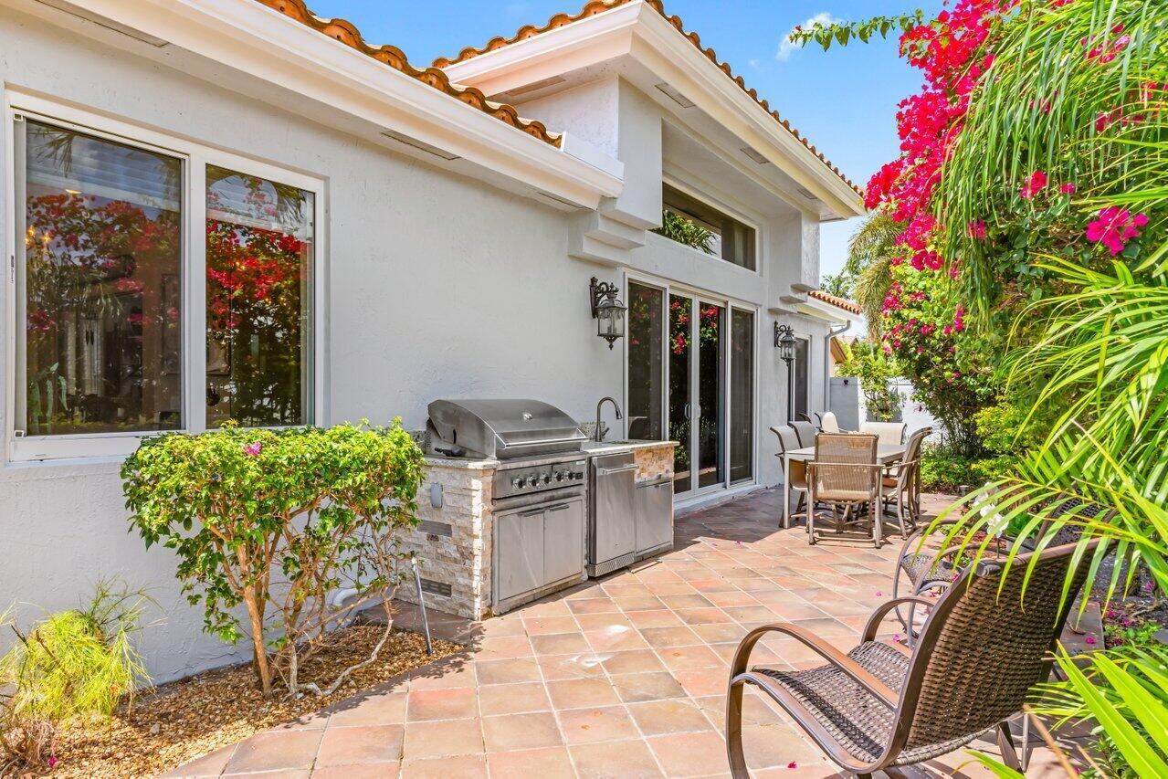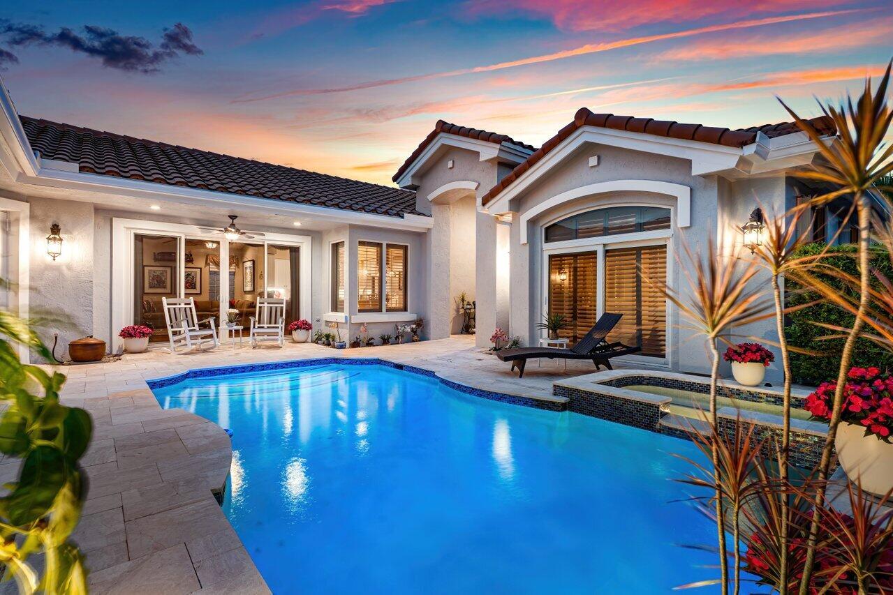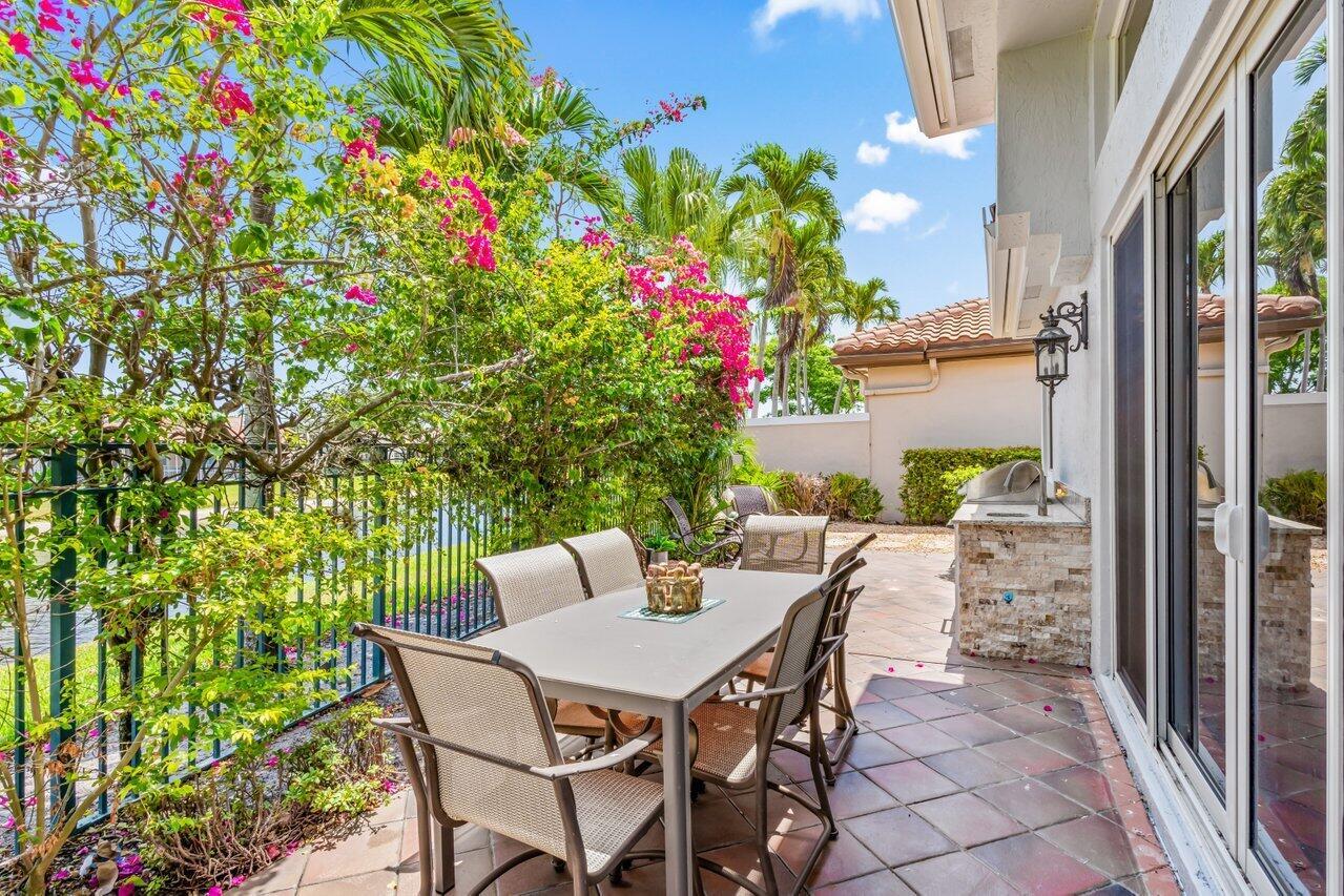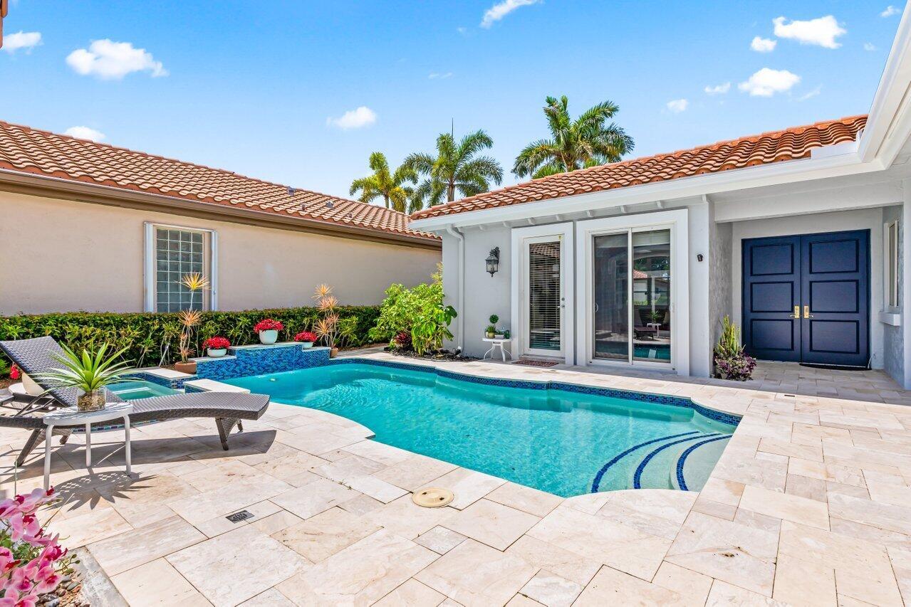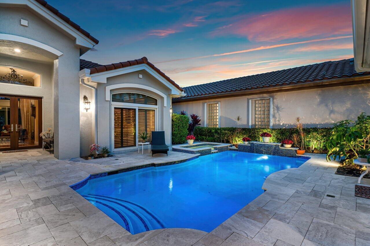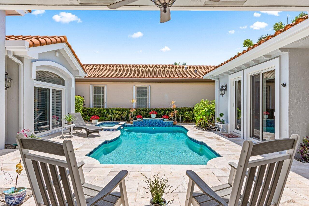 WELCOME TO ''PARADISE FOUND'' IN THIS FABULOUS COURTYARD POOL HOME w/ GUEST HOUSE AND STUNNING LAKE & FOUNTAIN VIEWS IN PRESTIGIOUS SANTA BARBARA! WHEN YOU STEP THROUGH THE DOUBLE COURTYARD DOORS, YOU SEE THE BRAND NEW SPARKLING BLUE POOL w/ WATERFALLS, SPA AND MARBLE PATIO DECK! THEN, ENTER THE DRAMATIC FOYER OF THIS 4 BEDROOM, 3.5 BATH HOME & YOU NOTICE THE SOARING CEILINGS, ELEGANT HARDWOOD FLOORS & NEW HURRICANE IMPACT WINDOWS. THE KITCHEN FEATURES WHITE 42'' CABINETS, AMAZING CREAM QUARTZ COUNTERTOPS & COOKTOP ISLAND. PLANTATION SHUTTERS & CUSTOM CLOSETS. DINE AL FRESCO ON THE BACK PATIO w/ NEW SUMMER KITCHEN & PEACEFUL LAKE & FOUNTAIN VIEWS (lights up at night) STEPS TO THE AMAZING CLUBHOUSE w/ RESORT POOL, FITNESS CENTER, YOGA, PICKLEBALL, TENNIS, SPA, 24 HR GUARD/ ROVING SECURITY