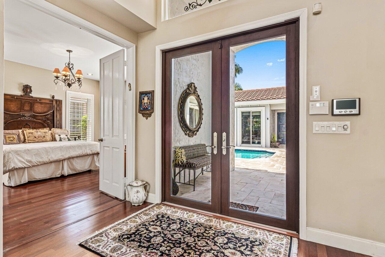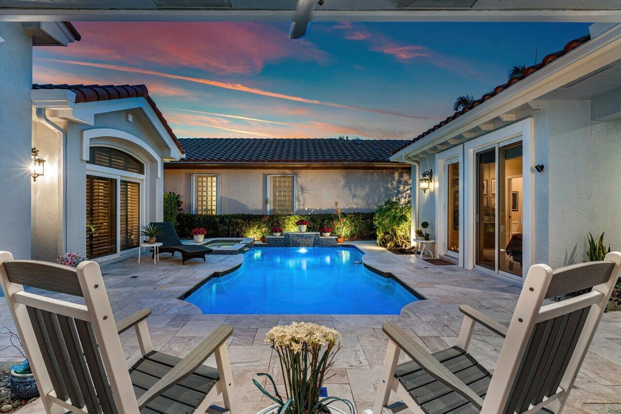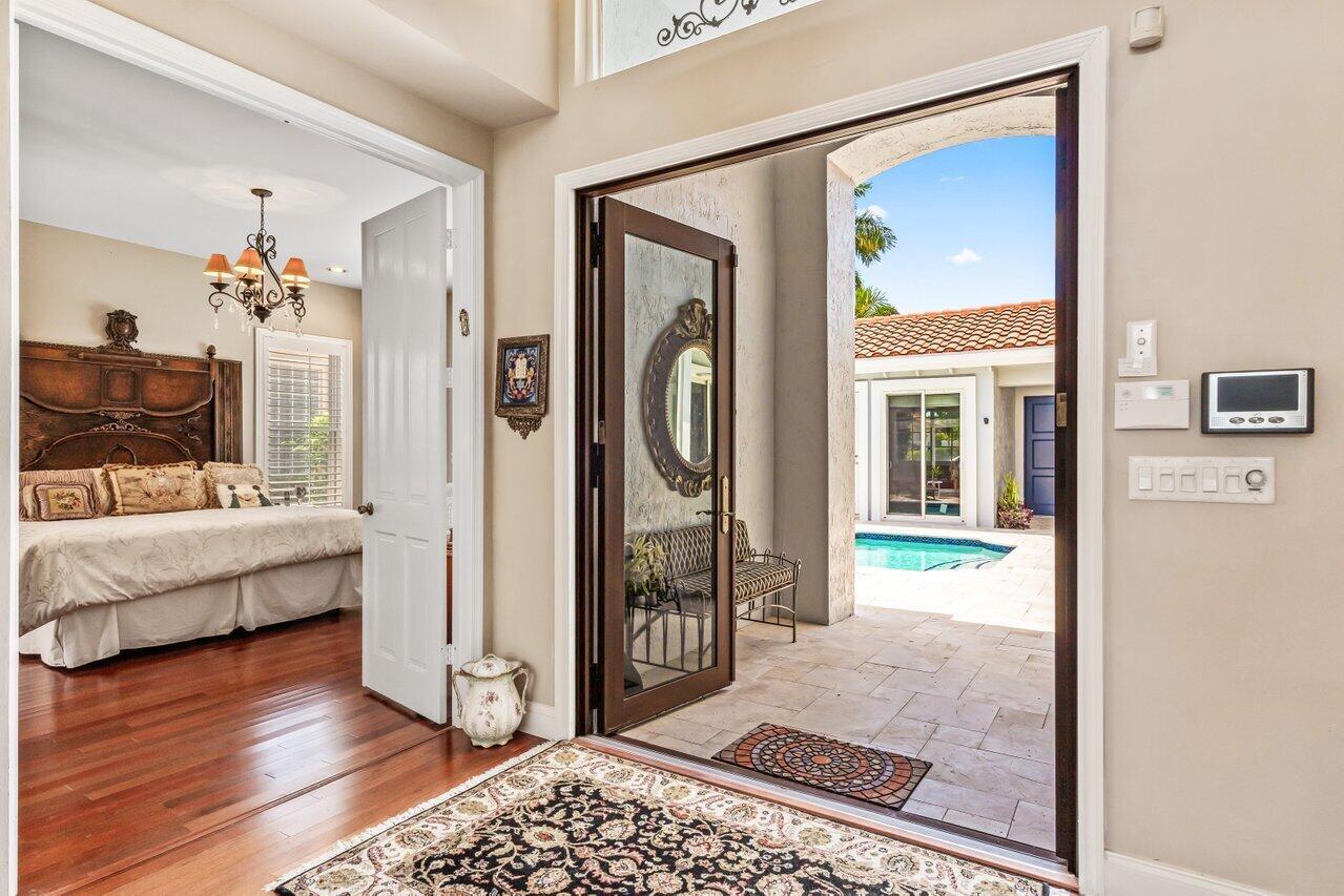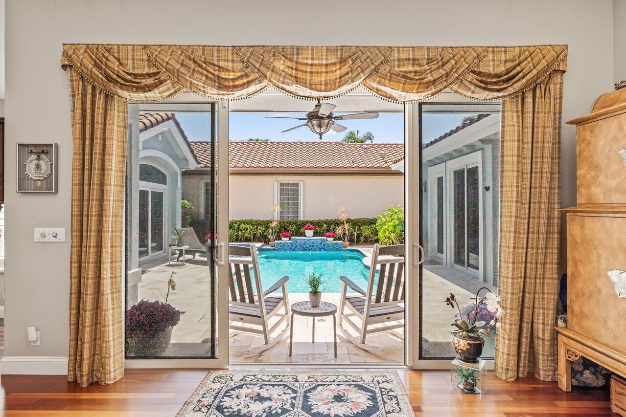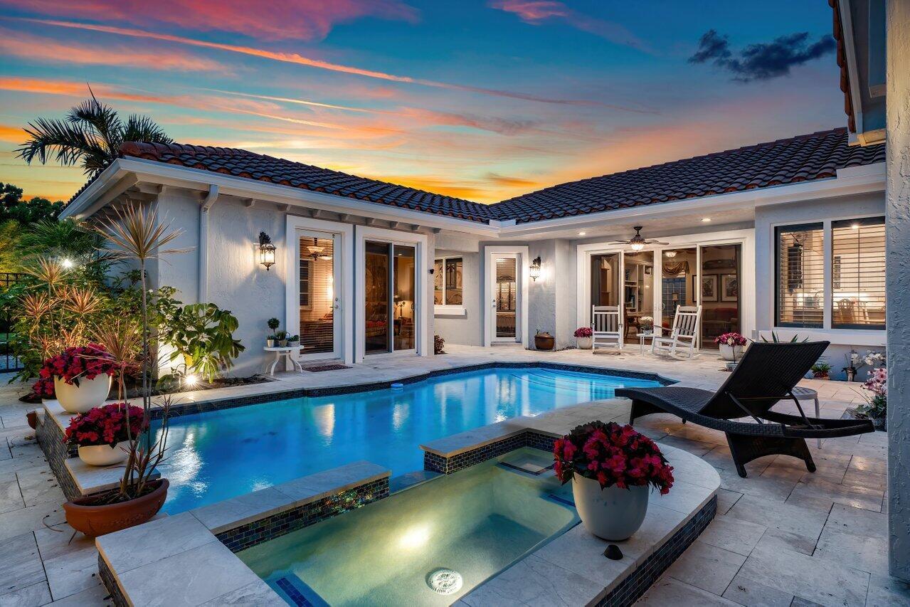 WELCOME TO ''PARADISE FOUND'' IN THIS FABULOUS COURTYARD POOL HOME w/ GUEST HOUSE AND STUNNING LAKE & FOUNTAIN VIEWS IN PRESTIGIOUS SANTA BARBARA! WHEN YOU STEP THROUGH THE DOUBLE COURTYARD DOORS, YOU SEE THE BRAND NEW SPARKLING BLUE POOL w/ WATERFALLS, SPA AND MARBLE PATIO DECK! THEN, ENTER THE DRAMATIC FOYER OF THIS 4 BEDROOM, 3.5 BATH HOME & YOU NOTICE THE SOARING CEILINGS, ELEGANT HARDWOOD FLOORS & NEW HURRICANE IMPACT WINDOWS. THE KITCHEN FEATURES WHITE 42'' CABINETS, AMAZING CREAM QUARTZ COUNTERTOPS & COOKTOP ISLAND. PLANTATION SHUTTERS & CUSTOM CLOSETS. DINE AL FRESCO ON THE BACK PATIO w/ NEW SUMMER KITCHEN & PEACEFUL LAKE & FOUNTAIN VIEWS (lights up at night) STEPS TO THE AMAZING CLUBHOUSE w/ RESORT POOL, FITNESS CENTER, YOGA, PICKLEBALL, TENNIS, SPA, 24 HR GUARD/ ROVING SECURITY