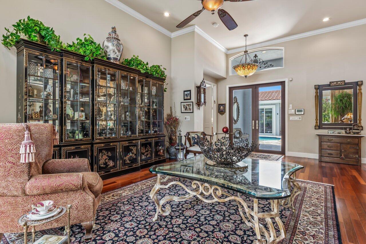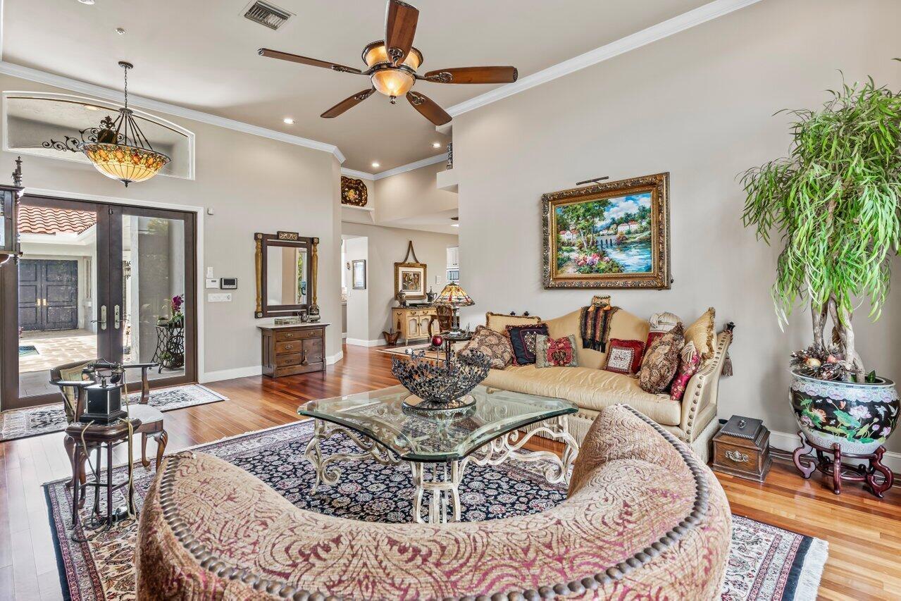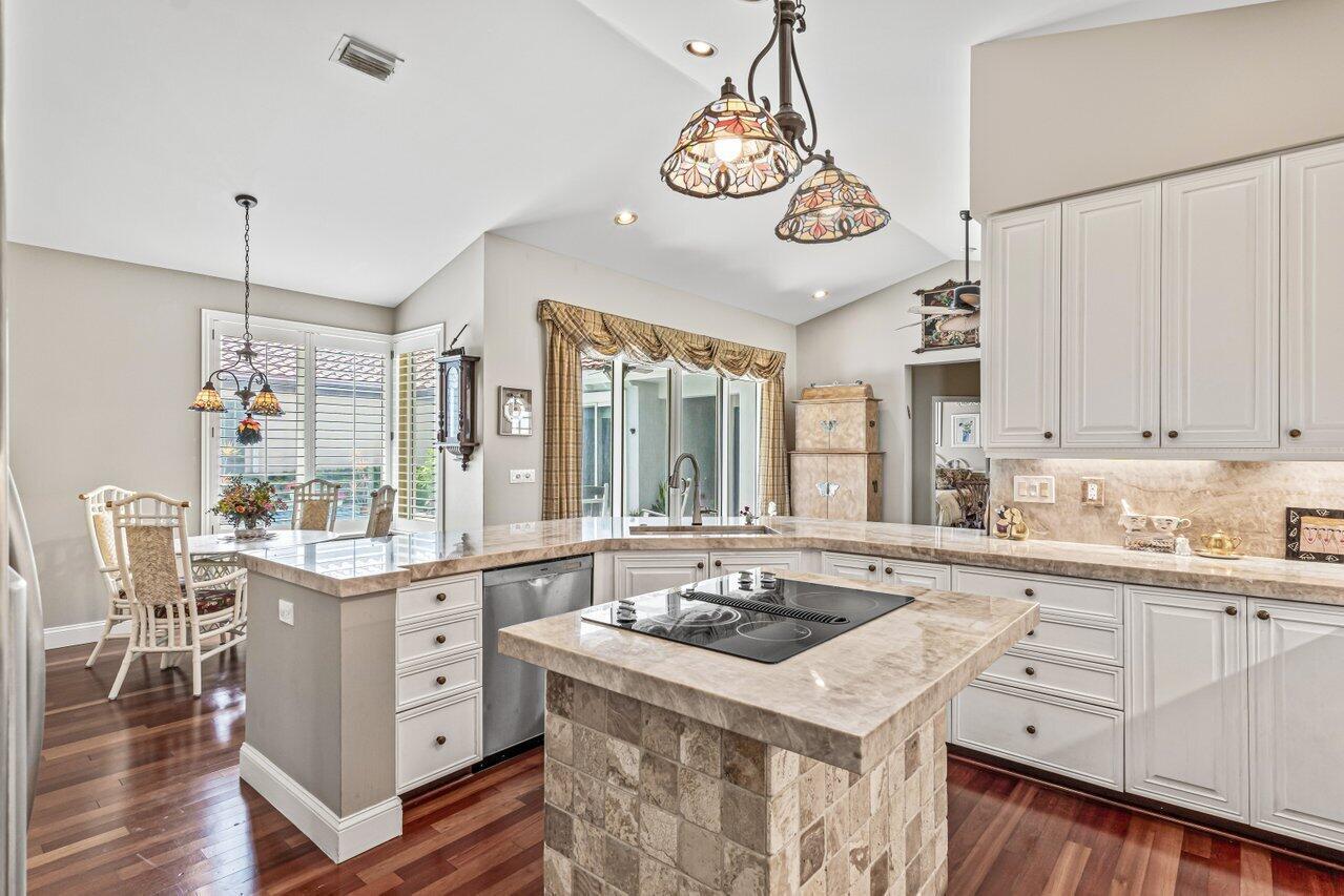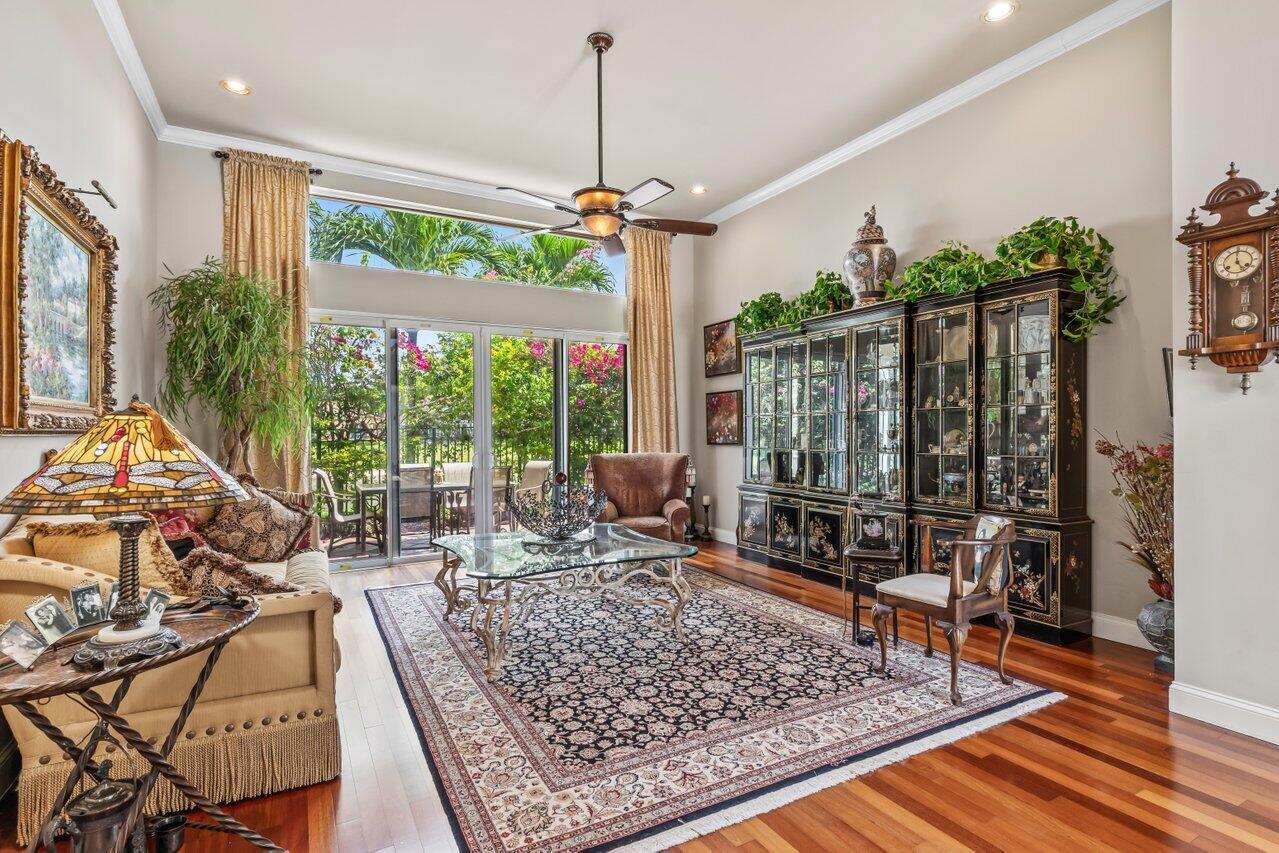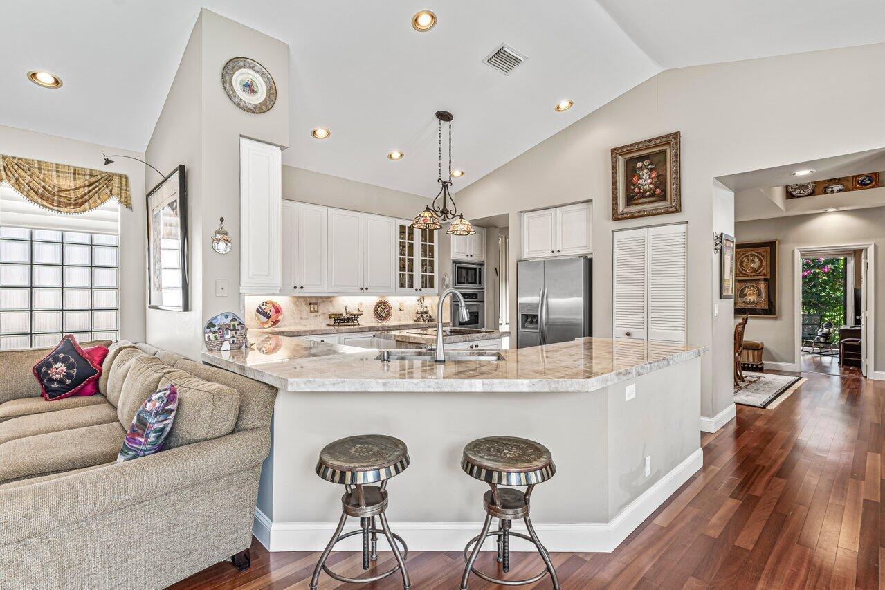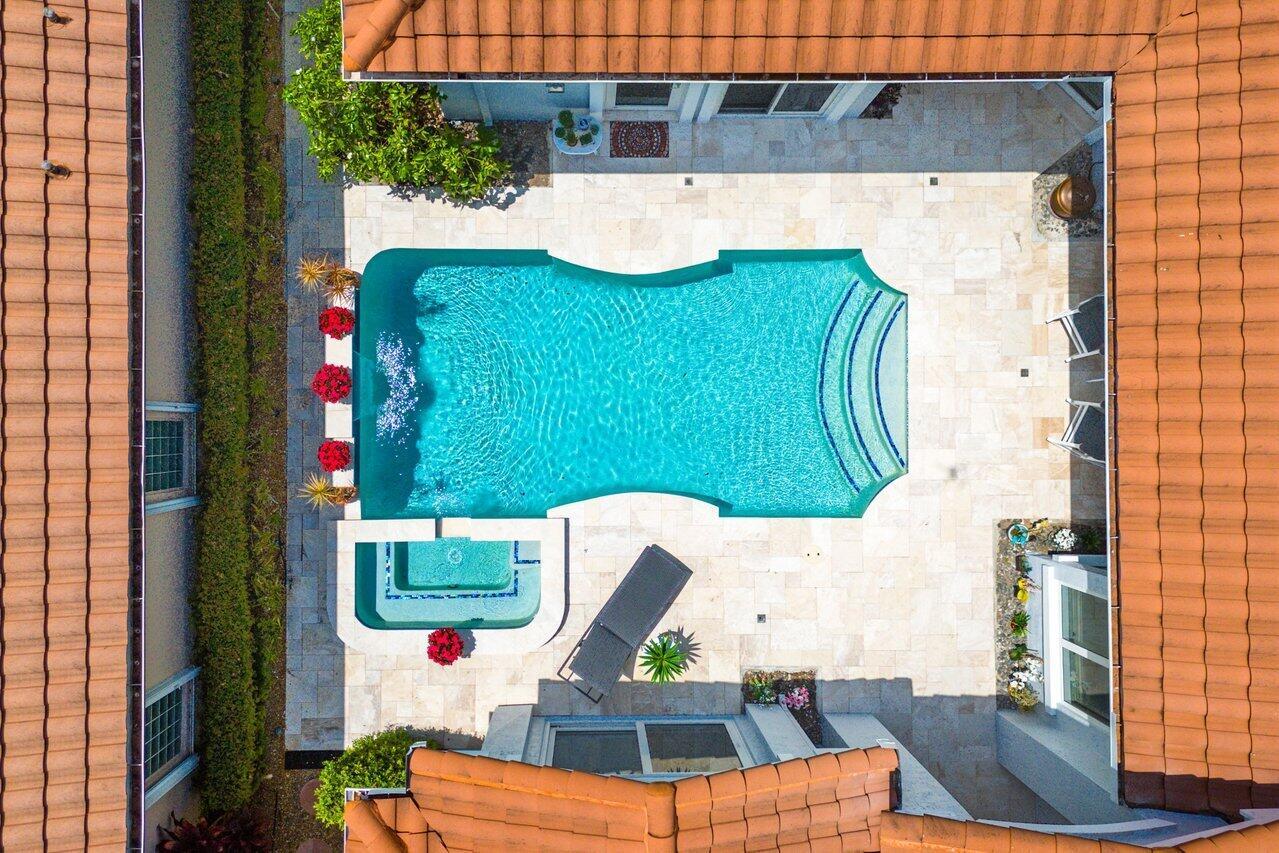 WELCOME TO ''PARADISE FOUND'' IN THIS FABULOUS COURTYARD POOL HOME w/ GUEST HOUSE AND STUNNING LAKE & FOUNTAIN VIEWS IN PRESTIGIOUS SANTA BARBARA! WHEN YOU STEP THROUGH THE DOUBLE COURTYARD DOORS, YOU SEE THE BRAND NEW SPARKLING BLUE POOL w/ WATERFALLS, SPA AND MARBLE PATIO DECK! THEN, ENTER THE DRAMATIC FOYER OF THIS 4 BEDROOM, 3.5 BATH HOME & YOU NOTICE THE SOARING CEILINGS, ELEGANT HARDWOOD FLOORS & NEW HURRICANE IMPACT WINDOWS. THE KITCHEN FEATURES WHITE 42'' CABINETS, AMAZING CREAM QUARTZ COUNTERTOPS & COOKTOP ISLAND. PLANTATION SHUTTERS & CUSTOM CLOSETS. DINE AL FRESCO ON THE BACK PATIO w/ NEW SUMMER KITCHEN & PEACEFUL LAKE & FOUNTAIN VIEWS (lights up at night) STEPS TO THE AMAZING CLUBHOUSE w/ RESORT POOL, FITNESS CENTER, YOGA, PICKLEBALL, TENNIS, SPA, 24 HR GUARD/ ROVING SECURITY