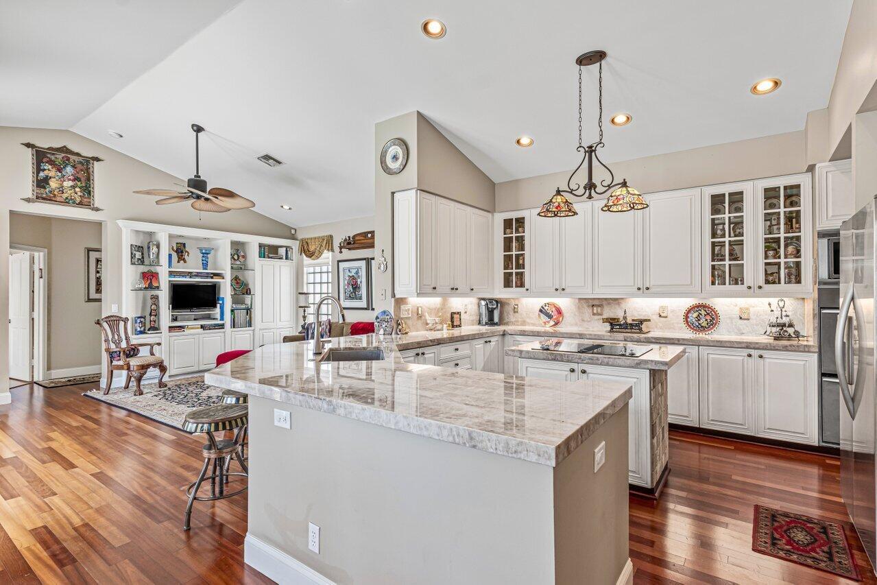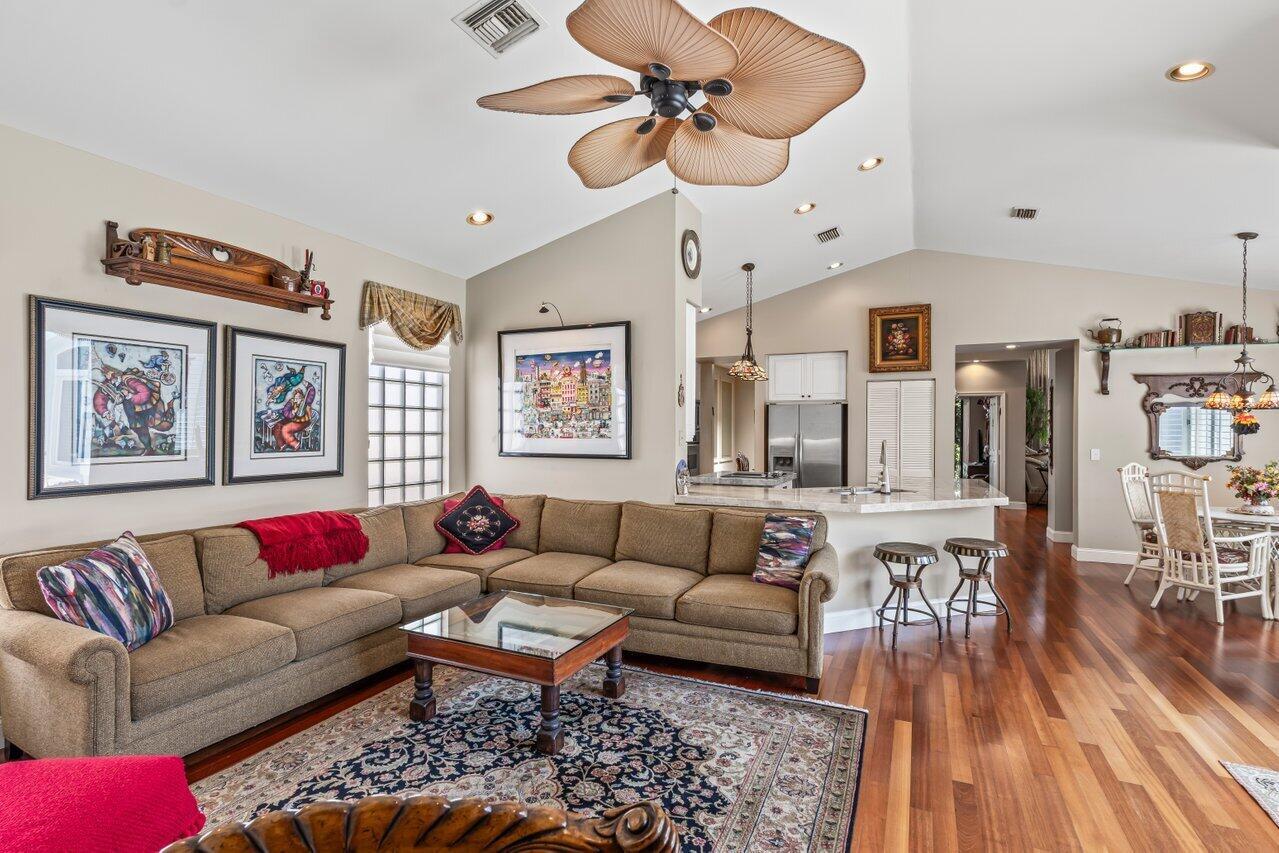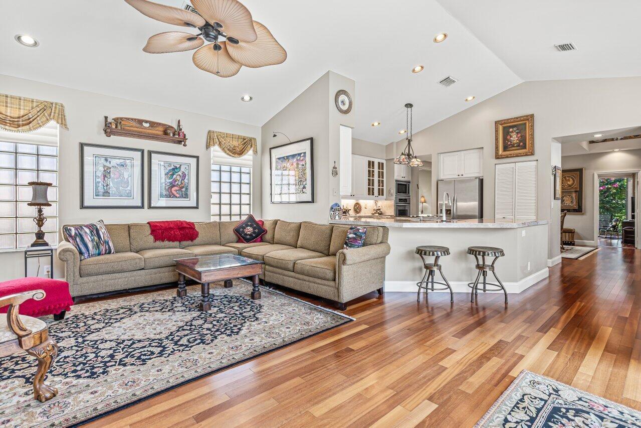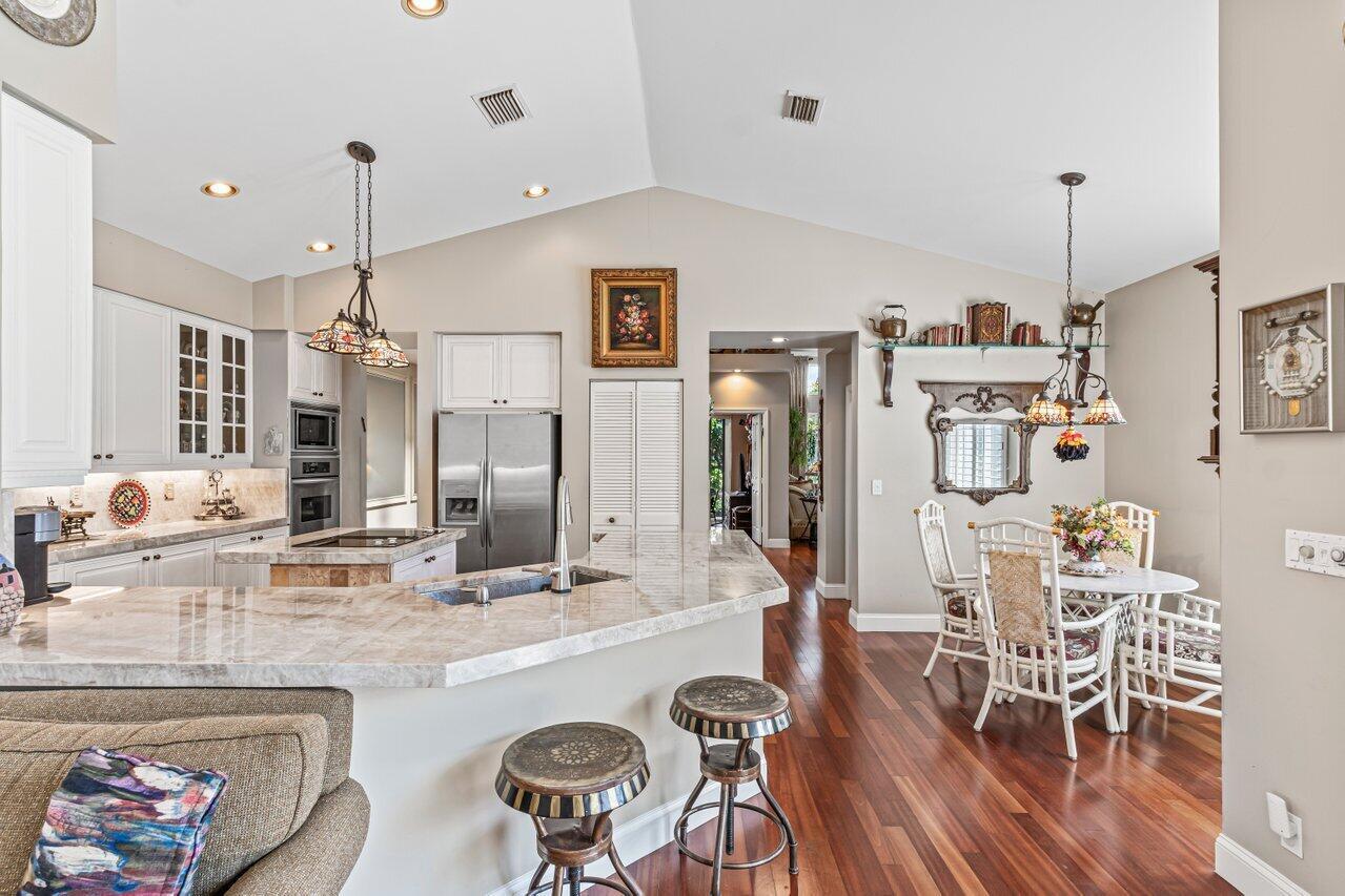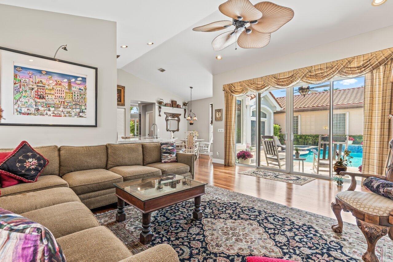 WELCOME TO ''PARADISE FOUND'' IN THIS FABULOUS COURTYARD POOL HOME w/ GUEST HOUSE AND STUNNING LAKE & FOUNTAIN VIEWS IN PRESTIGIOUS SANTA BARBARA! WHEN YOU STEP THROUGH THE DOUBLE COURTYARD DOORS, YOU SEE THE BRAND NEW SPARKLING BLUE POOL w/ WATERFALLS, SPA AND MARBLE PATIO DECK! THEN, ENTER THE DRAMATIC FOYER OF THIS 4 BEDROOM, 3.5 BATH HOME & YOU NOTICE THE SOARING CEILINGS, ELEGANT HARDWOOD FLOORS & NEW HURRICANE IMPACT WINDOWS. THE KITCHEN FEATURES WHITE 42'' CABINETS, AMAZING CREAM QUARTZ COUNTERTOPS & COOKTOP ISLAND. PLANTATION SHUTTERS & CUSTOM CLOSETS. DINE AL FRESCO ON THE BACK PATIO w/ NEW SUMMER KITCHEN & PEACEFUL LAKE & FOUNTAIN VIEWS (lights up at night) STEPS TO THE AMAZING CLUBHOUSE w/ RESORT POOL, FITNESS CENTER, YOGA, PICKLEBALL, TENNIS, SPA, 24 HR GUARD/ ROVING SECURITY