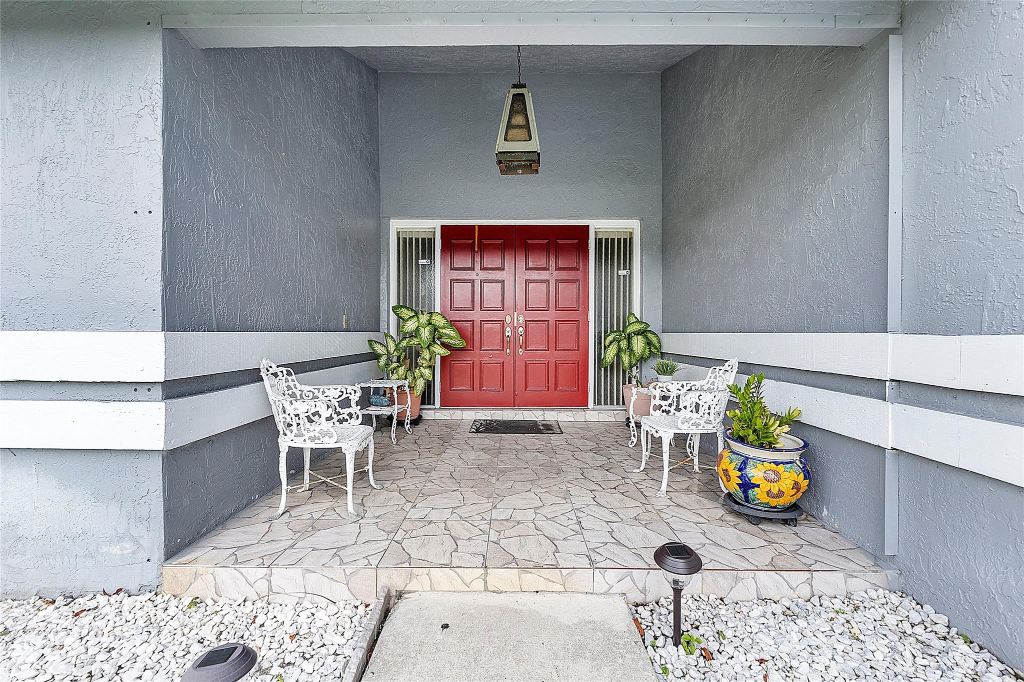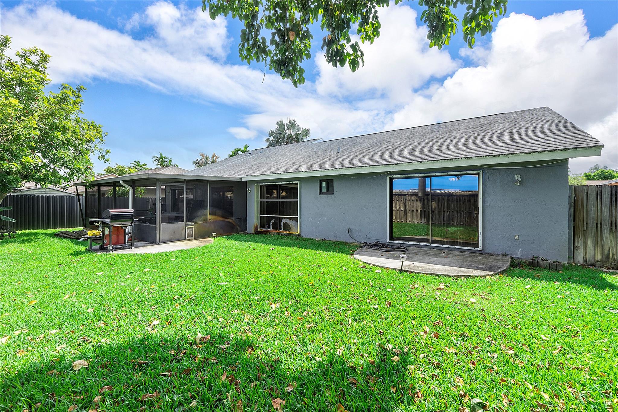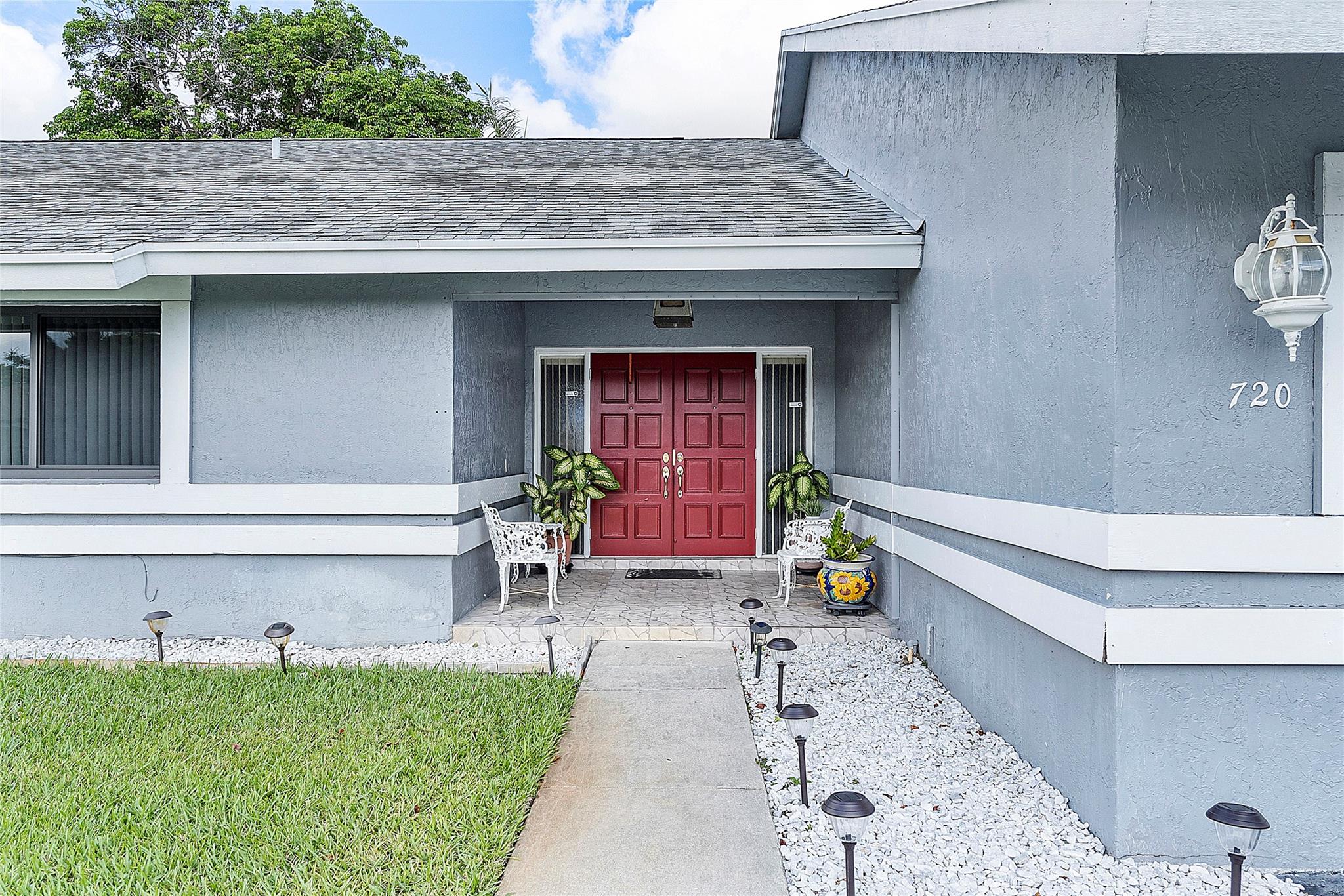 Welcome to this beautiful single-family home featuring 4 bedrooms, 2.5 bathrooms, and a 2-car garage. Enjoy the convenience of a circular driveway and an elegant double door entry. The living and dining rooms boast vaulted ceilings, and ceramic tile runs throughout the home. Relax in the family room or on the covered patio. The kitchen is equipped with stainless steel appliances, and the master bathroom has been remodeled. The property also features impact windows for added safety and energy efficiency. Additionally, the home boasts fruit trees, adding charm and a touch of nature to your surroundings.