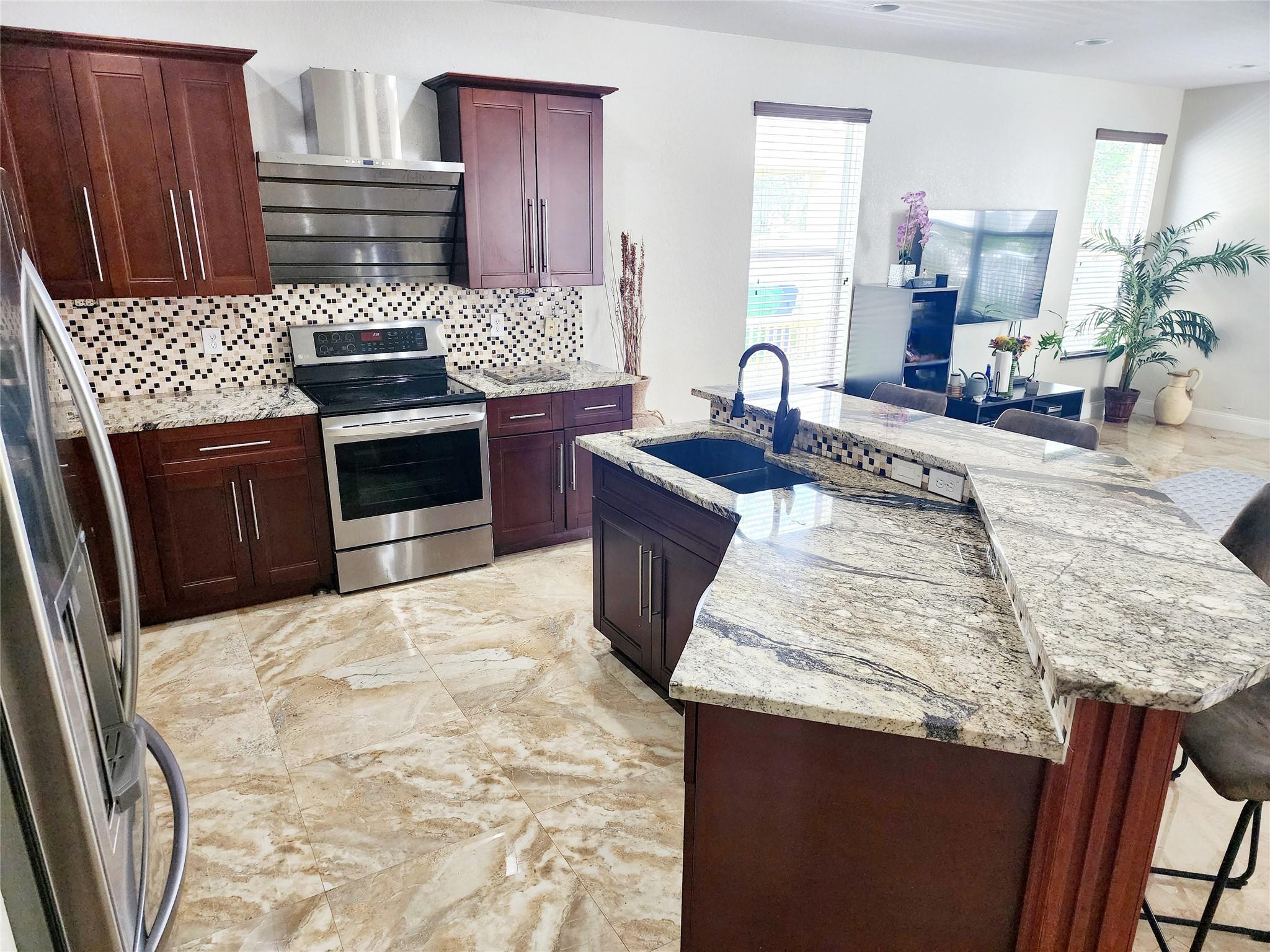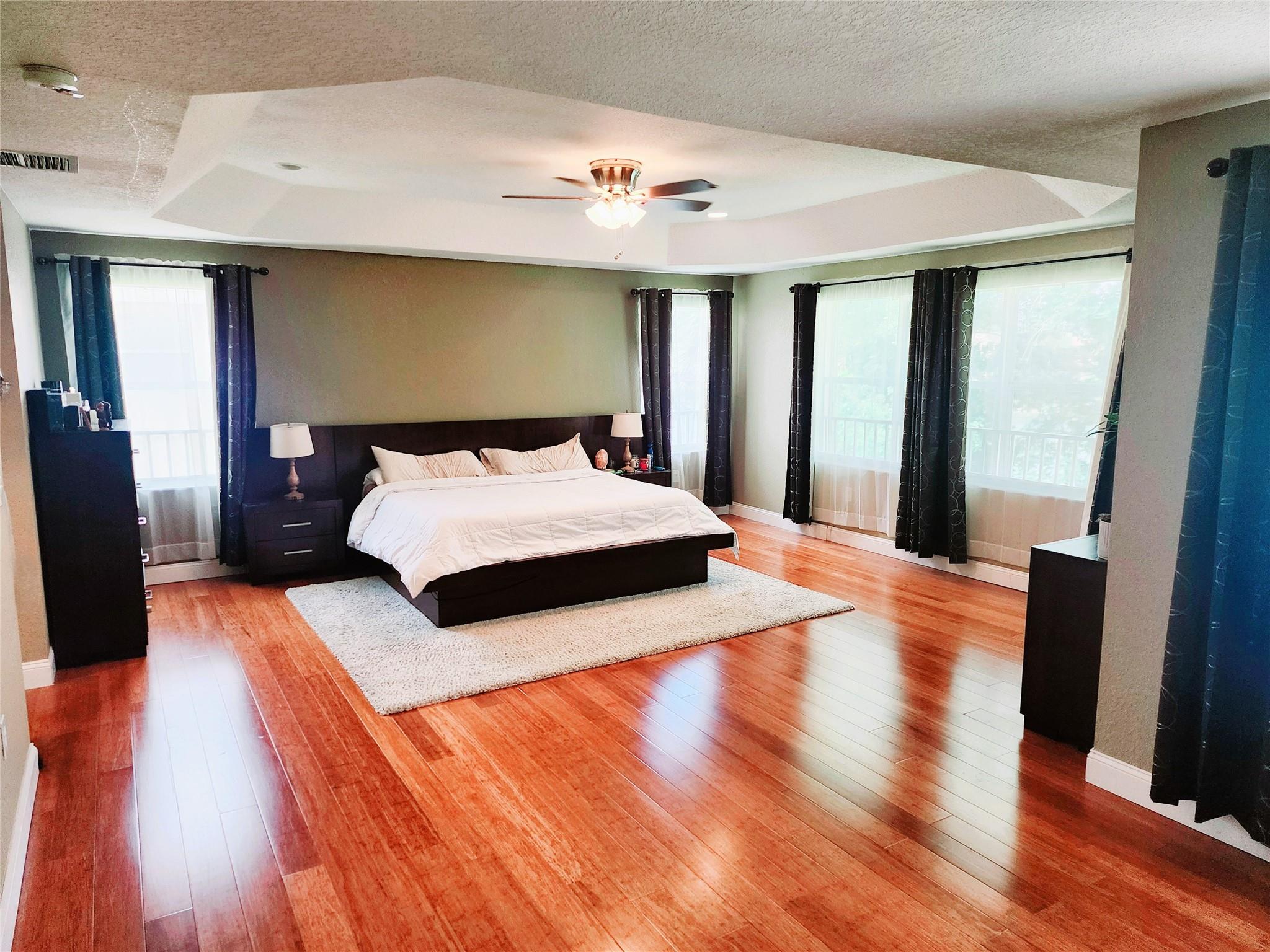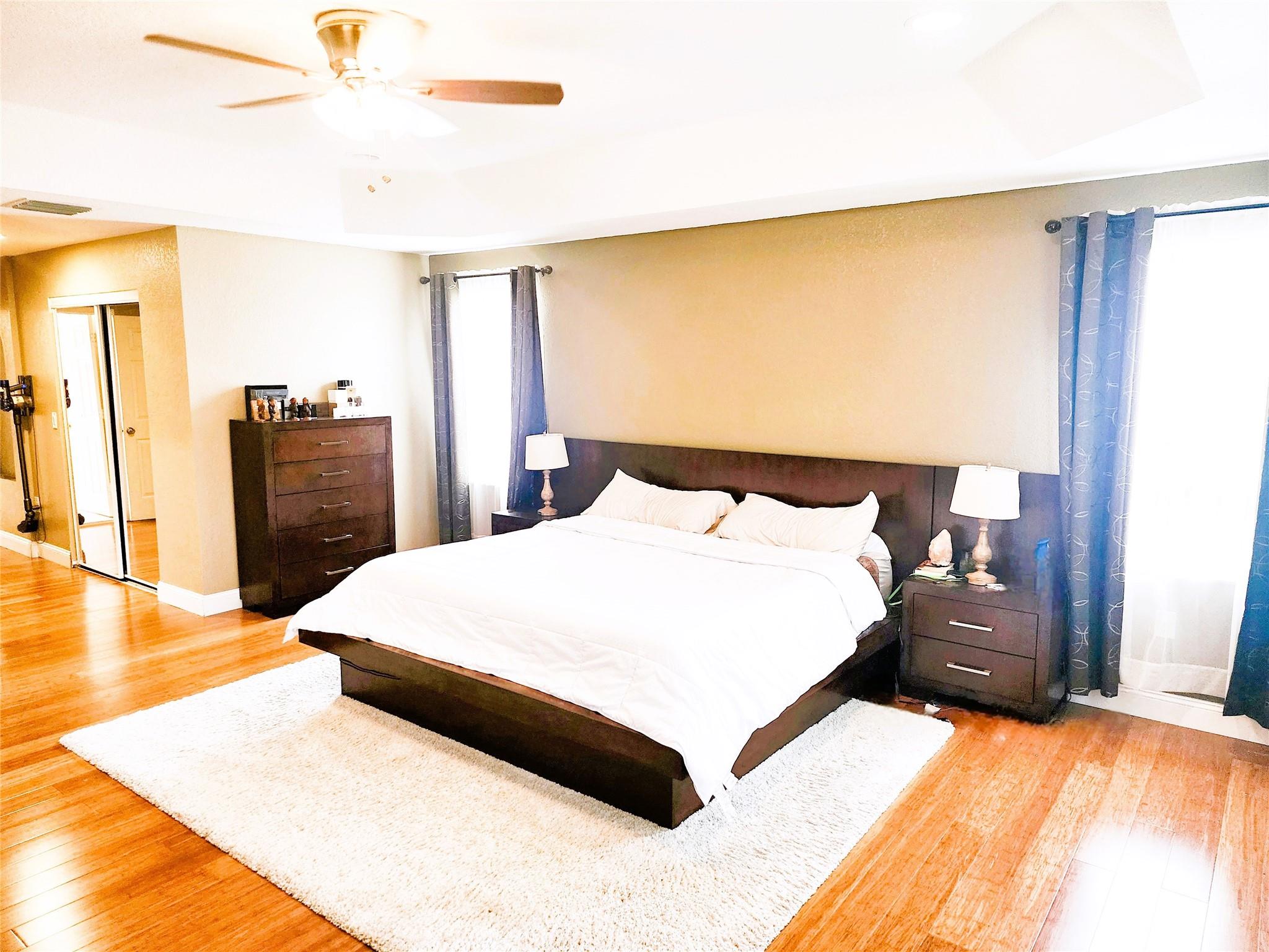 Beautifully upgraded home, no grout porcelain tile throughout the first floor, beautiful bamboo flooring on the second floor and stairs. Enormous primary suite with tray ceiling and separate sitting area use it to lounge or it can be used as a nursery or office, lots of storage with his and hers X-large walk-in closets. Large ensuite bathroom with newly tiled shower and floors, dual vanities, separate corner tub, private water closet and linen closet. The five Secondary bedrooms are spacious, this home boasts four full bathrooms, with one bedroom and full bathroom on the ground level. Gorgeous kitchen with bar stool seating at the peninsula, plus an additional area for a banquette. Laundry room with storage cabinets and sink. New plumbing recently installed throughout, newer AC & new sod.