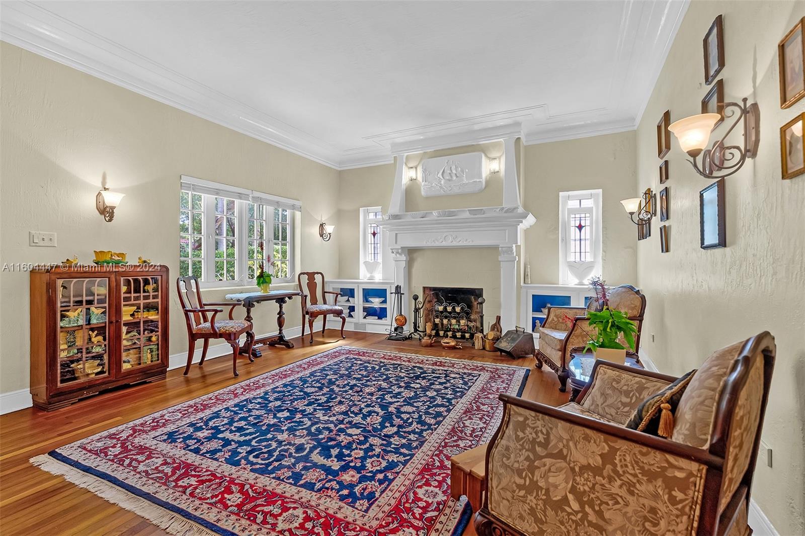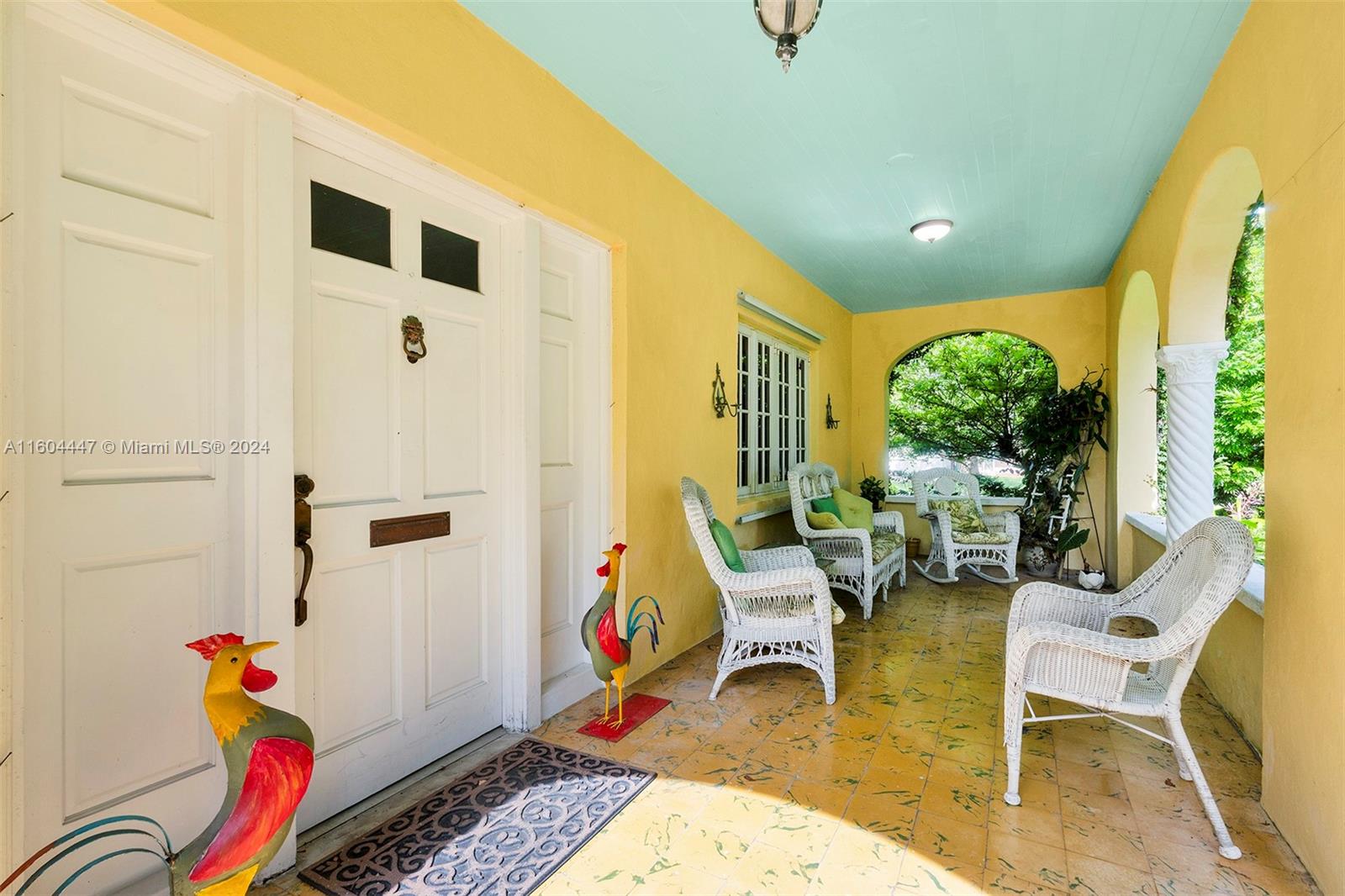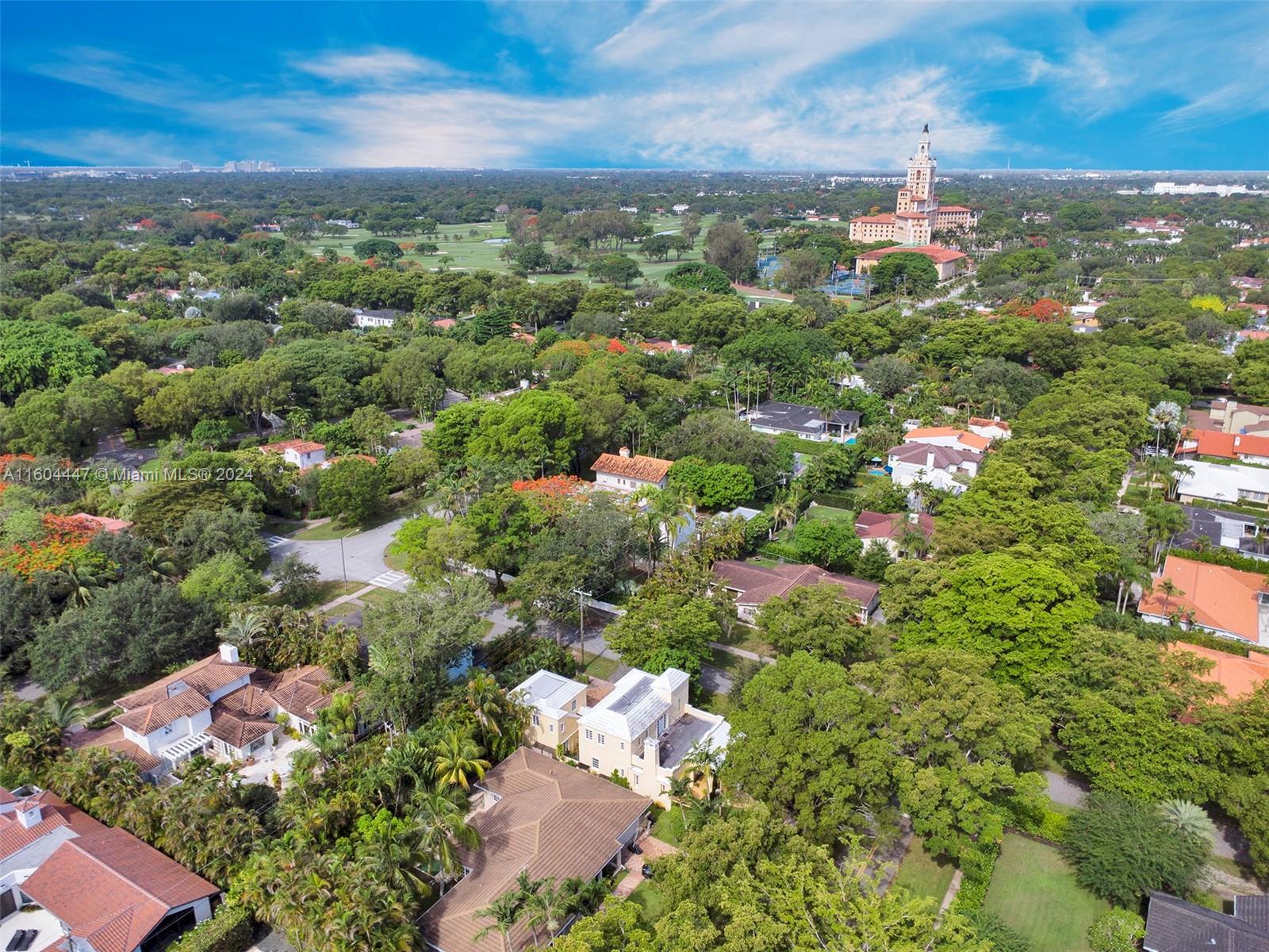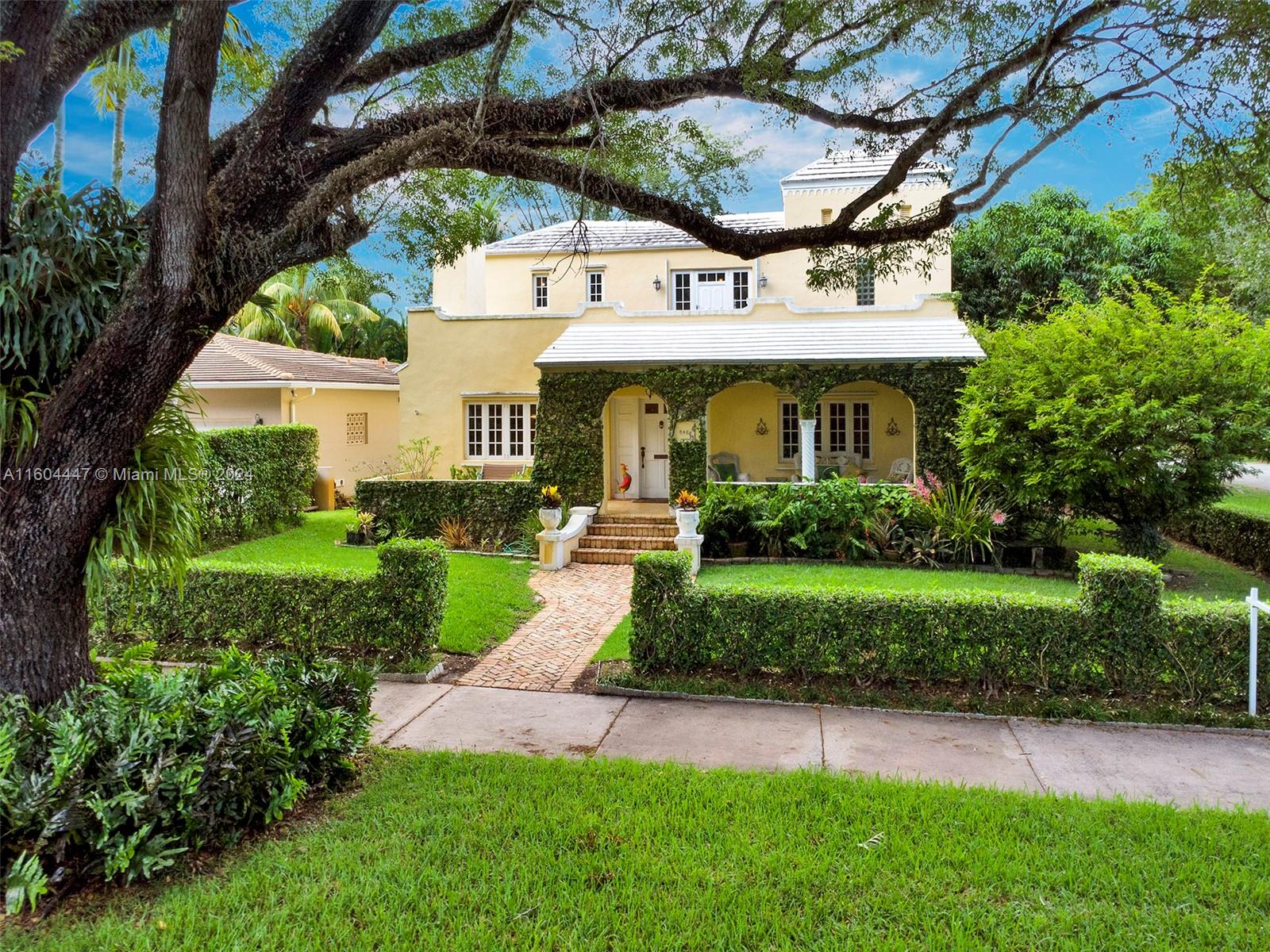 This classic Old Spanish is a true must see starting from roofed front porch entry! Gracious 36x15 ft living area with original fireplace opens to 20x13 ft dining room ideal for entertaining plus chef’s kitchen completely remodeled in 2009 with new expanded kitchen cabinets and island with granite counters. First floor includes 15x12 family room and 14x13 primary suite. Original oak floors. Second floor includes open area ideal for office/crafts/playroom, 2 large bedrooms and bath. Corner property has side street entry to 2 car garage building with upstairs 1/1 guest/in-law quarters. Just 3 blocks to Biltmore Hotel, golf and tennis, Youth Center and Venetian Pool. Short distance to Miracle Mile, Merrick Park and airport.